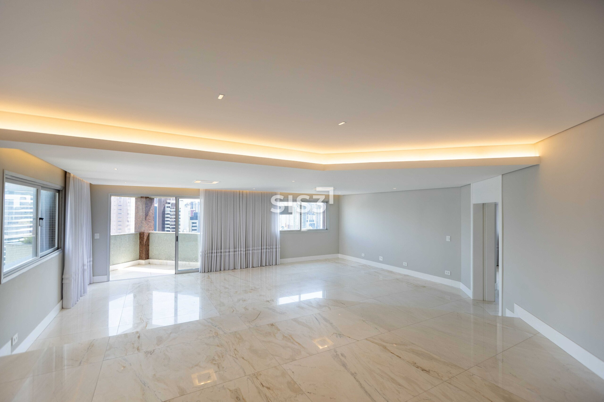 No Água Verde, este apartamento completamente reformado entrega um projeto que chama atenção pela escala e pelas escolhas. São 441 m² privativos com um living generoso, desenhado para até quatro ambientes — estar, jantar, sala íntima e copa — conectados a um espaço gourmet com churrasqueira a carvão. Um layout que funciona tanto para receber quanto para o dia a dia.