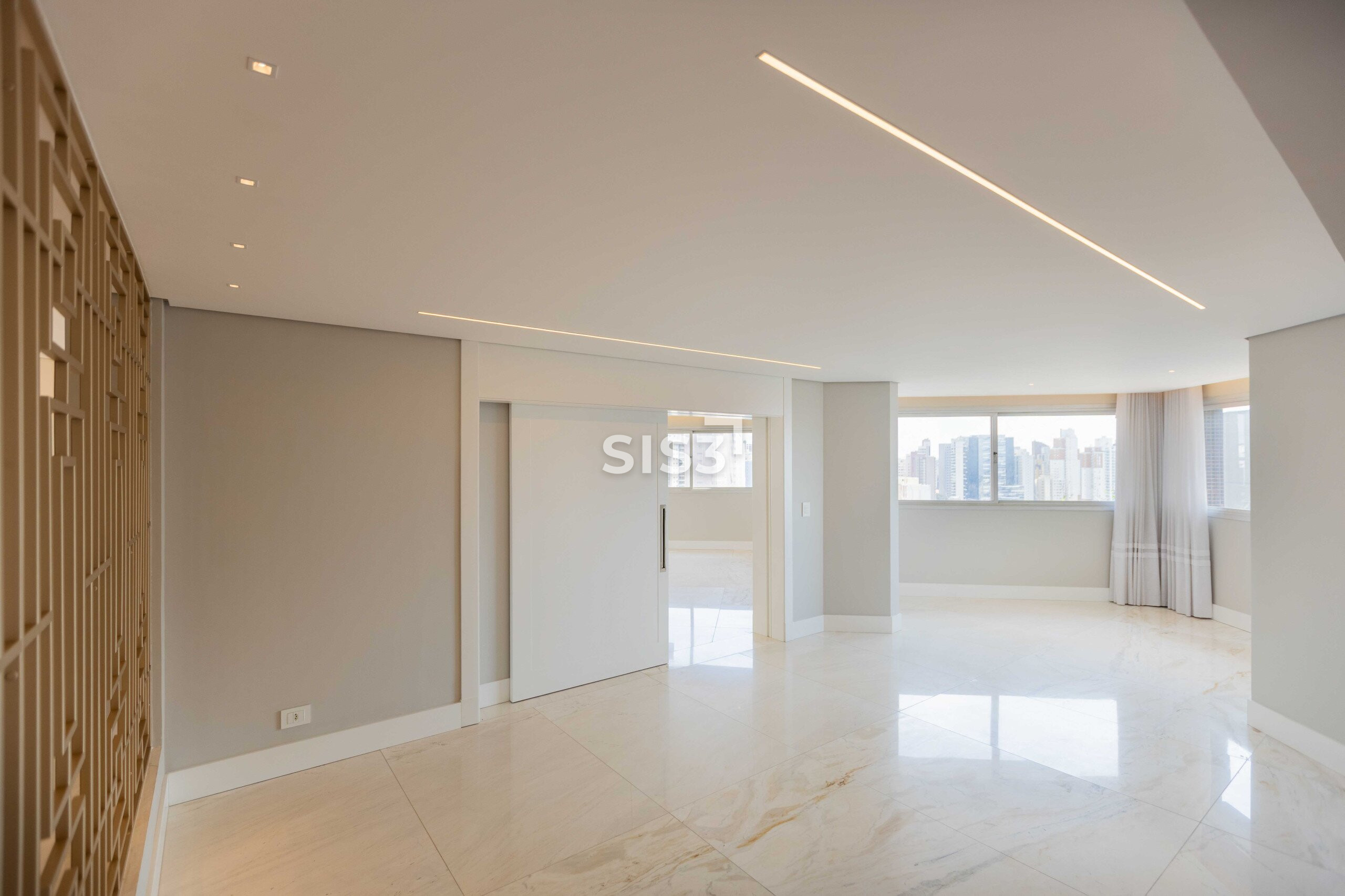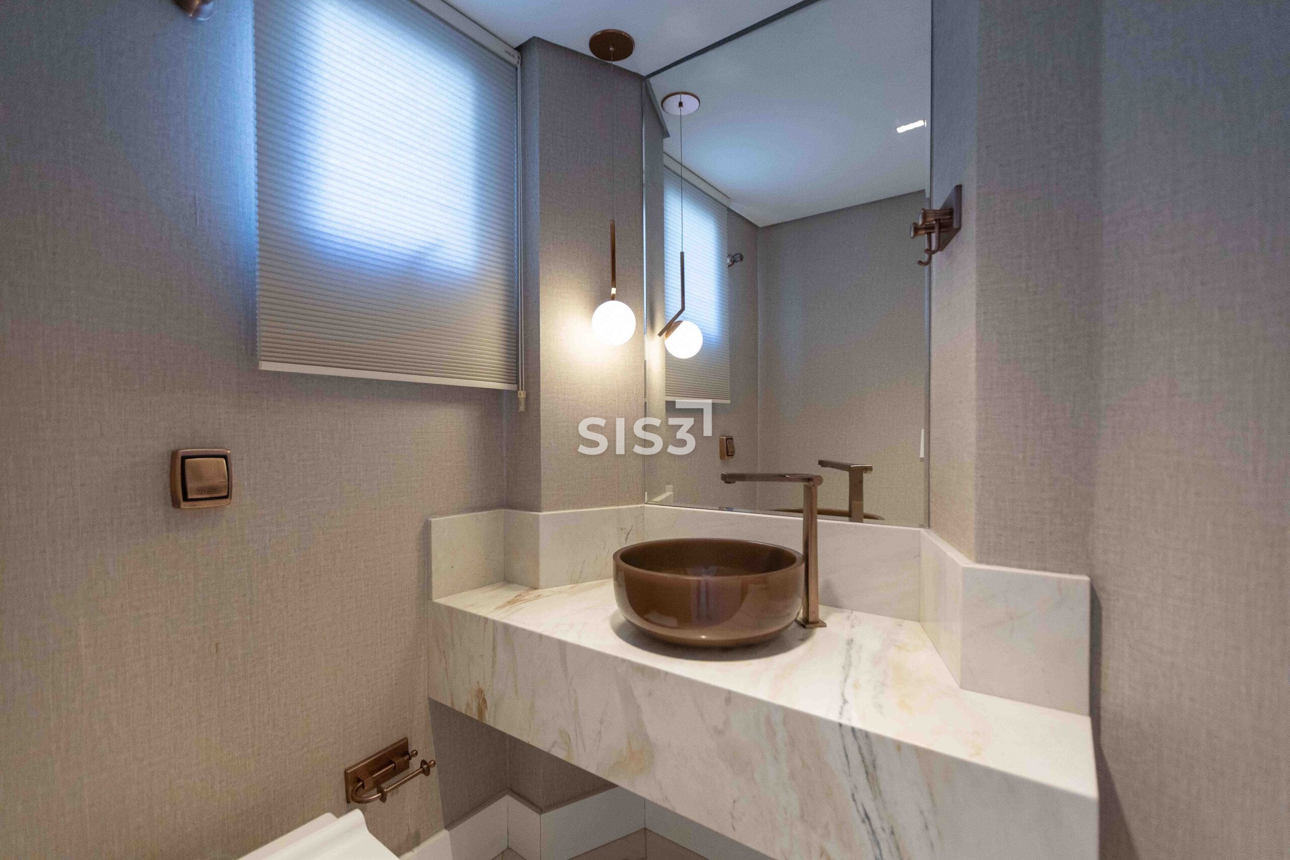Andar alto, um por andar, garantindo privacidade. Nos acabamentos, mármore Branco Paraná, móveis planejados Todeschini e eletrodomésticos Tecno. O apartamento ainda conta com cortinas automatizadas, ar-condicionado nos quartos e excelente incidência solar.