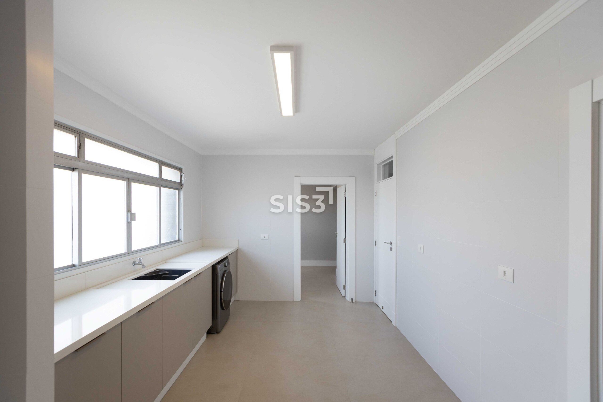 A área de serviço acompanha a proporção do imóvel: lavanderia espaçosa e dependência completa para funcionário.