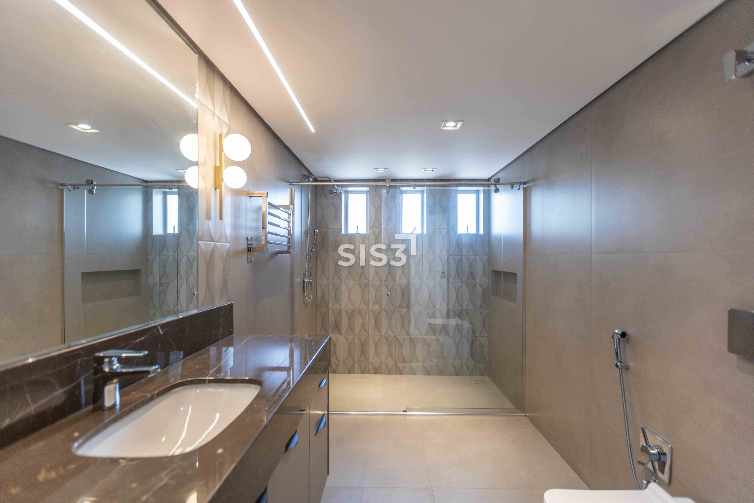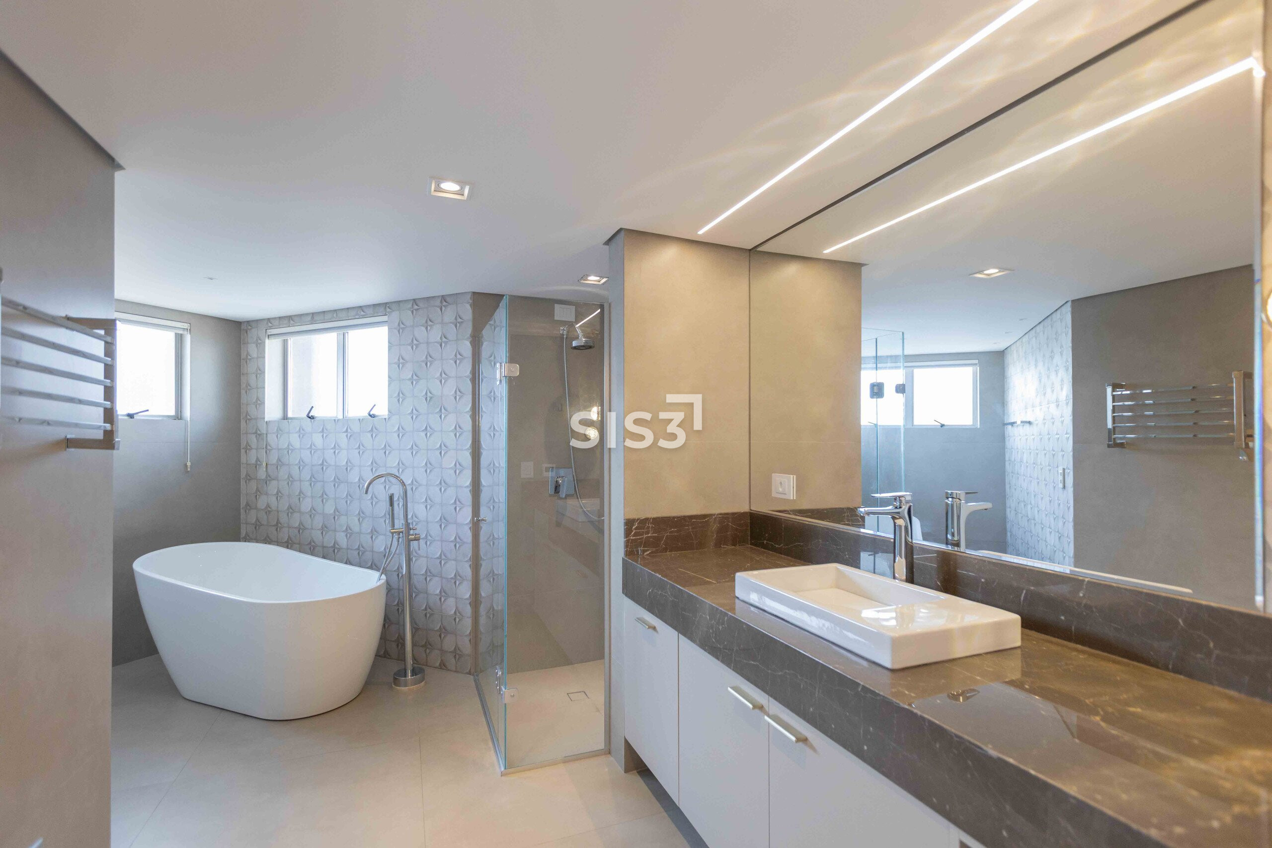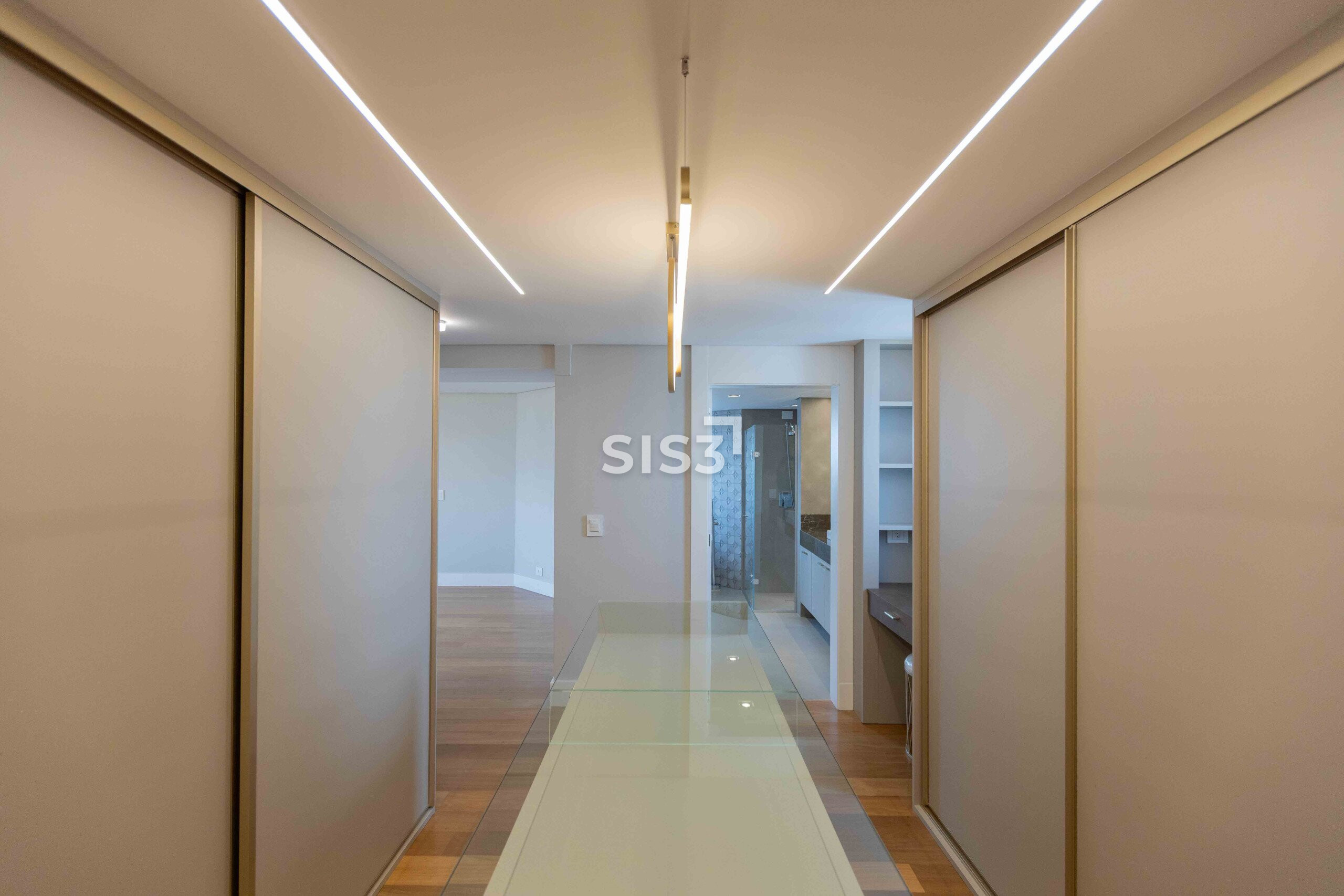 Na área íntima, 4 suítes amplas. Todas com piso aquecido nas áreas úmidas e toalheiros elétricos. A suíte master traz um closet bem dimensionado e banheiro Sr. e Sra., com uma configuração prática e bem resolvida.