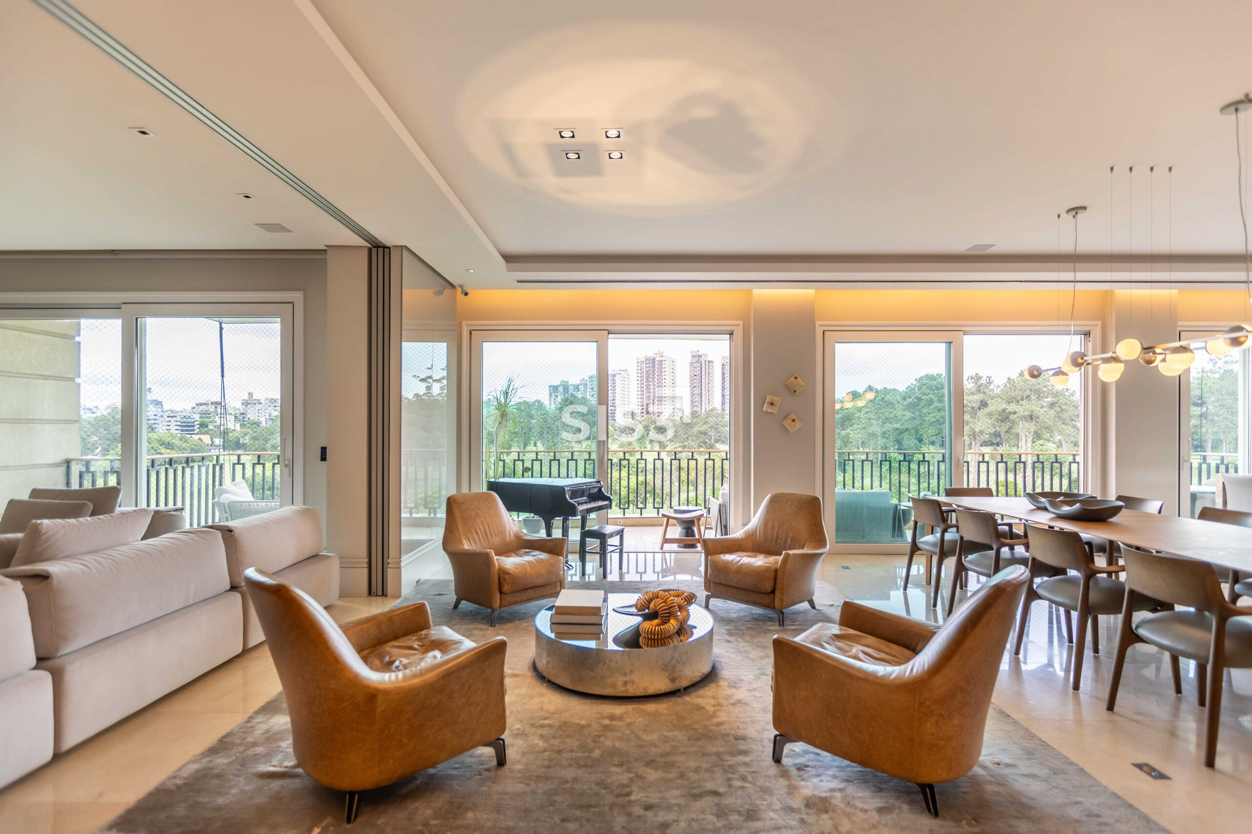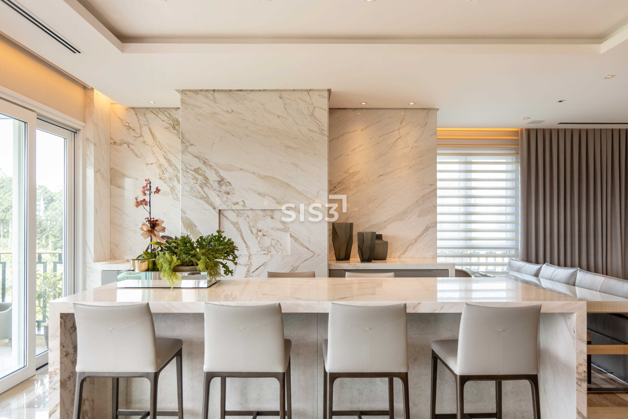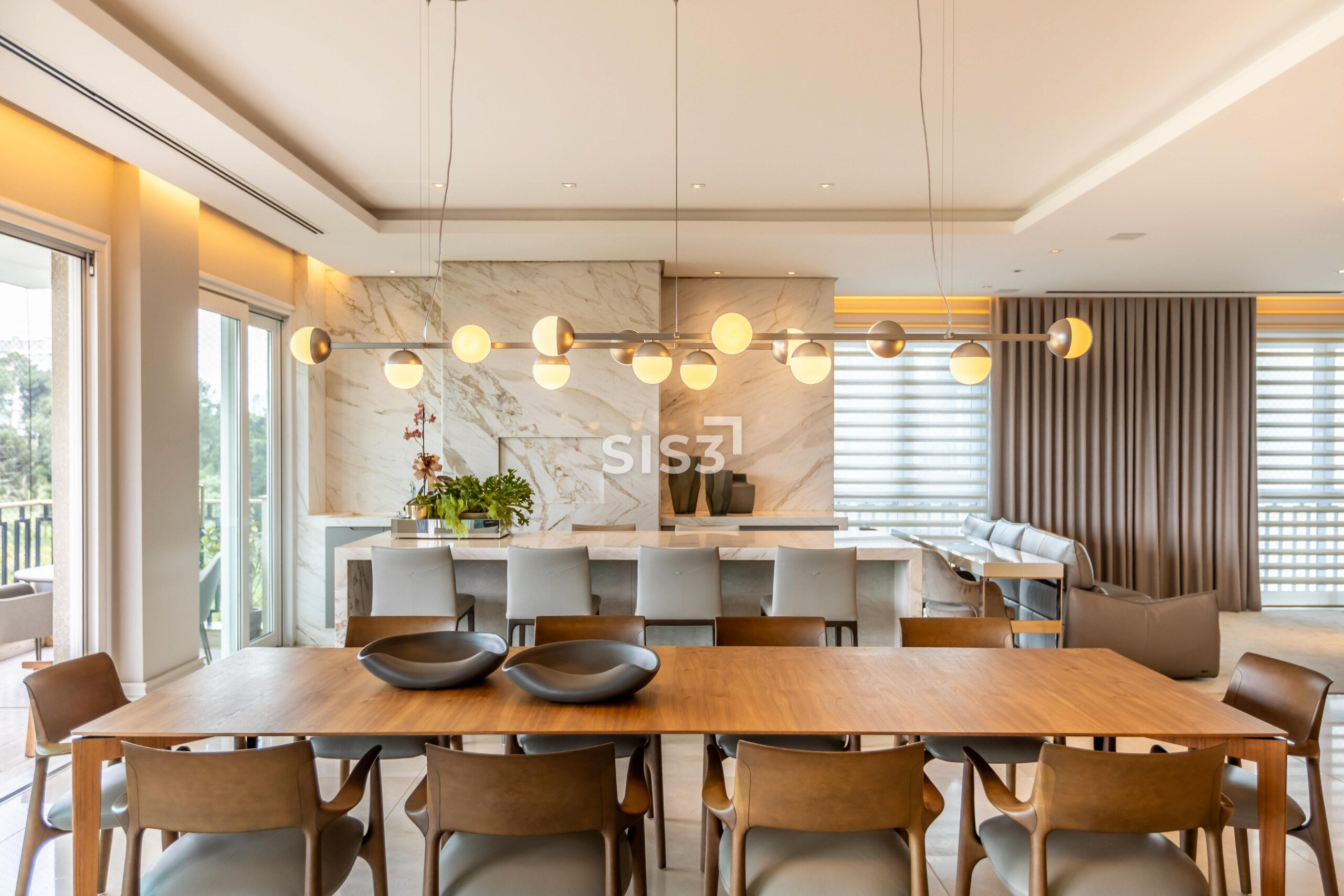 Com 365 m² privativos, o projeto arquitetônico foi desenhado para unir conforto, funcionalidade e estética impecável. As áreas sociais são amplas e integradas, com pé-direito alto, varanda generosa e churrasqueira a carvão, criando o cenário ideal para receber com elegância.