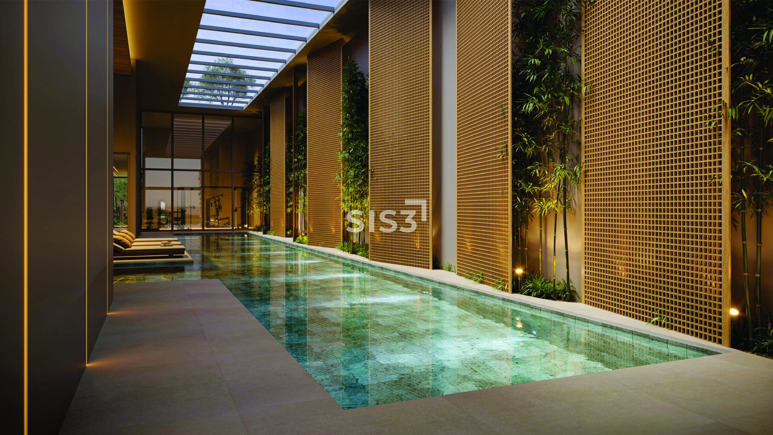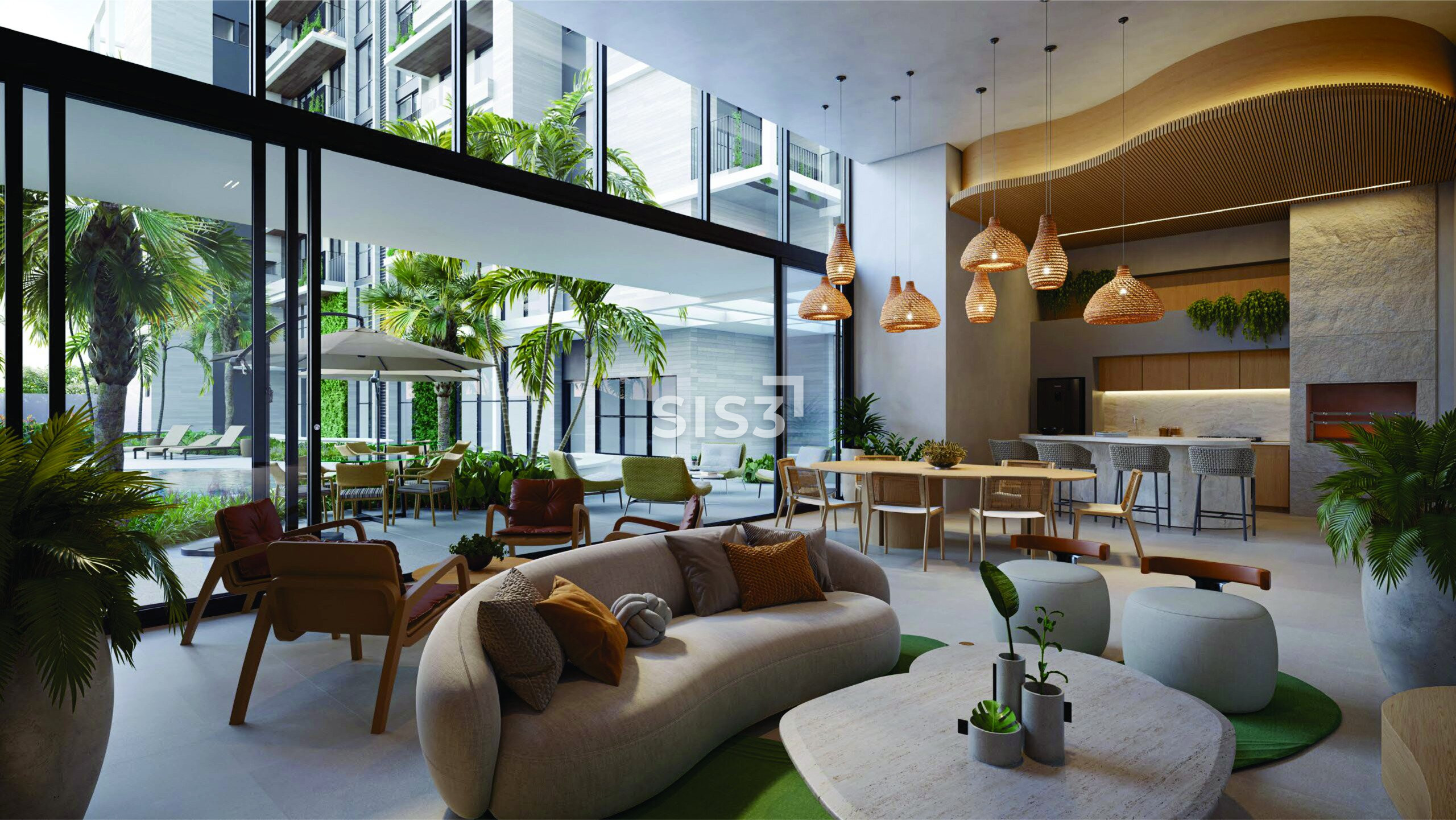 Assinado pela Construtora Riskalla, o Réve foi concebido a partir dos princípios da arquitetura biofílica, integrando jardins suspensos, boulevard com espelho d’água e áreas comuns que remetem à experiência de um clube premium.
