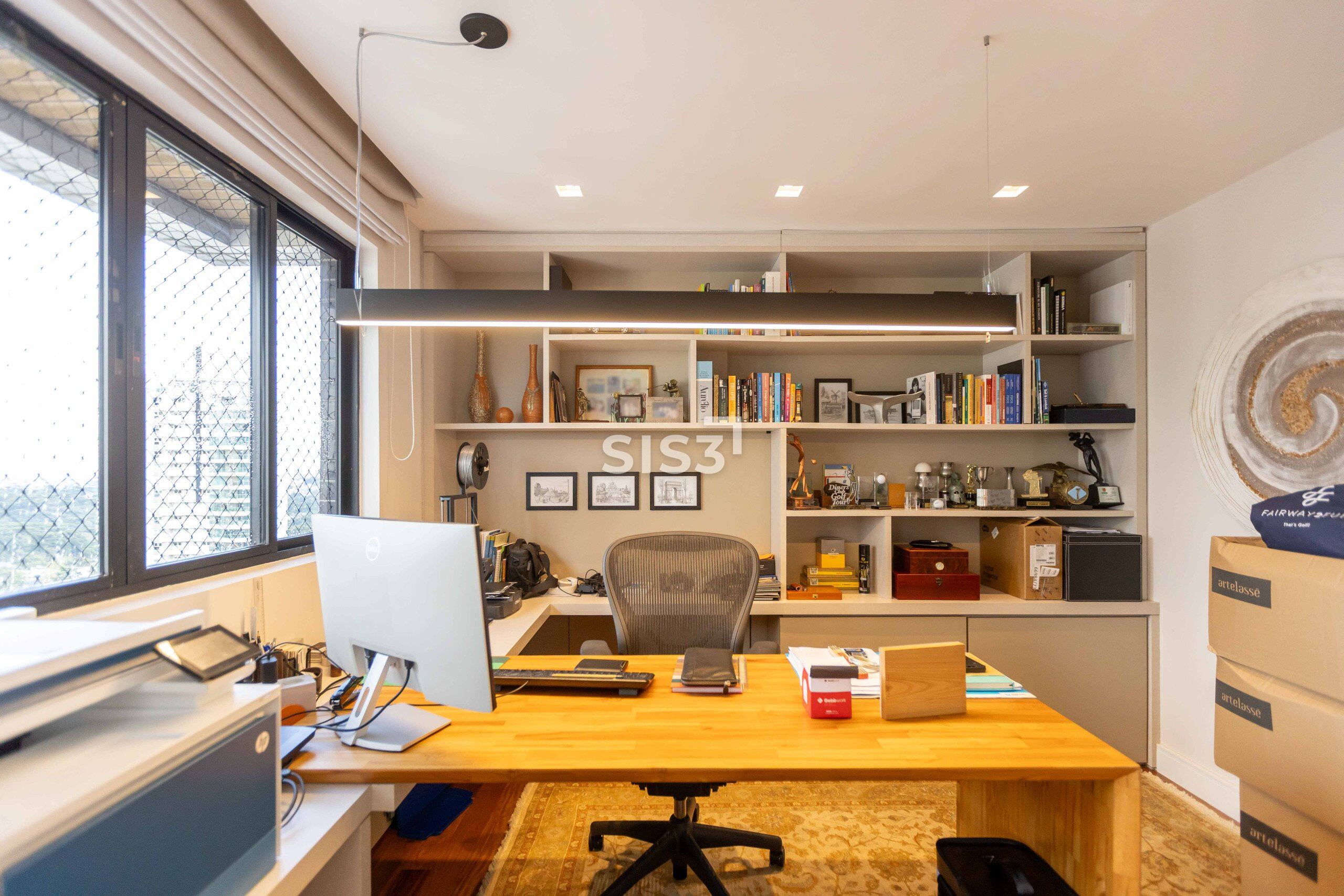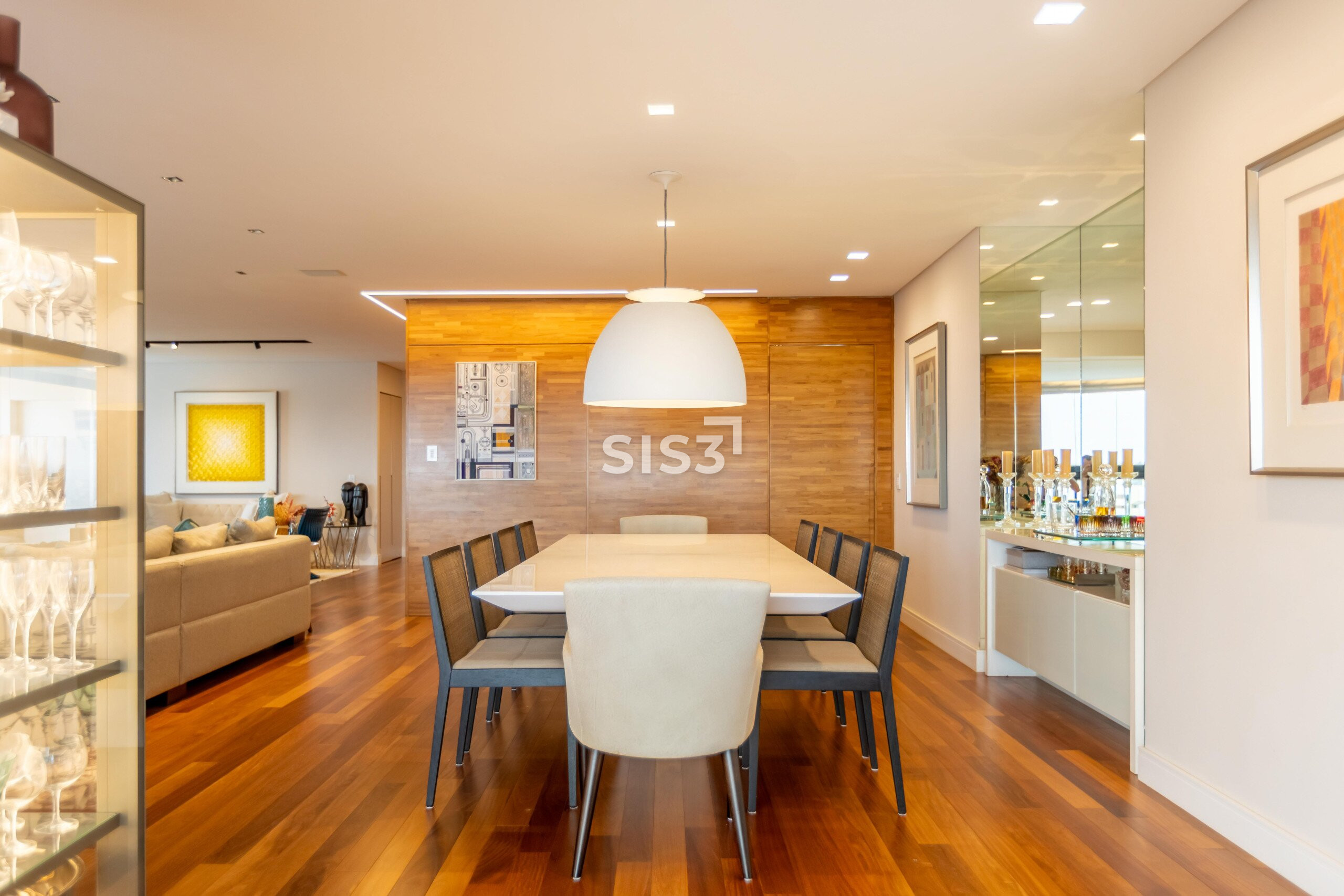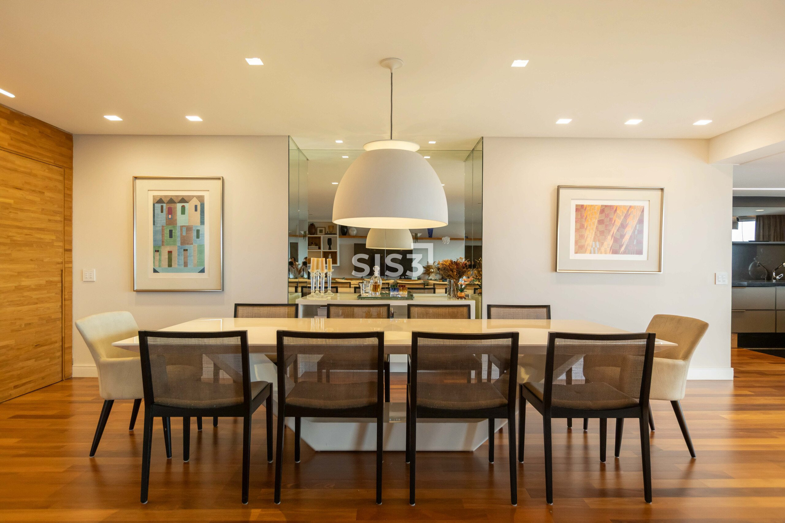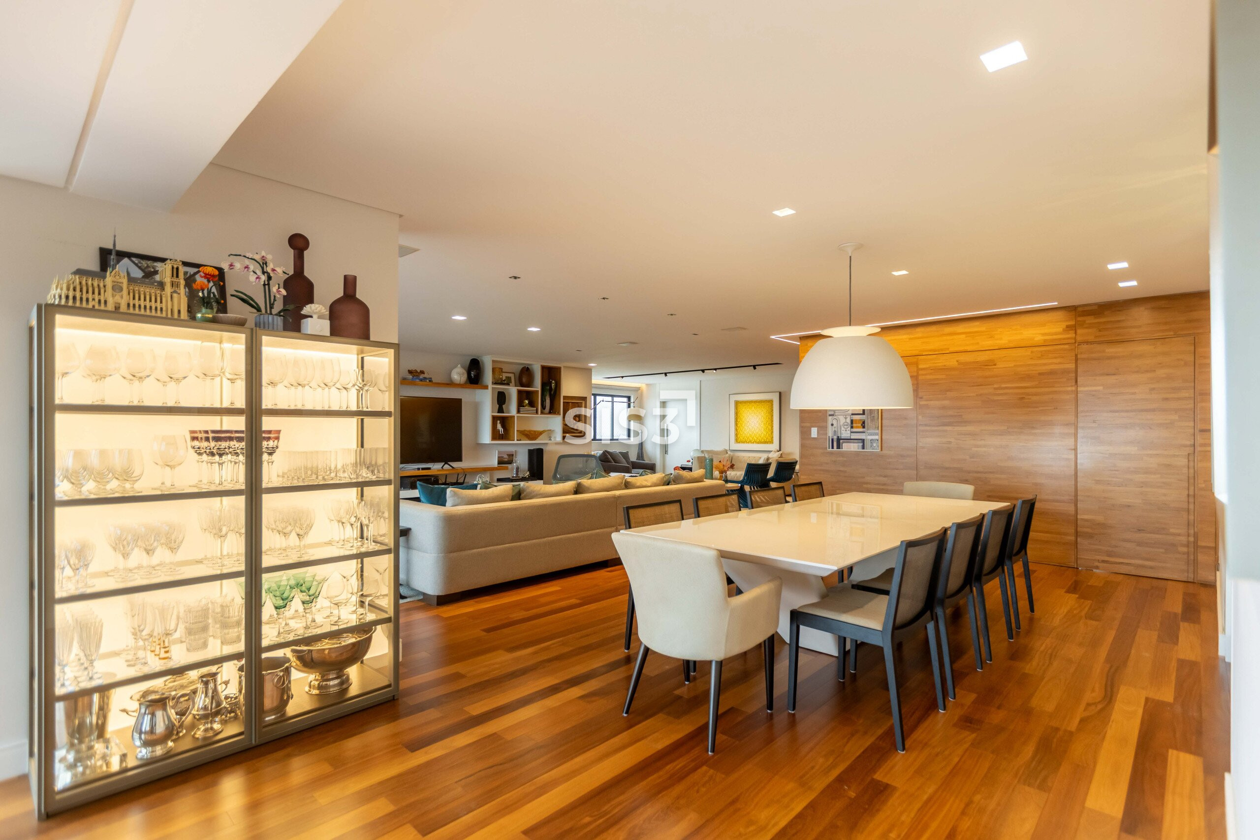 Elevador privativo, 5 vagas de garagem, sendo 3 livres, e infraestrutura para carro elétrico completam o conjunto.