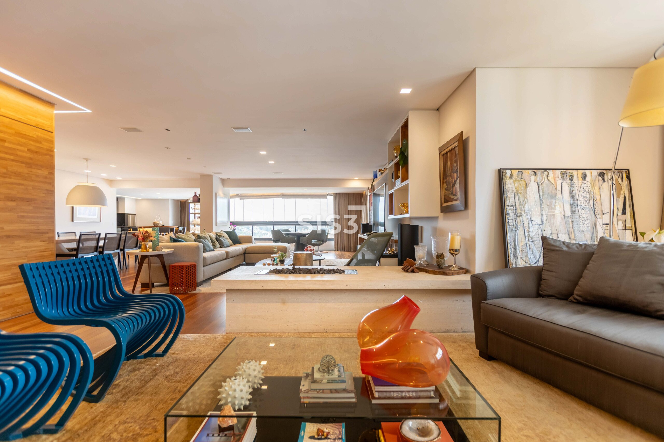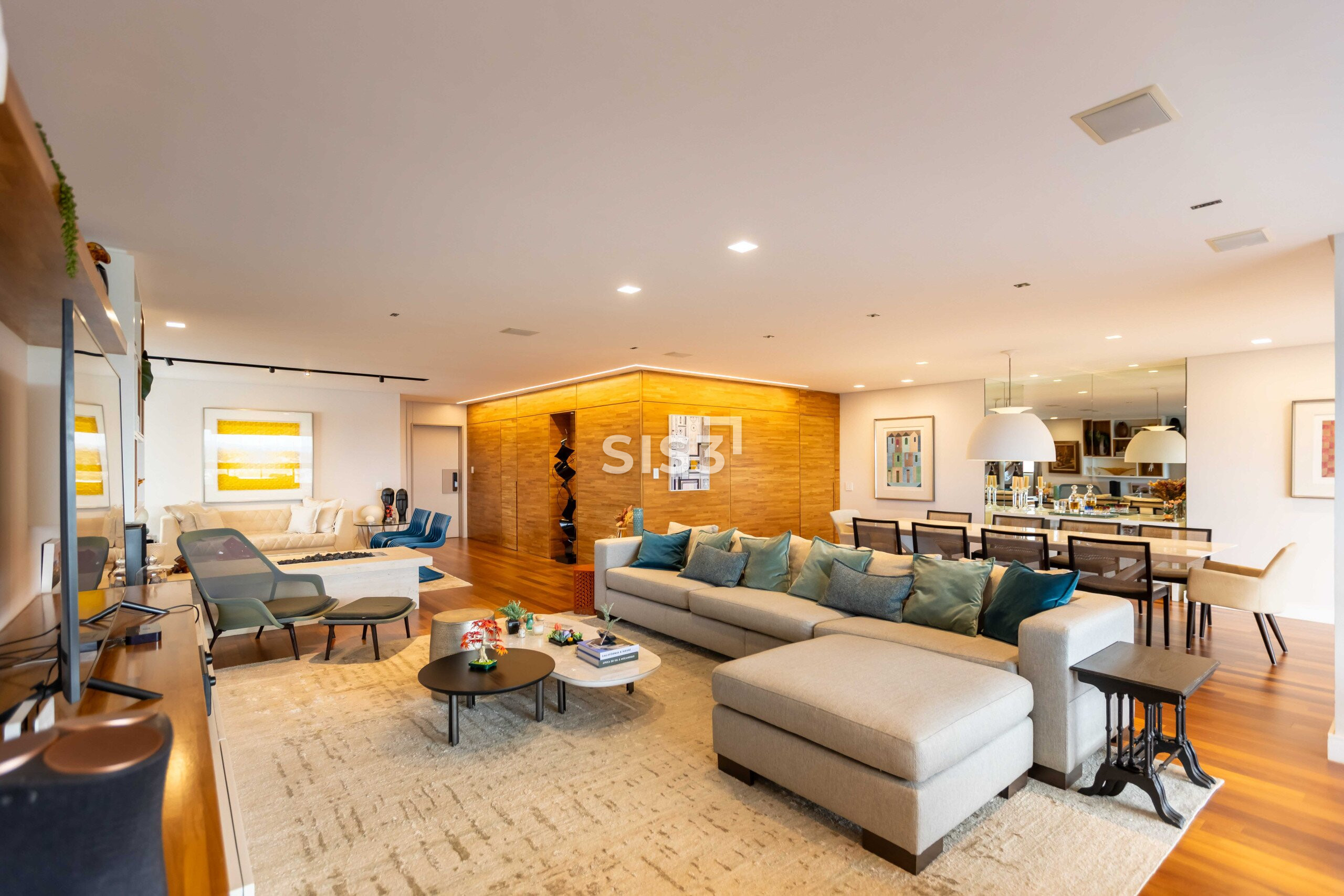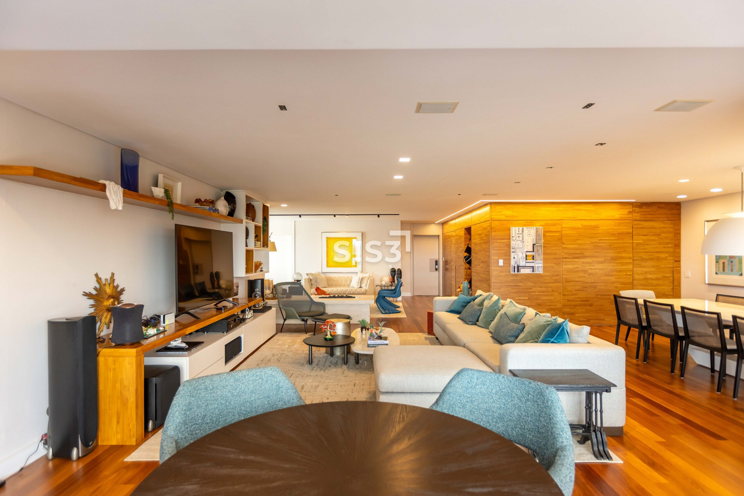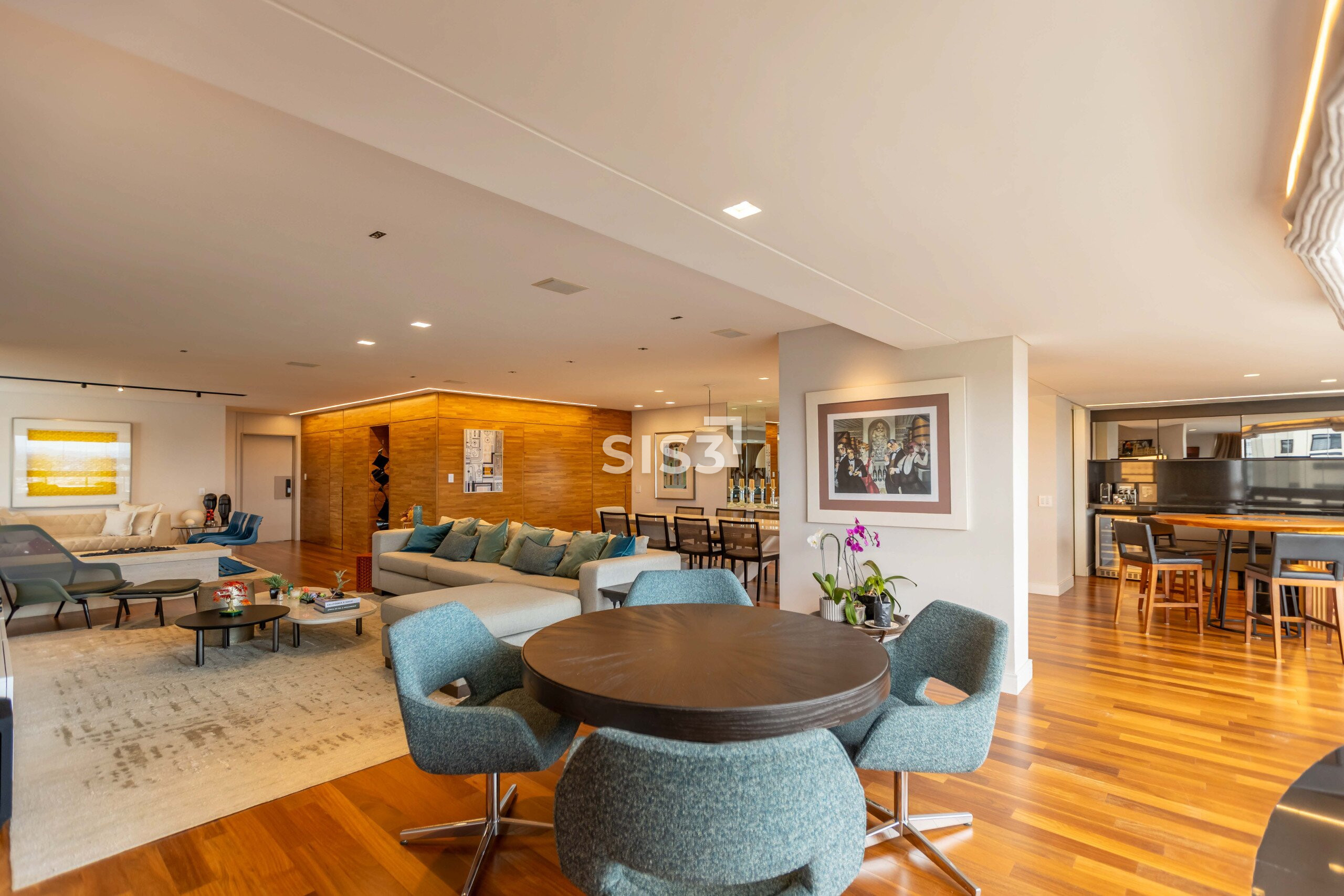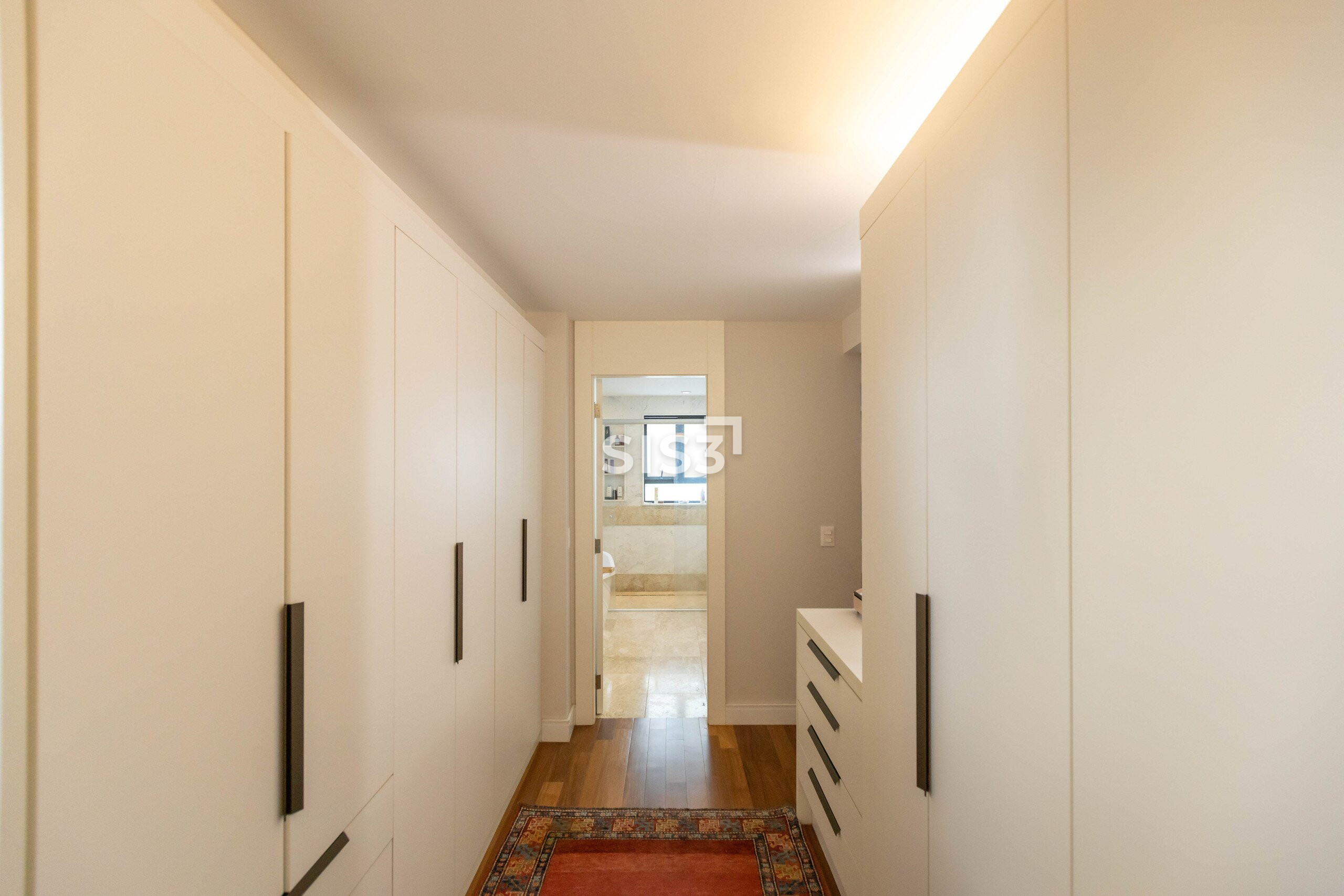 Elevador privativo, 5 vagas de garagem, sendo 3 livres, e infraestrutura para carro elétrico completam o conjunto.