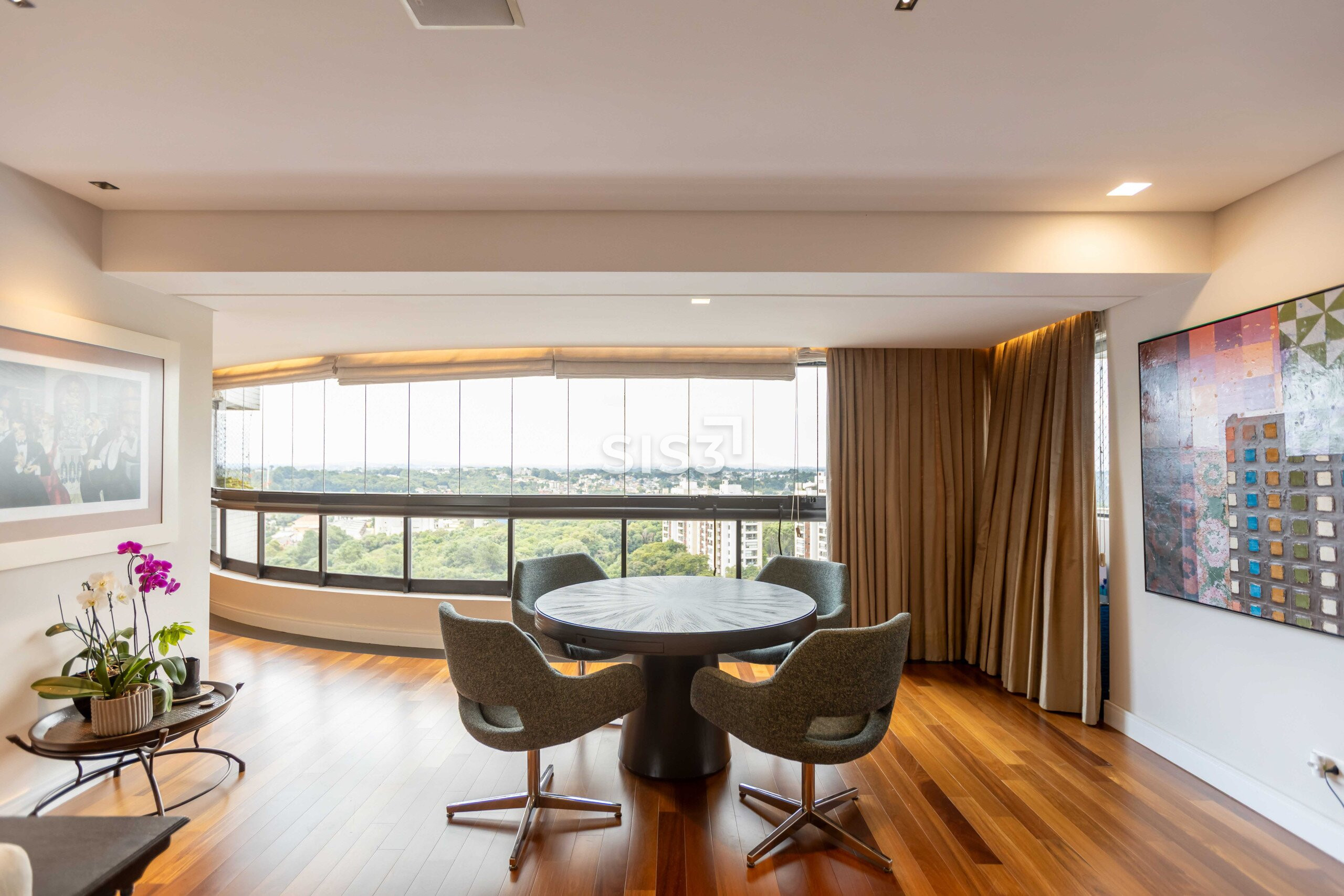 Em andar alto do Edifício Porto Vitória, este apartamento ocupa um pavimento inteiro e se abre para uma vista ampla do Ecoville, um cenário que acompanha o ritmo do dia.