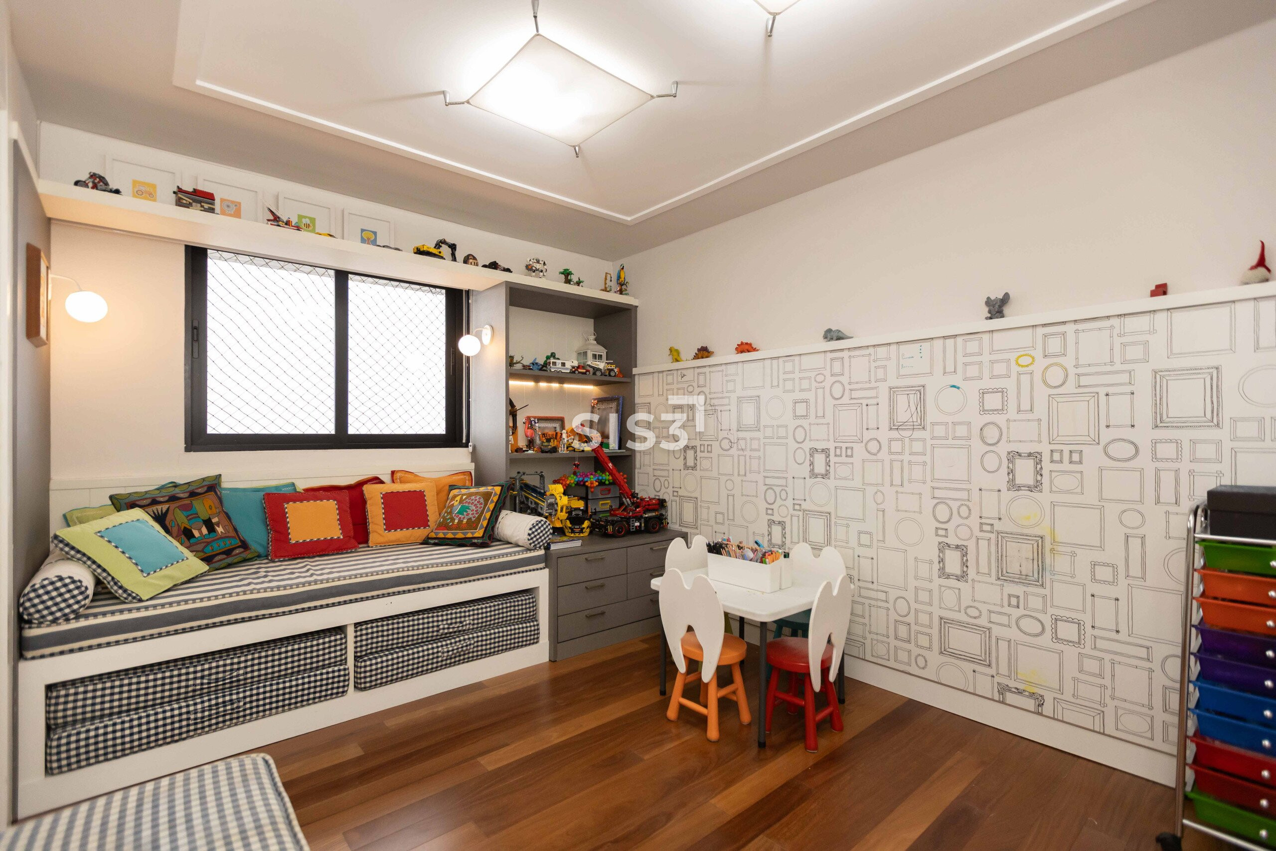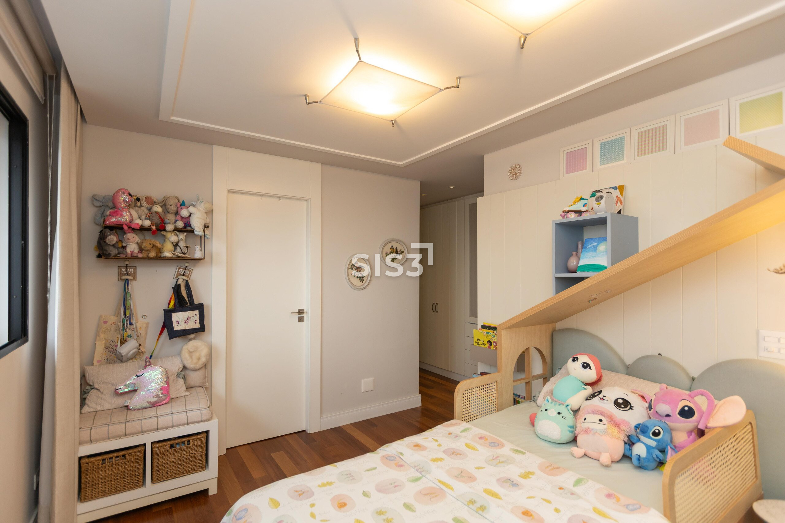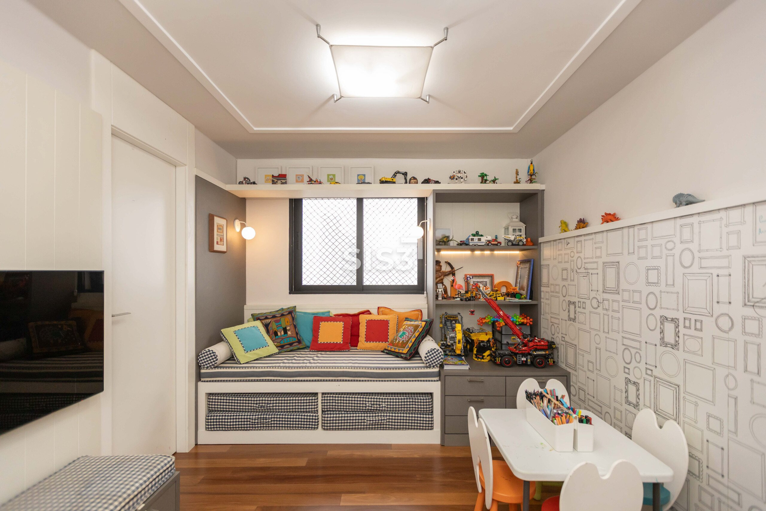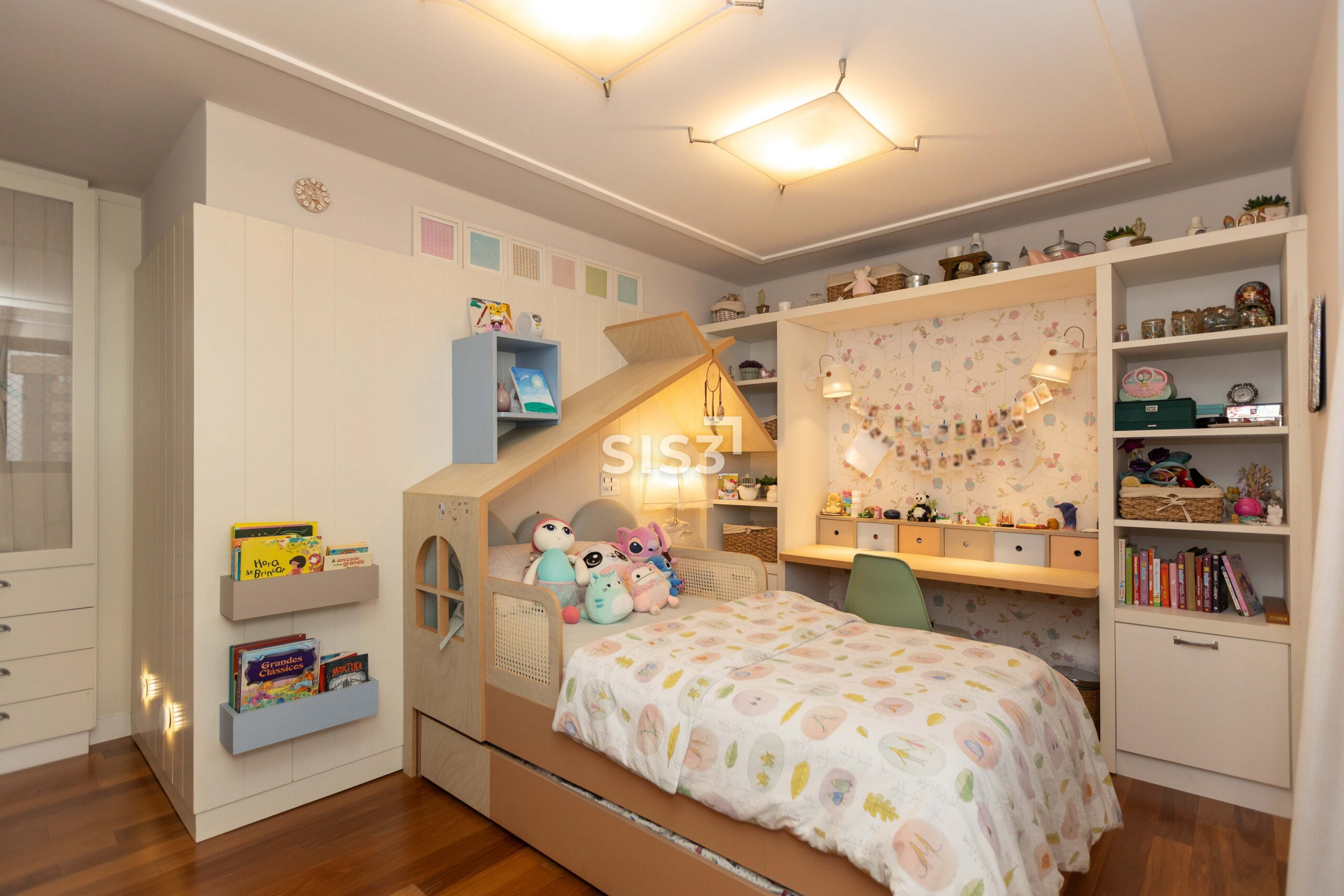 Na área íntima, o layout privilegia conforto e privacidade. São 4 suítes. A suíte principal, mais reservada, conta com um closet generoso e uma banheira de imersão. As outras 3 suítes trazem uma proposta mais leve e descontraída, pensadas para o universo das crianças, com personalidade e um toque lúdico.