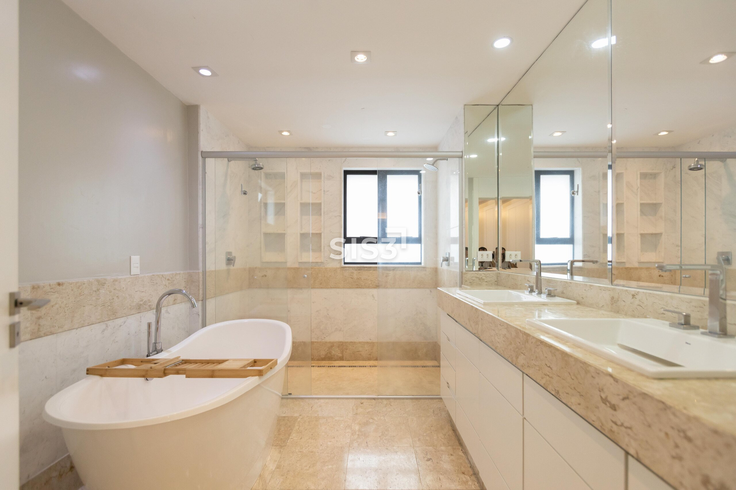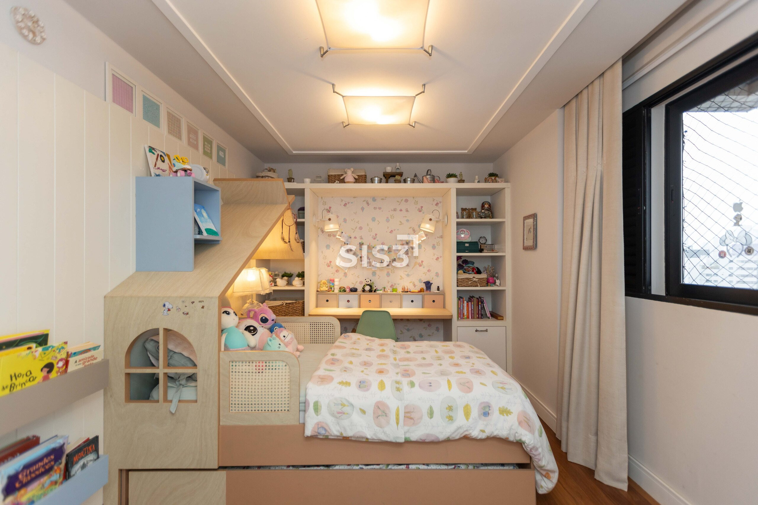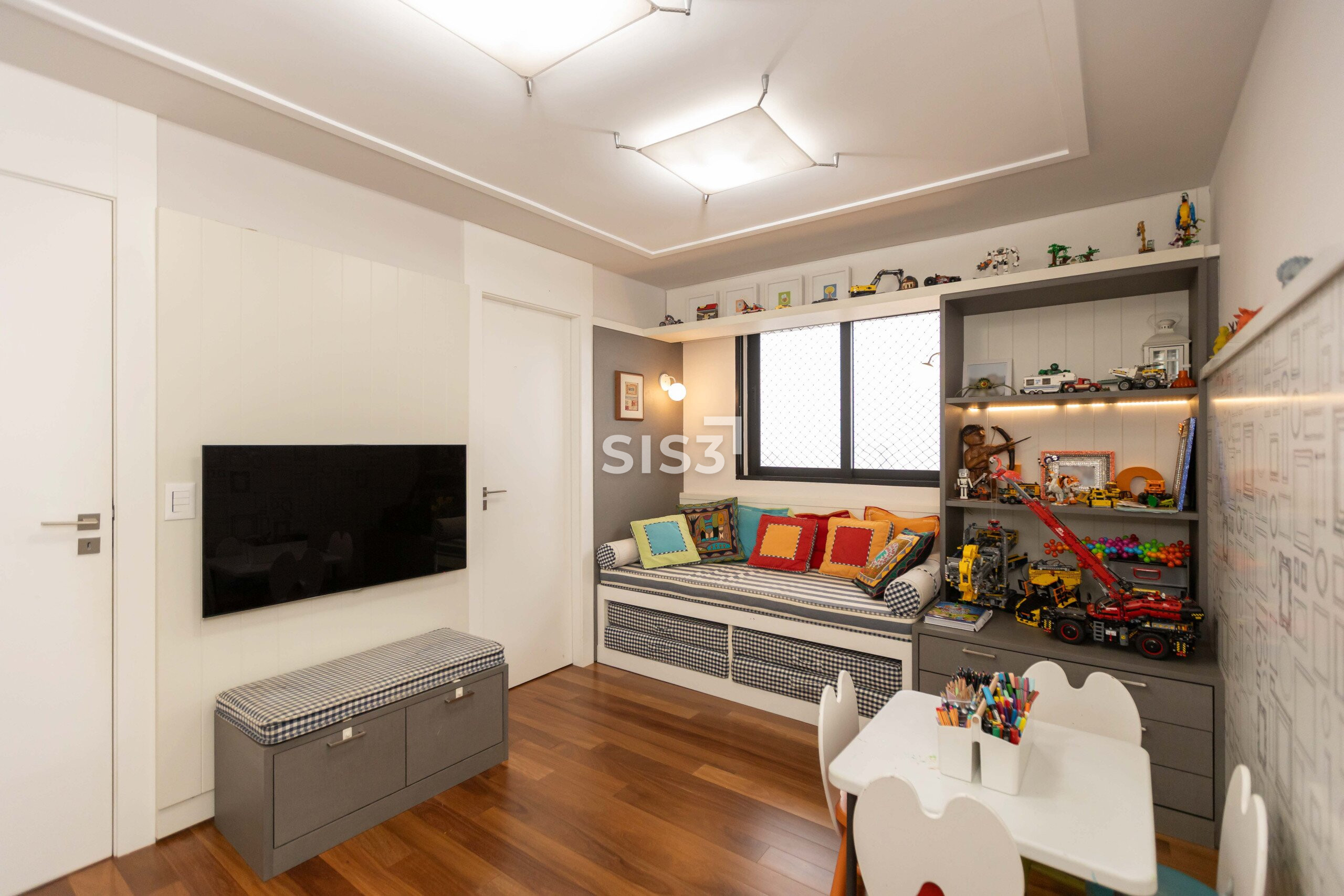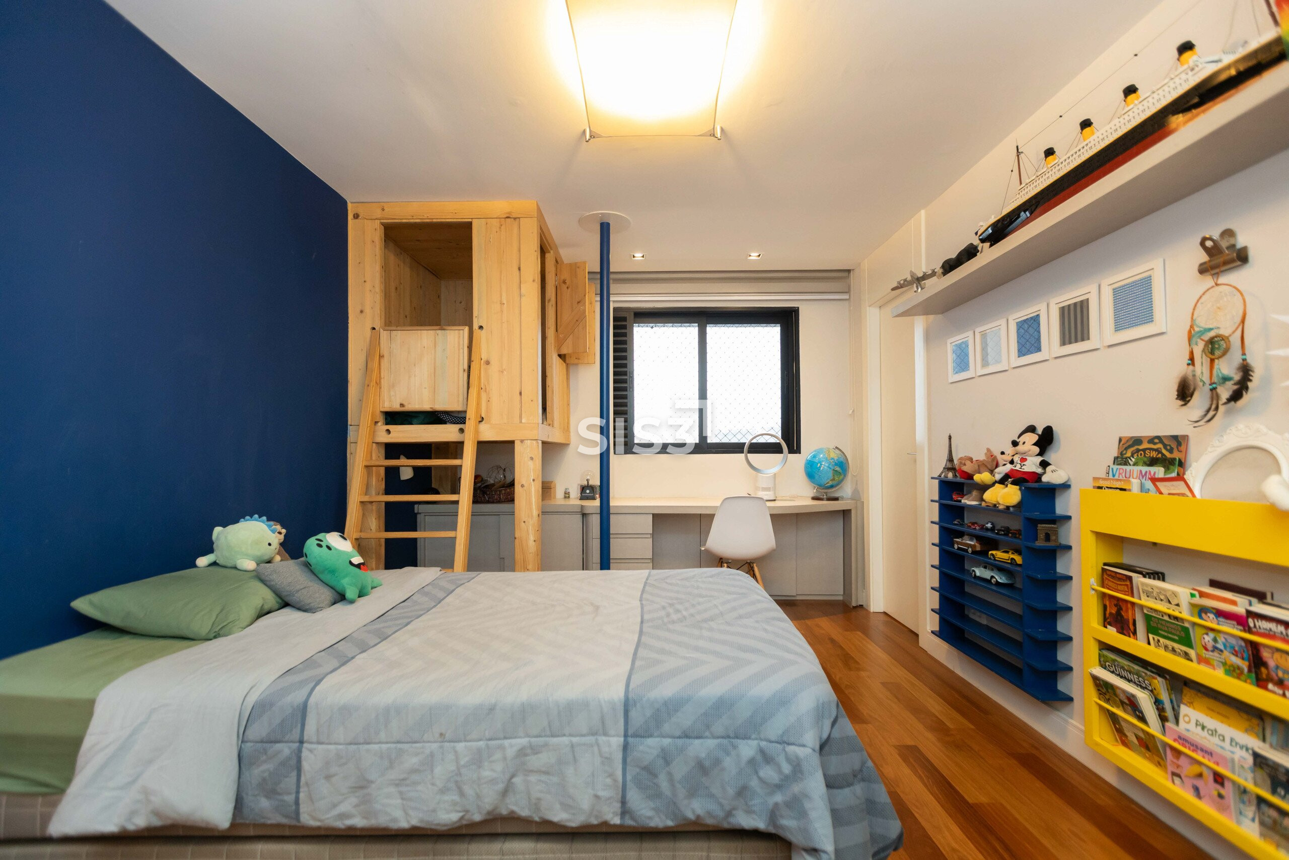Na área íntima, o layout privilegia conforto e privacidade. São 4 suítes. A suíte principal, mais reservada, conta com um closet generoso e uma banheira de imersão. As outras 3 suítes trazem uma proposta mais leve e descontraída, pensadas para o universo das crianças, com personalidade e um toque lúdico.