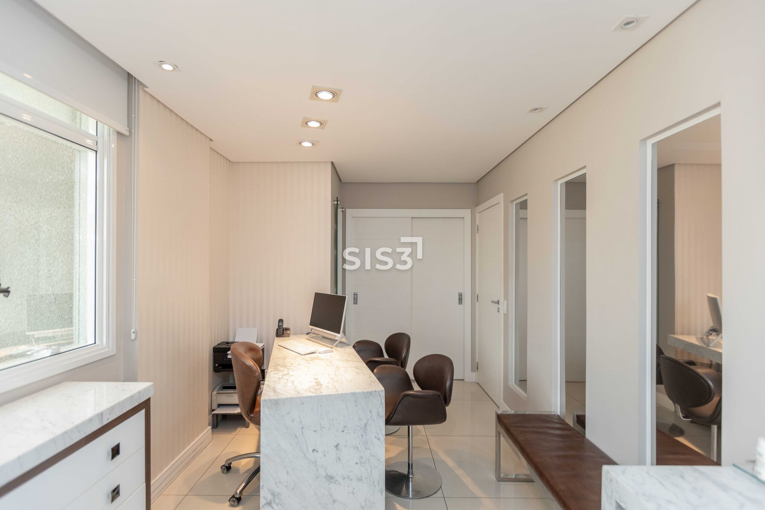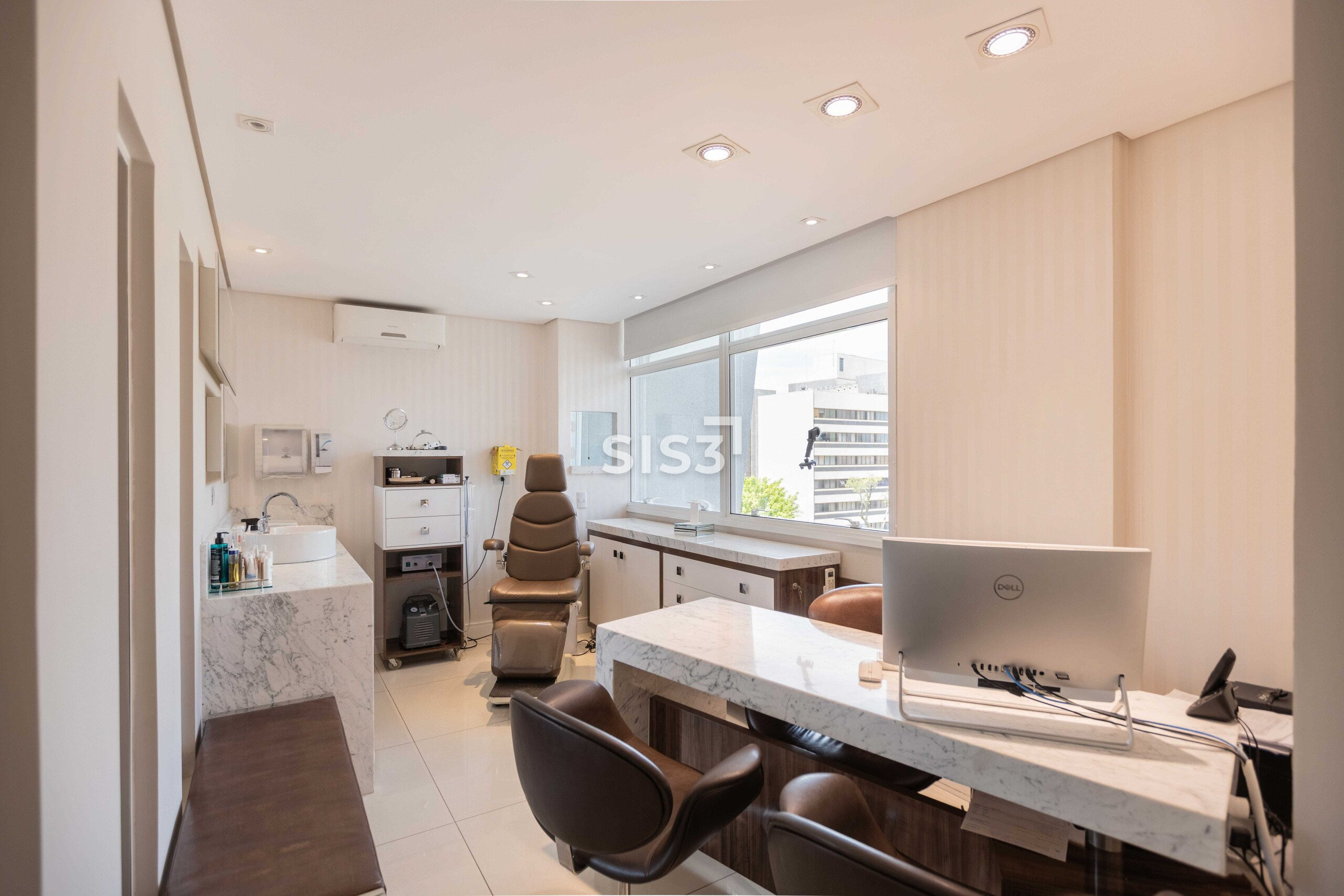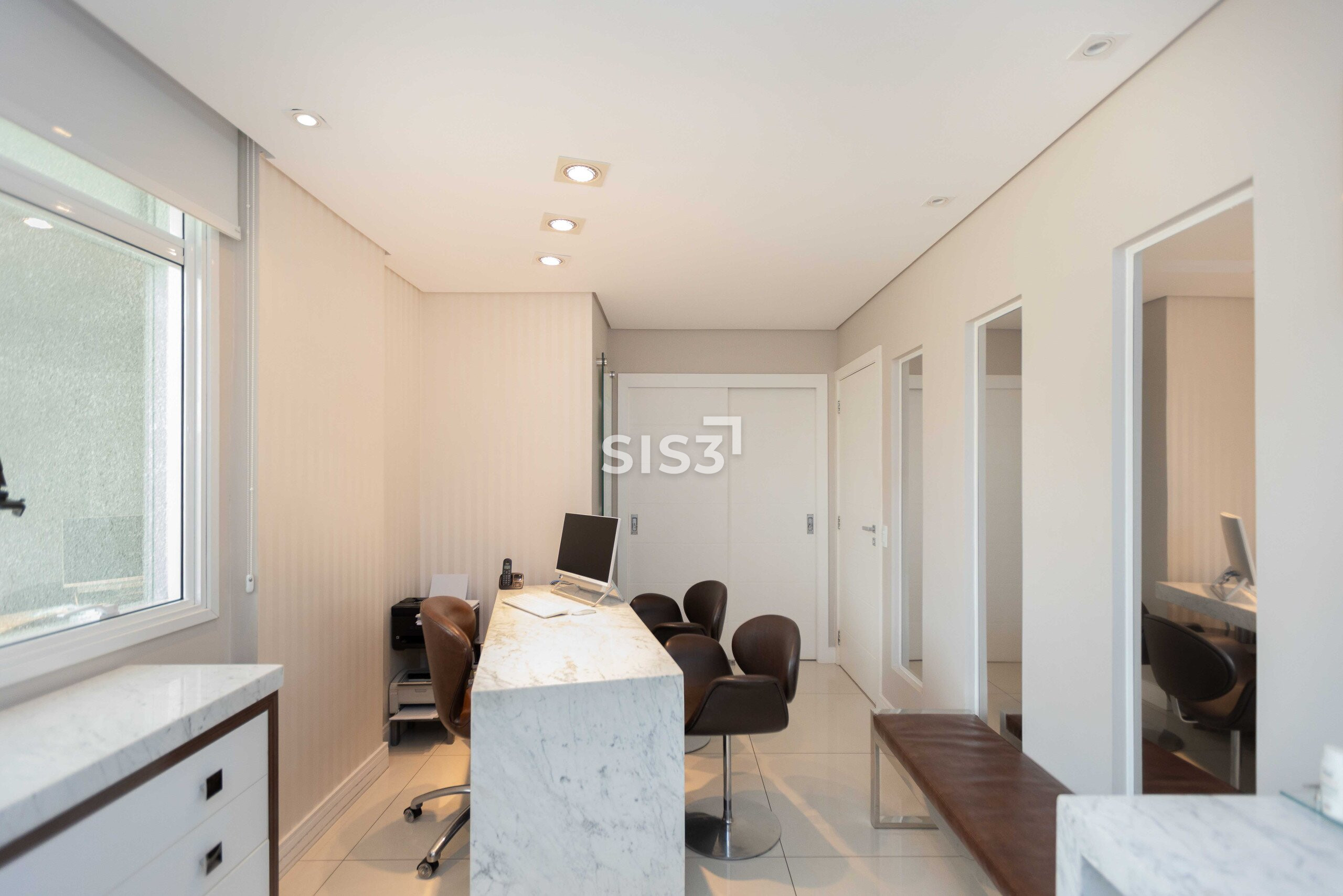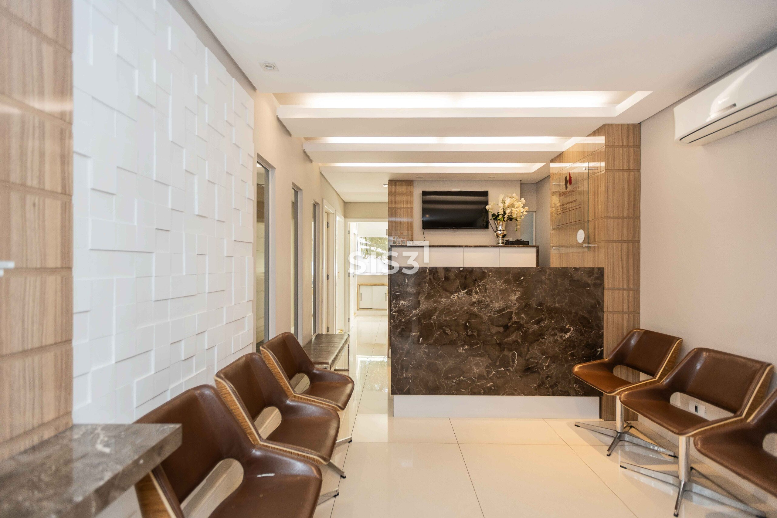 Com 67 m² privativos, o espaço é composto por duas salas integradas e atualmente está configurado para consultório médico, com três salas de atendimento independentes e uma área de recepção com sala de espera, criando um fluxo organizado e confortável para pacientes e clientes.