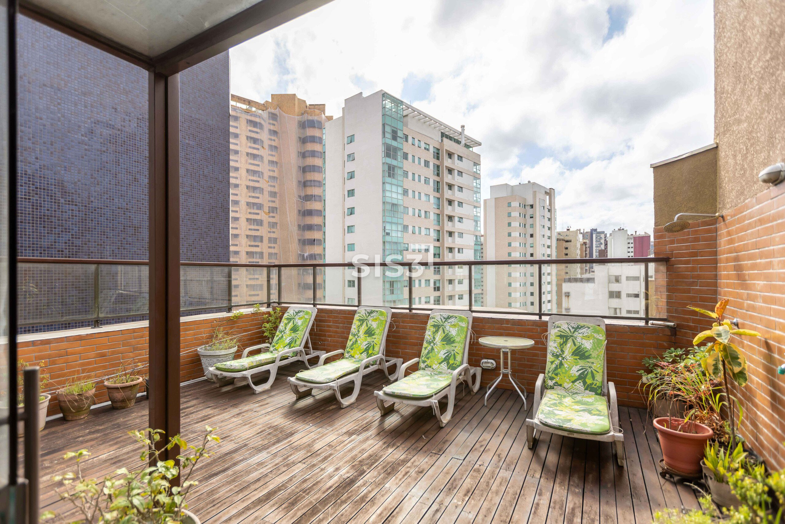 Na frente, um verdadeiro camarote para a cidade, com vista aberta e permanente. Nos fundos, um refúgio mais reservado, com sol e um chuveirão que transforma o cotidiano em pausa.