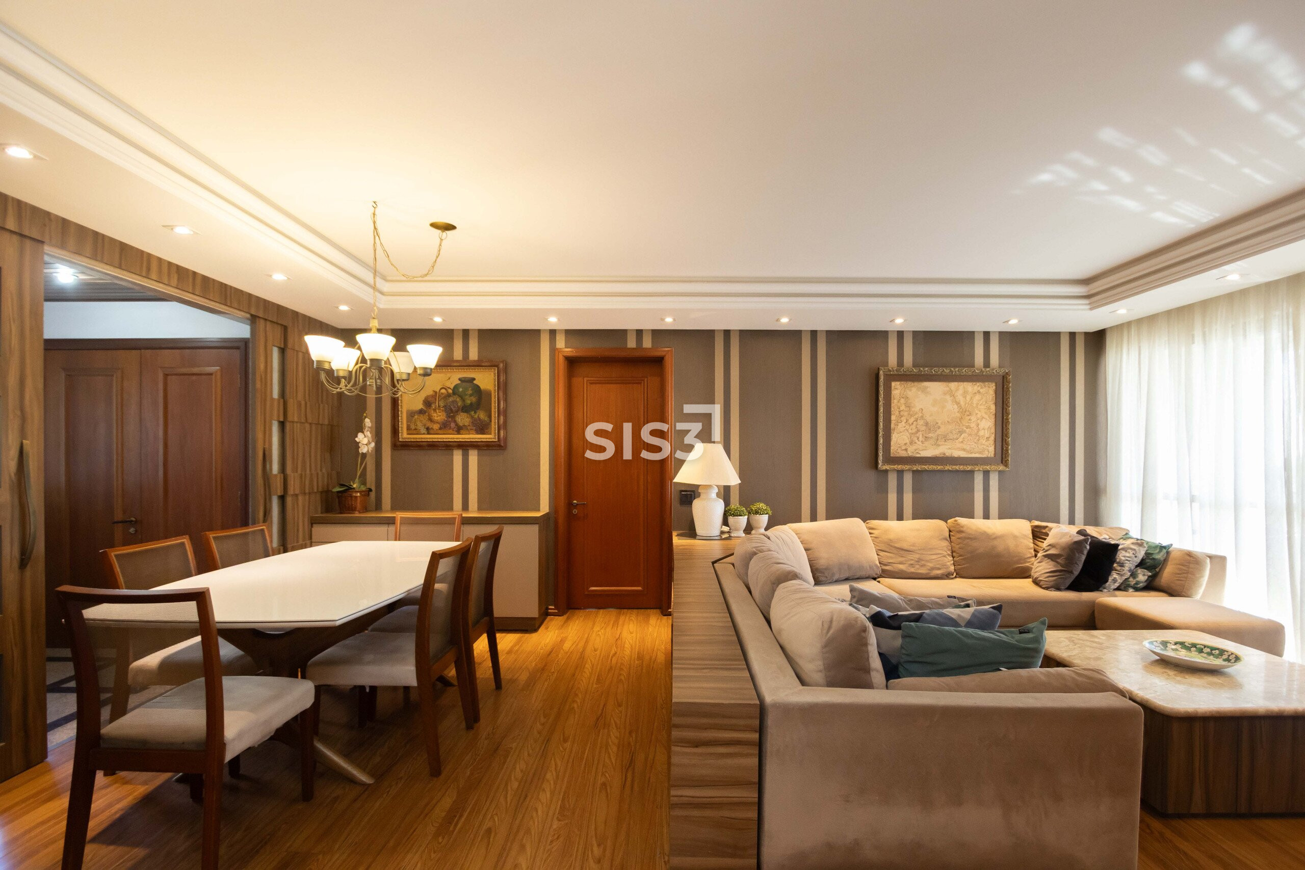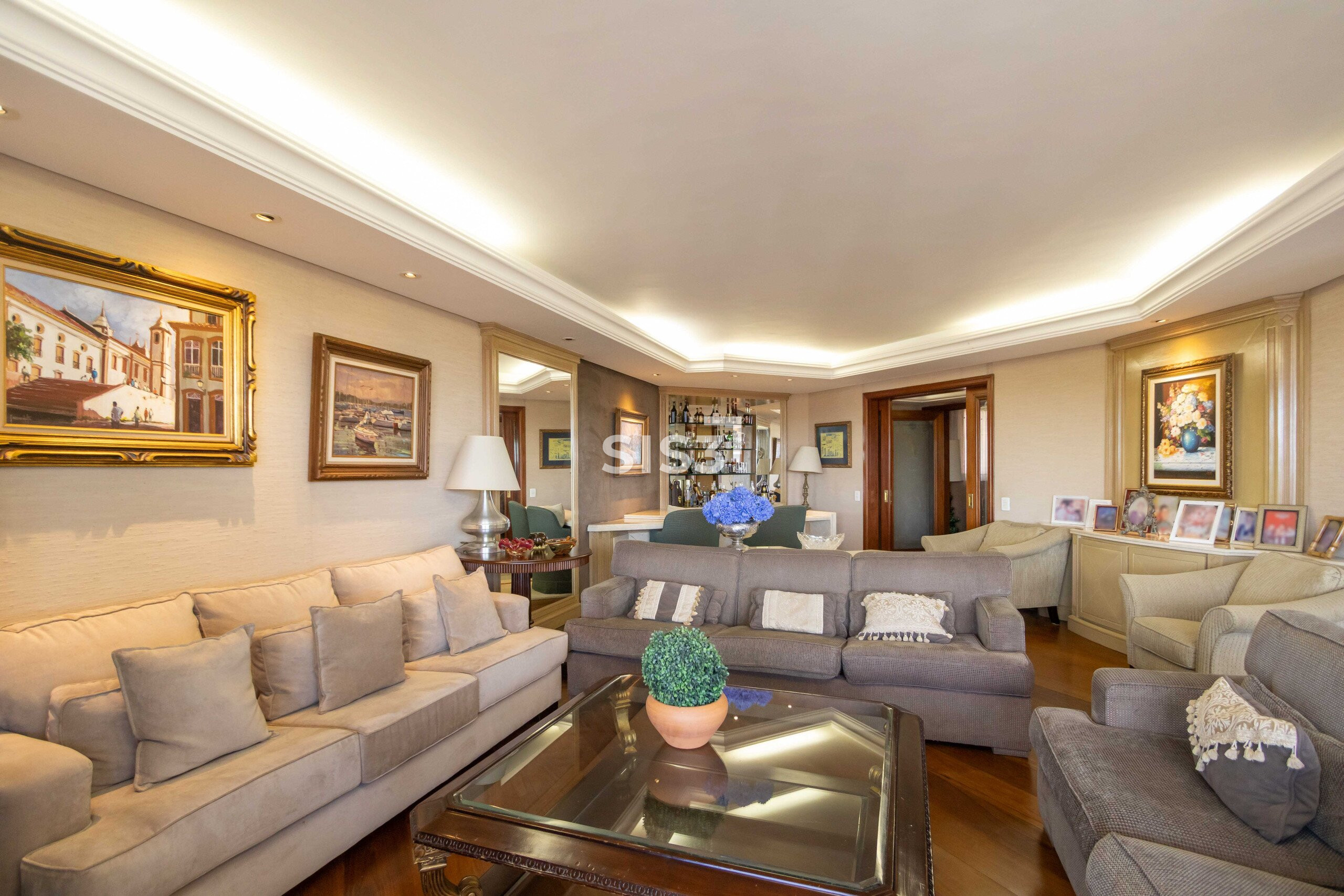 Com 314 m² privativos, o apartamento se abre em uma planta generosa, onde os espaços se conectam com fluidez e a varanda contínua percorre toda a fachada, trazendo uma vista aberta e definitiva. A face norte garante luz constante ao longo do dia, um detalhe que muda completamente a percepção dos ambientes.