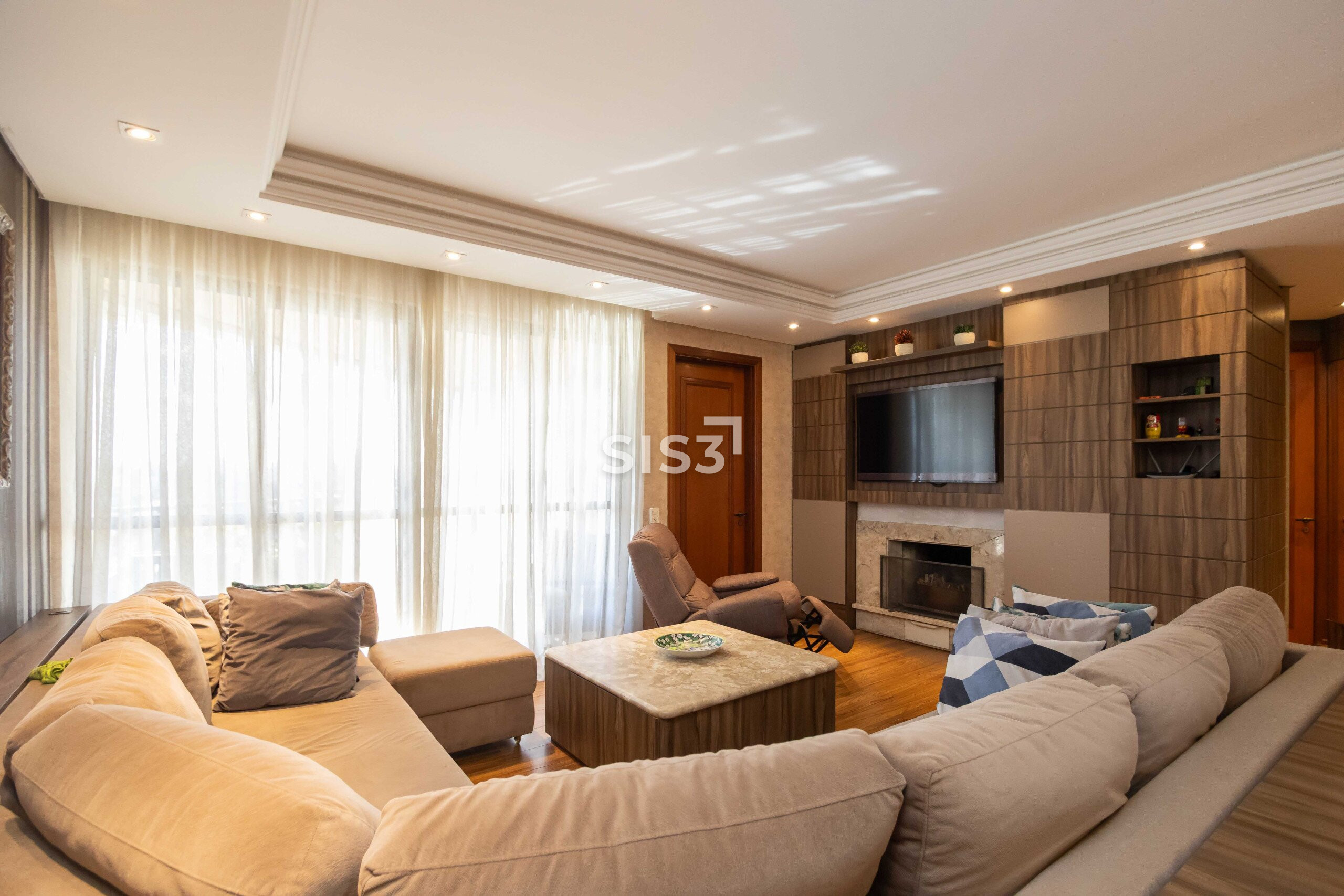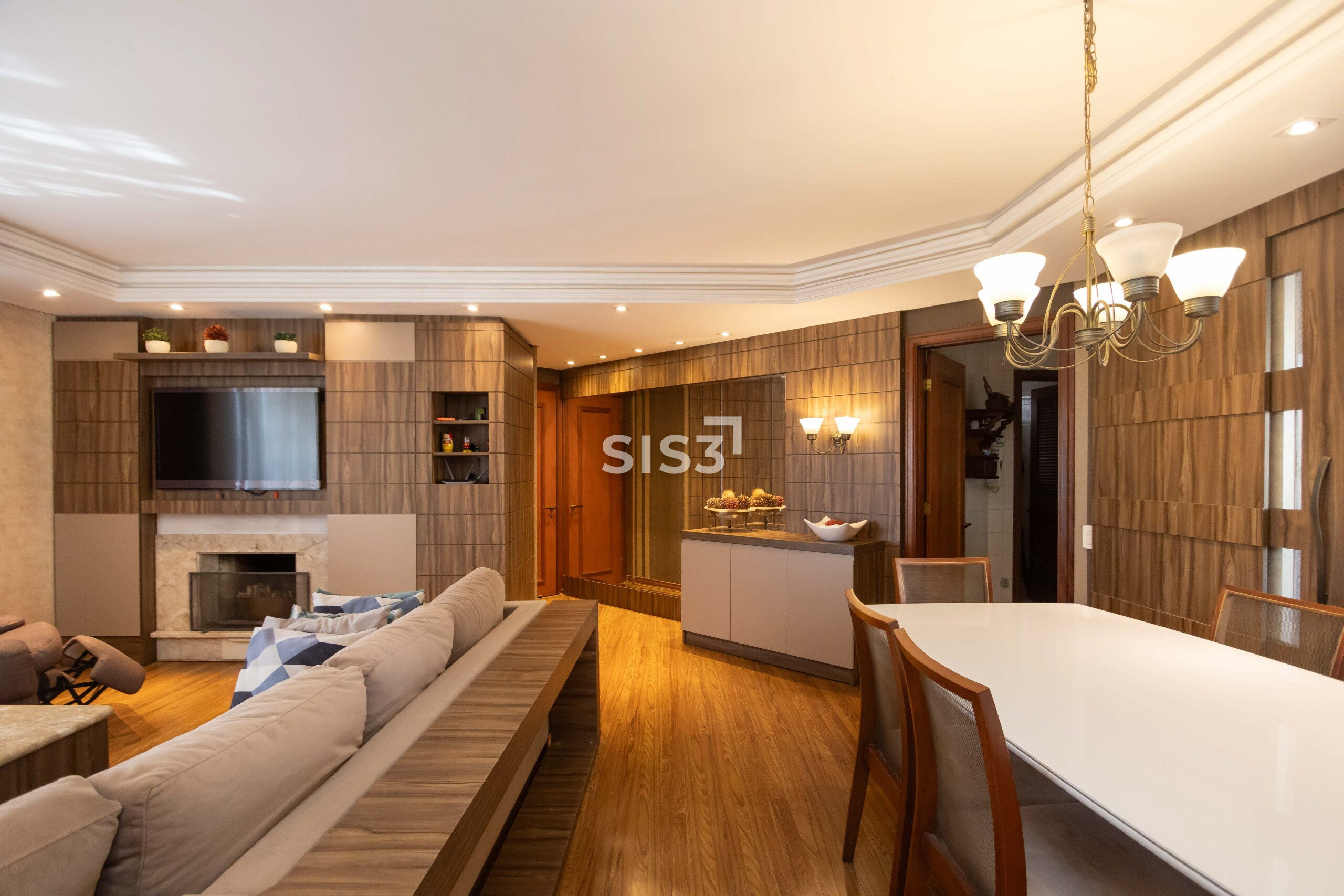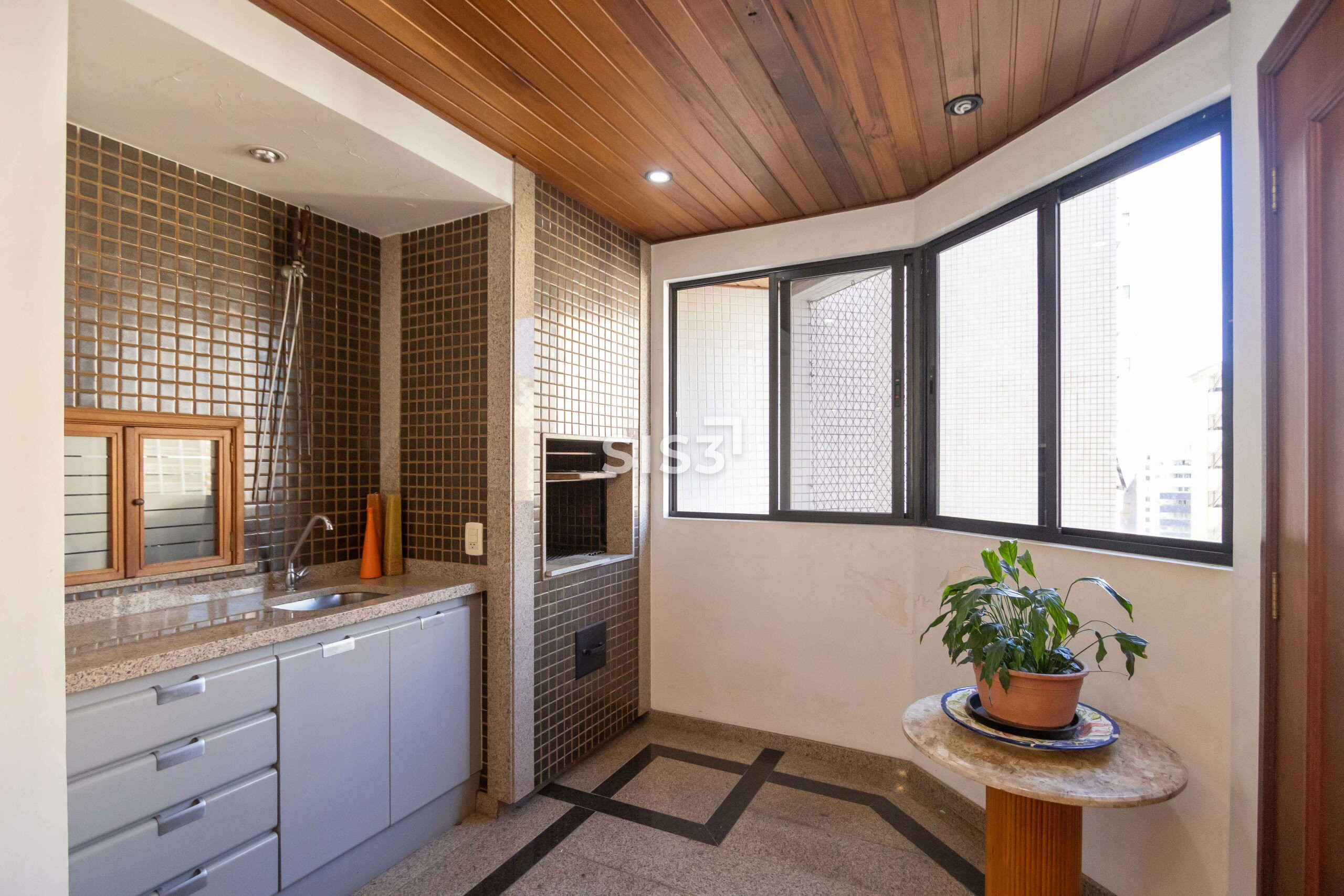 A área social é extensa, com diferentes possibilidades de layout, lareira e um espaço com churrasqueira integrado à varanda. Um cenário que convida a redesenhar os usos e explorar o potencial de cada metro.