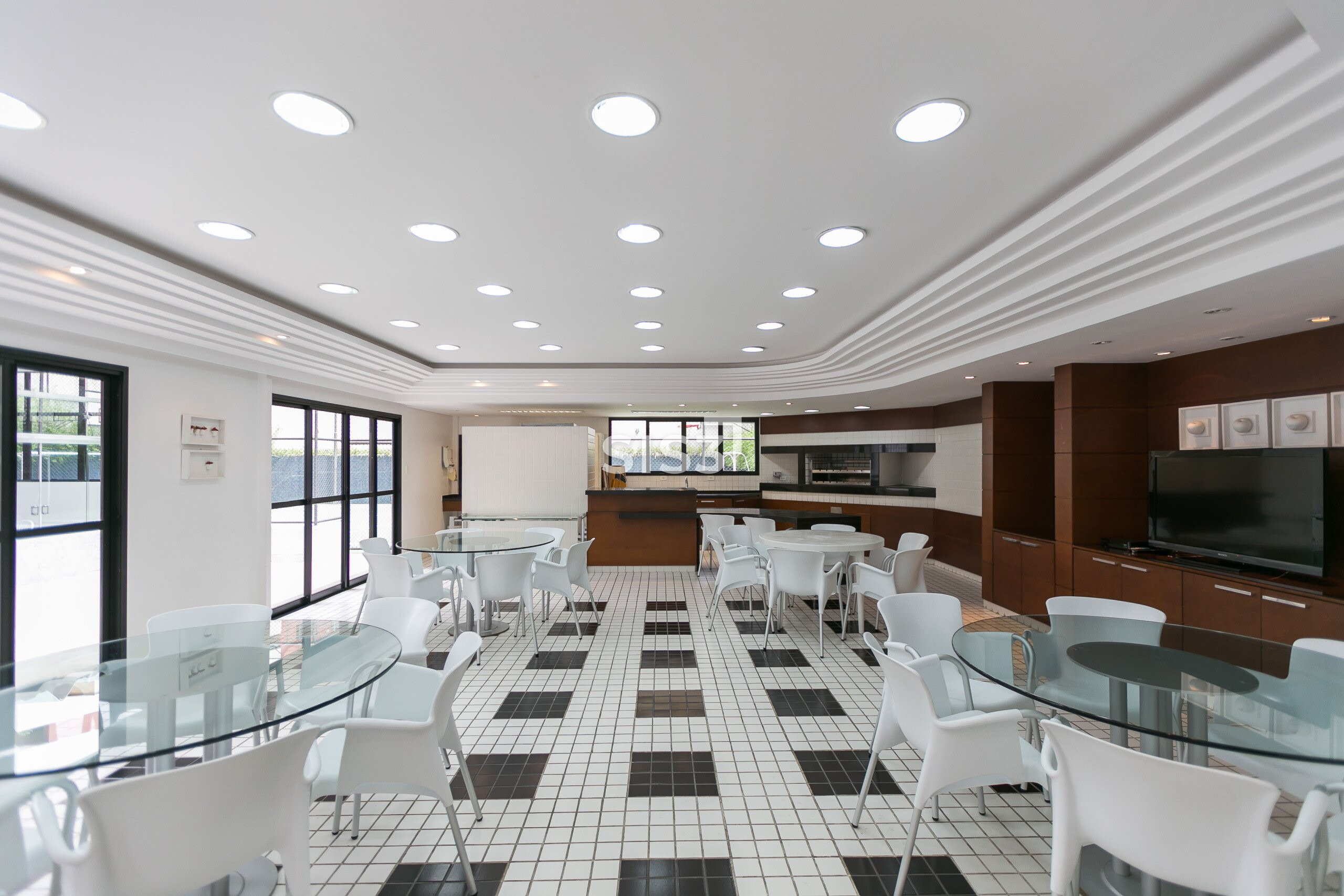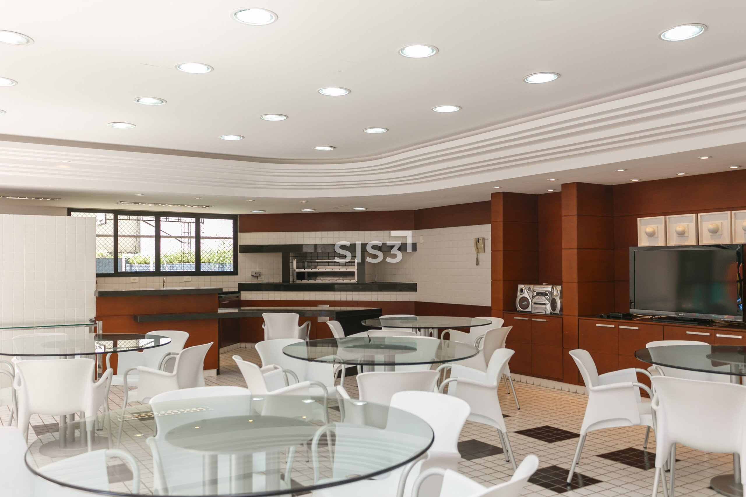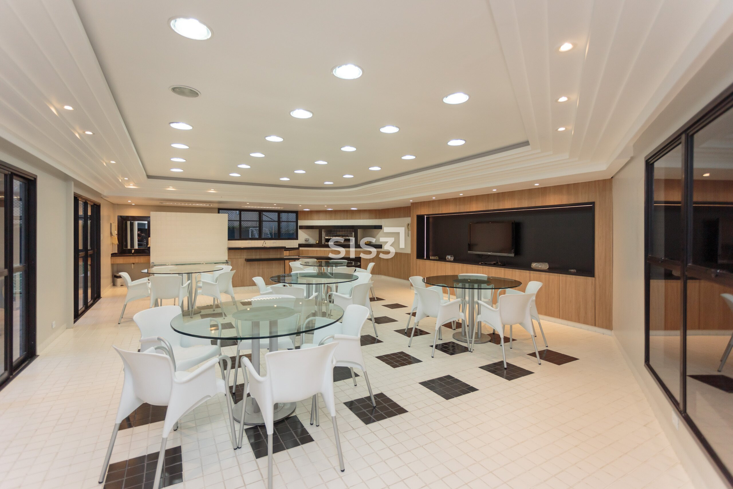 A área social é extensa, com diferentes possibilidades de layout, lareira e um espaço com churrasqueira integrado à varanda. Um cenário que convida a redesenhar os usos e explorar o potencial de cada metro.