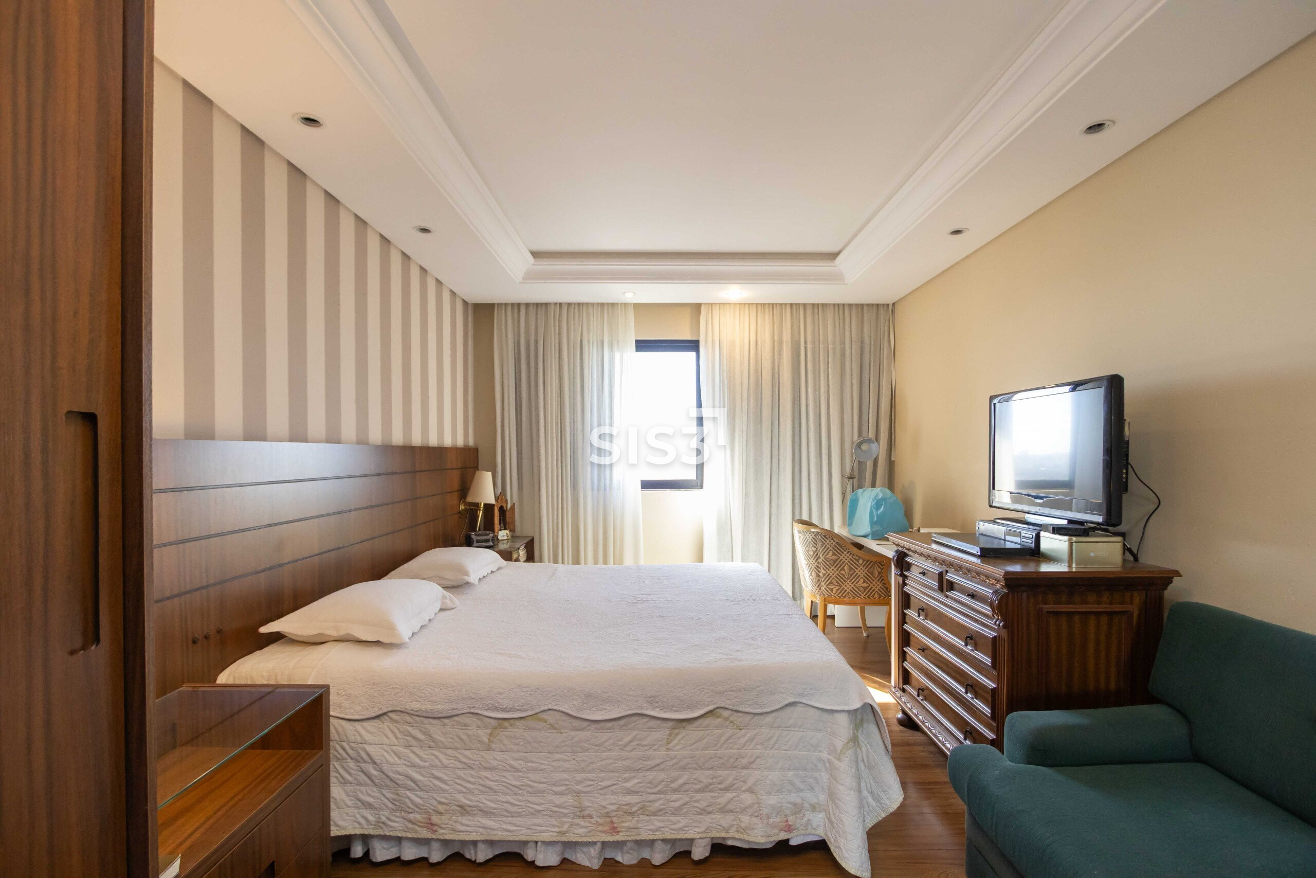 Na área íntima, são 4 quartos, sendo 3 suítes, todos com boas dimensões e privacidade.