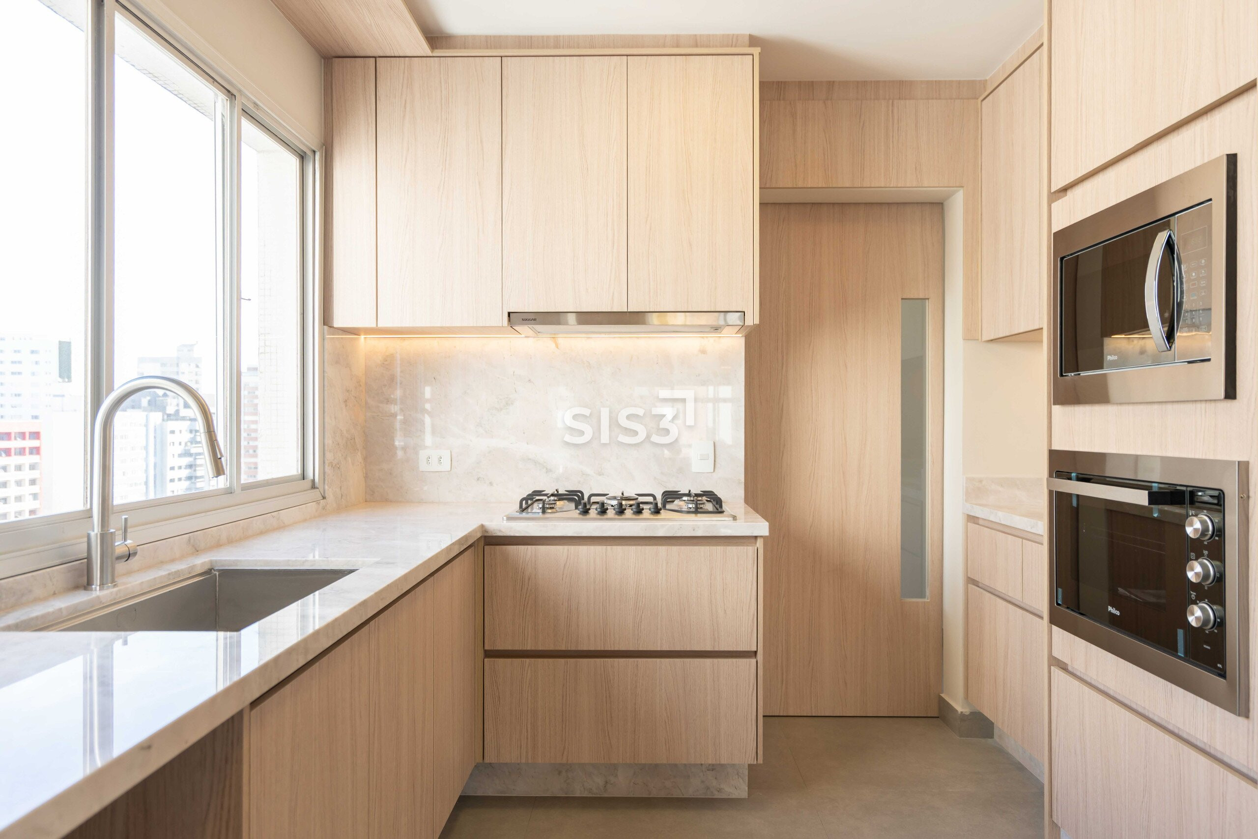 A marcenaria é impecável, de alta qualidade e com acabamento refinado. A reforma foi executada com atenção a cada detalhe, incluindo instalações elétrica e hidráulica totalmente novas, unindo estética e funcionalidade.
