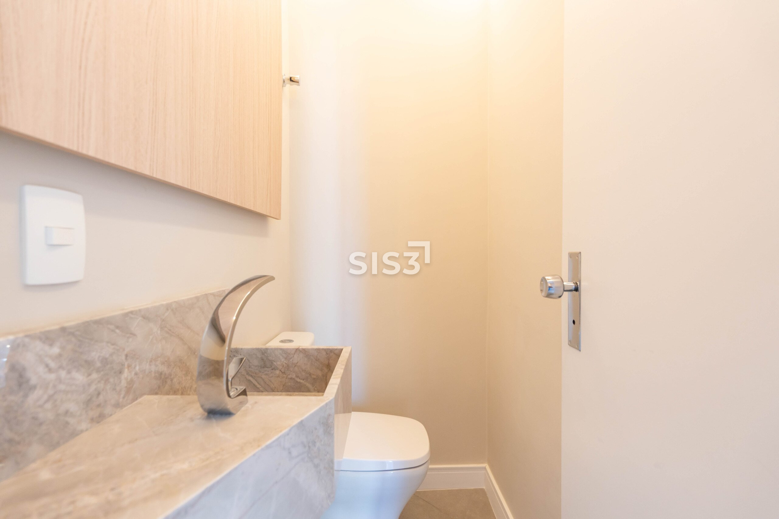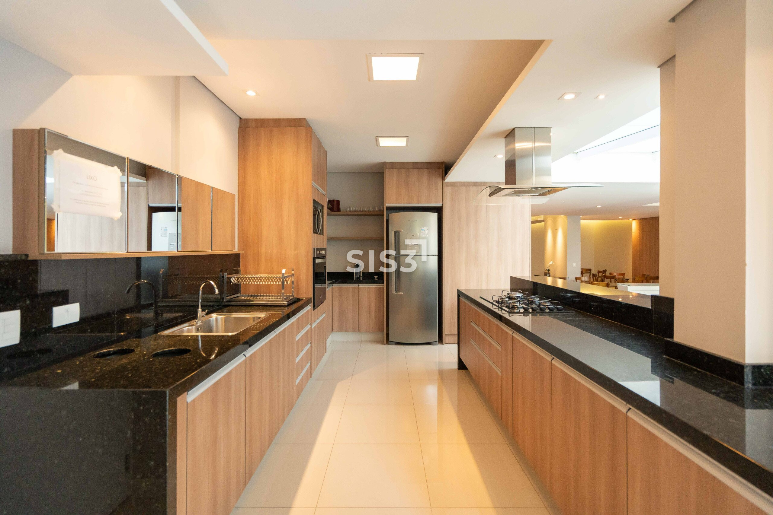 A área social conta com um hall de entrada elegante e iluminação contemporânea, além de uma sala de estar e jantar integradas, com amplas janelas em toda a extensão, permitindo a criação de até três ambientes distintos. Há ainda um lavabo e uma cozinha em conceito aberto, estrategicamente pensada para ser fechada, atendendo diferentes estilos de vida.