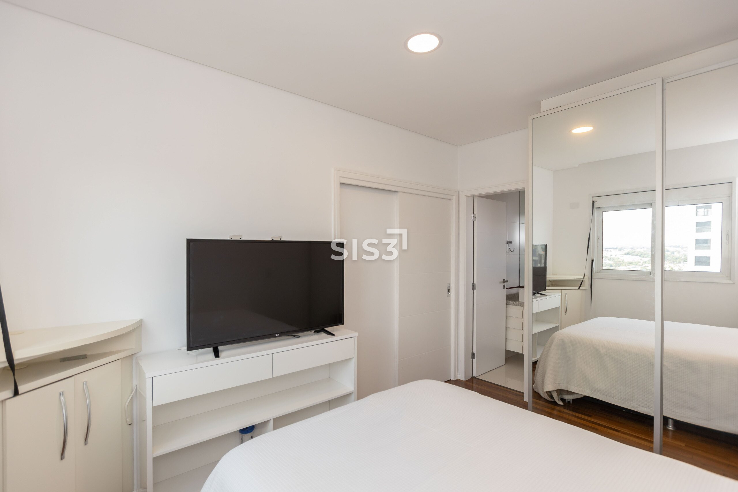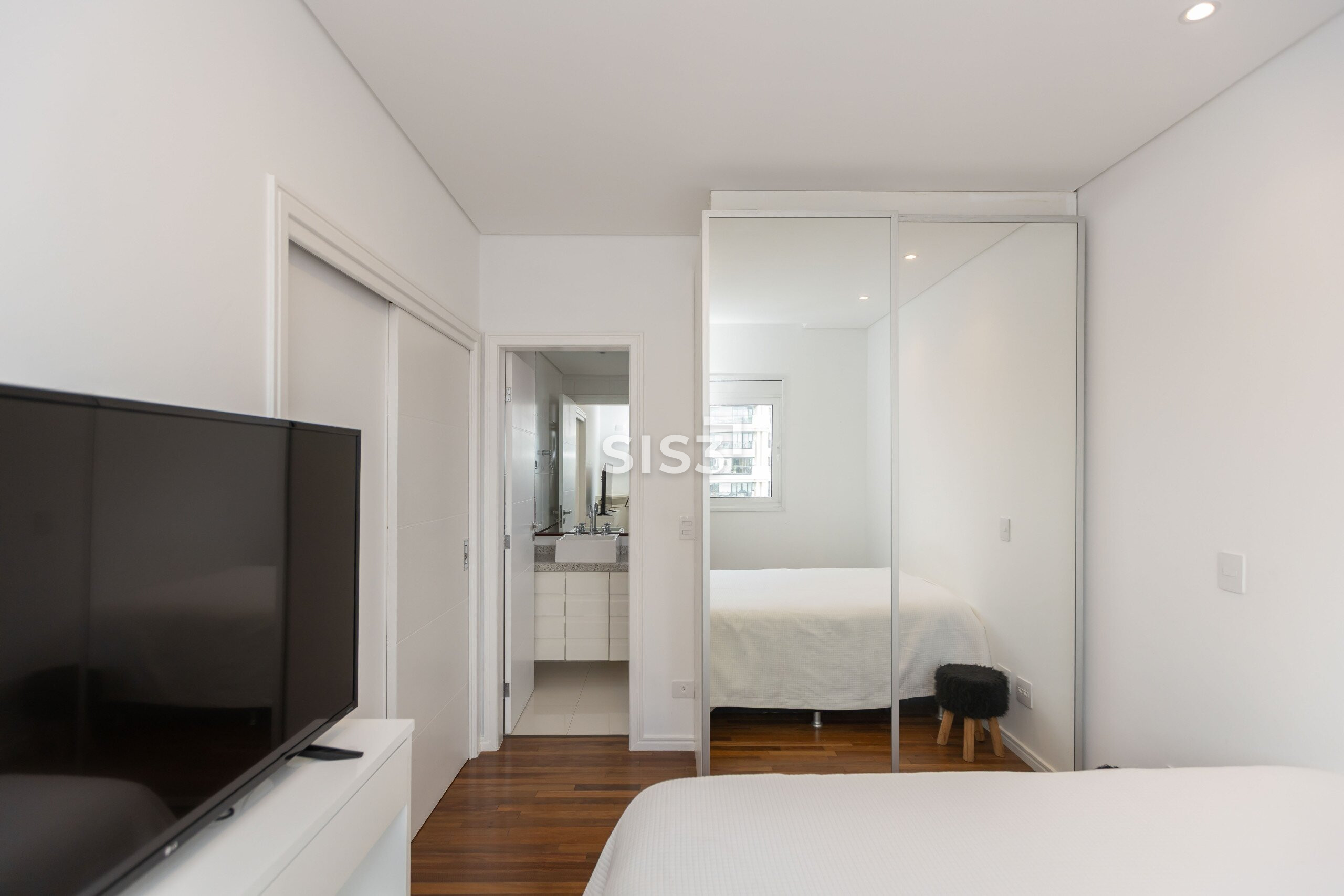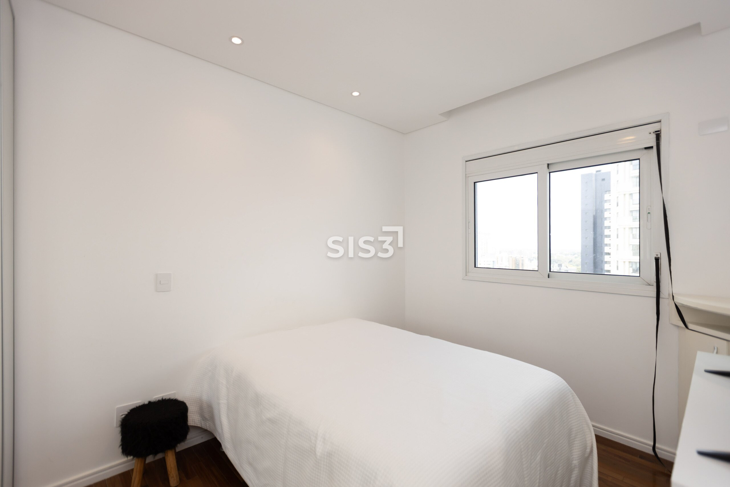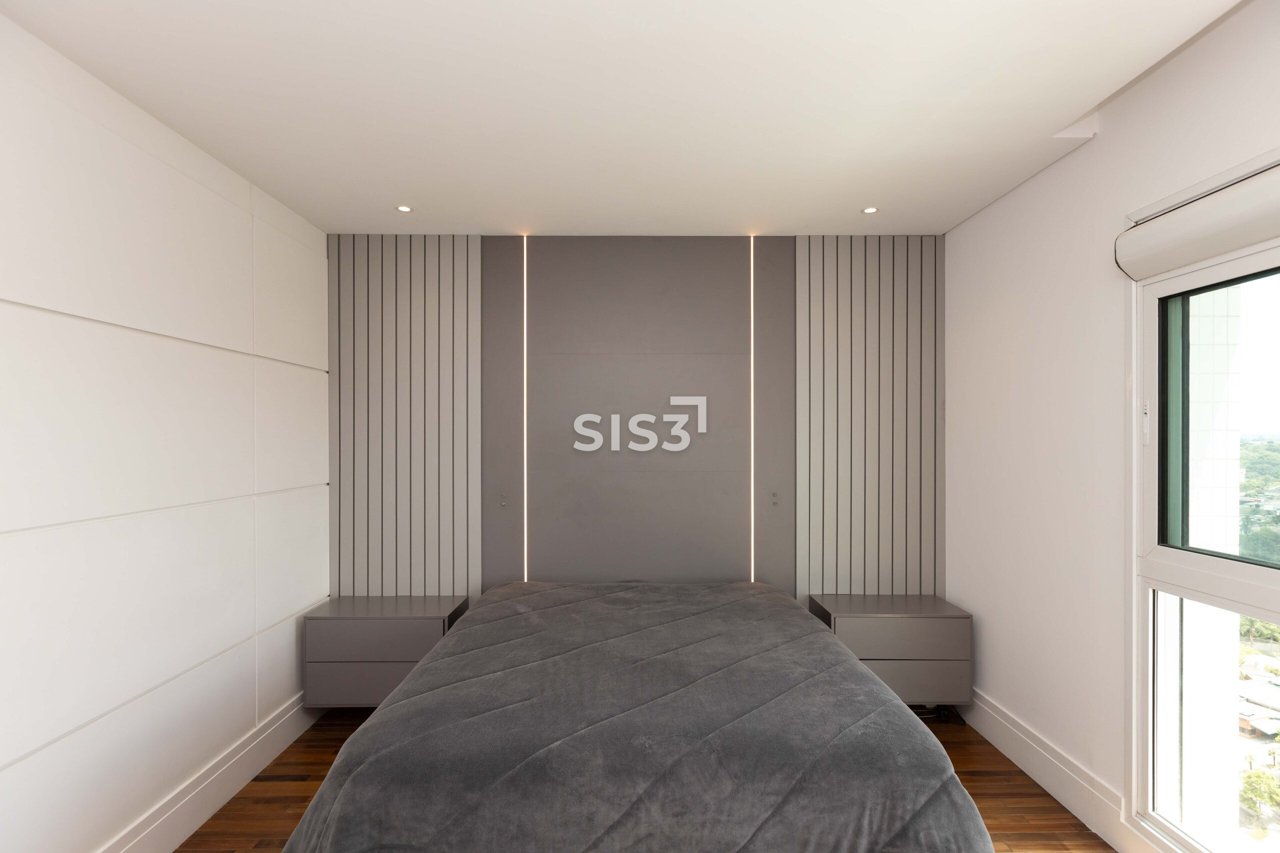 O piso em madeira natural reforça o conforto dos ambientes. Os quartos contam com vidros duplos, garantindo isolamento térmico e acústico, e o apartamento já possui infraestrutura para ar-condicionado.