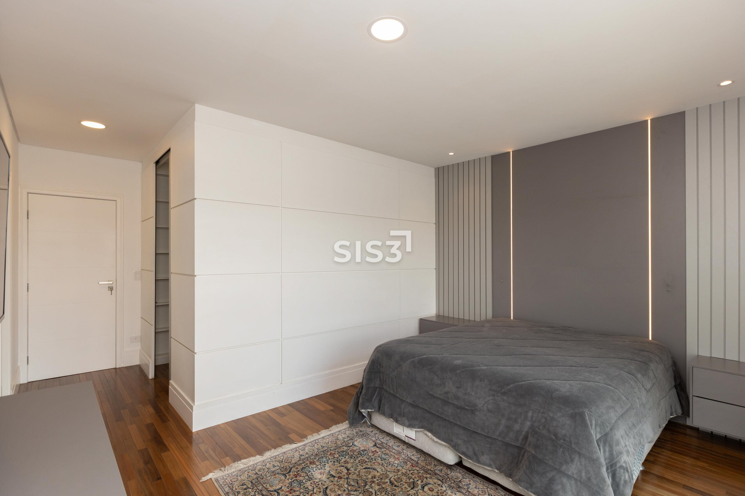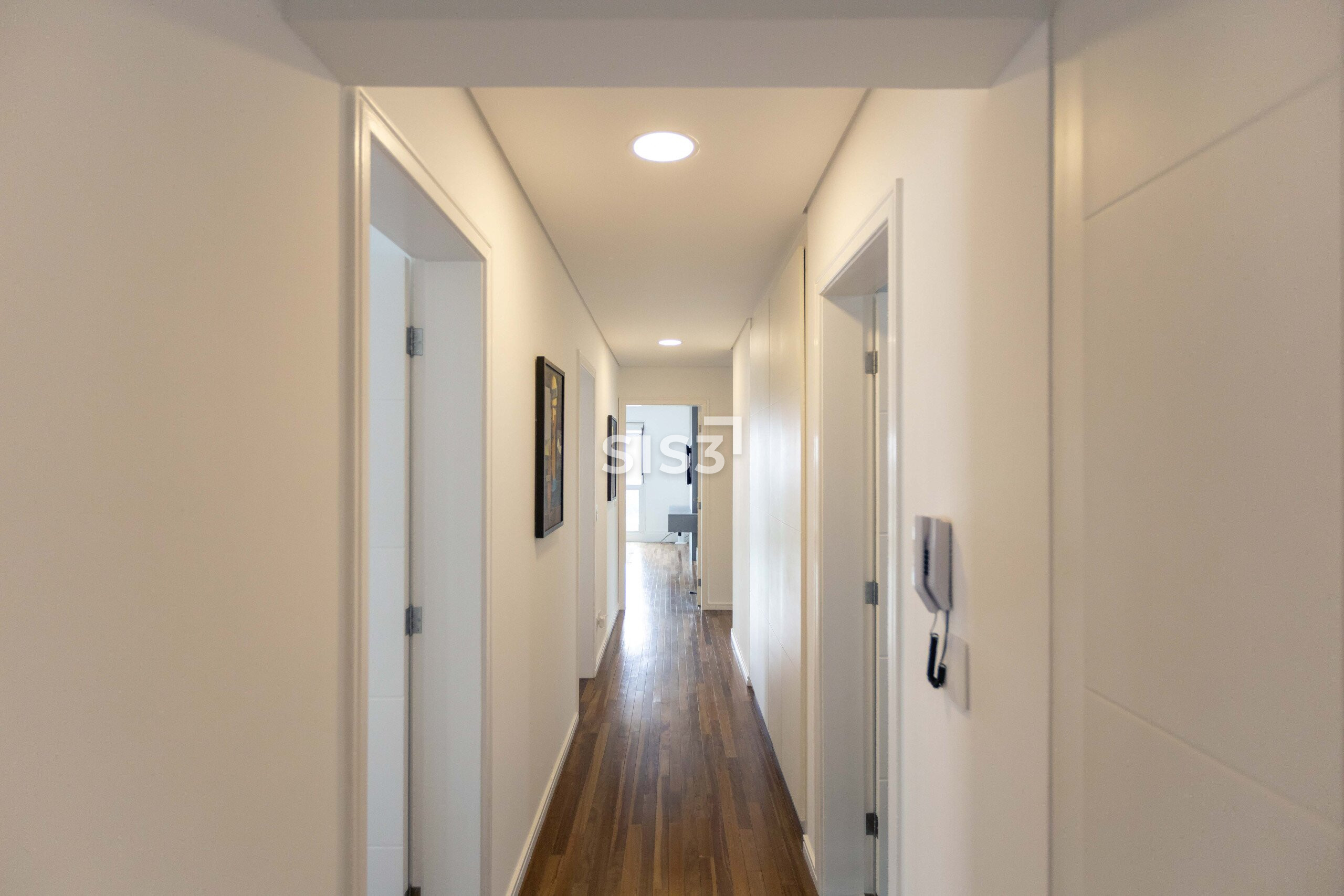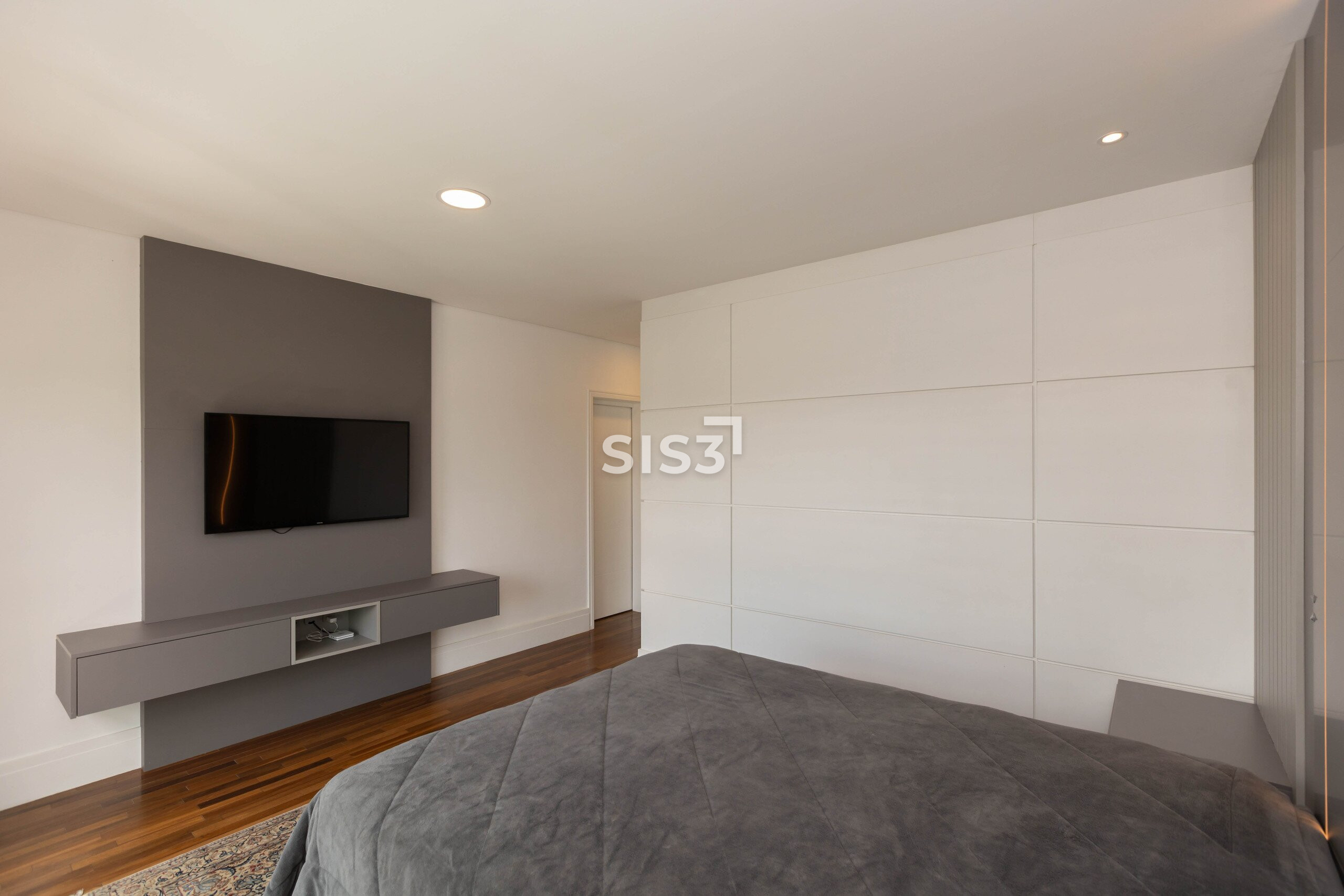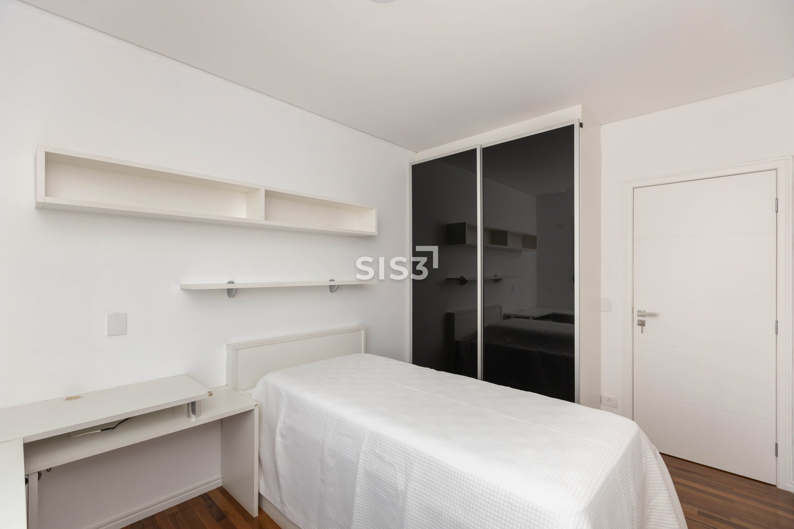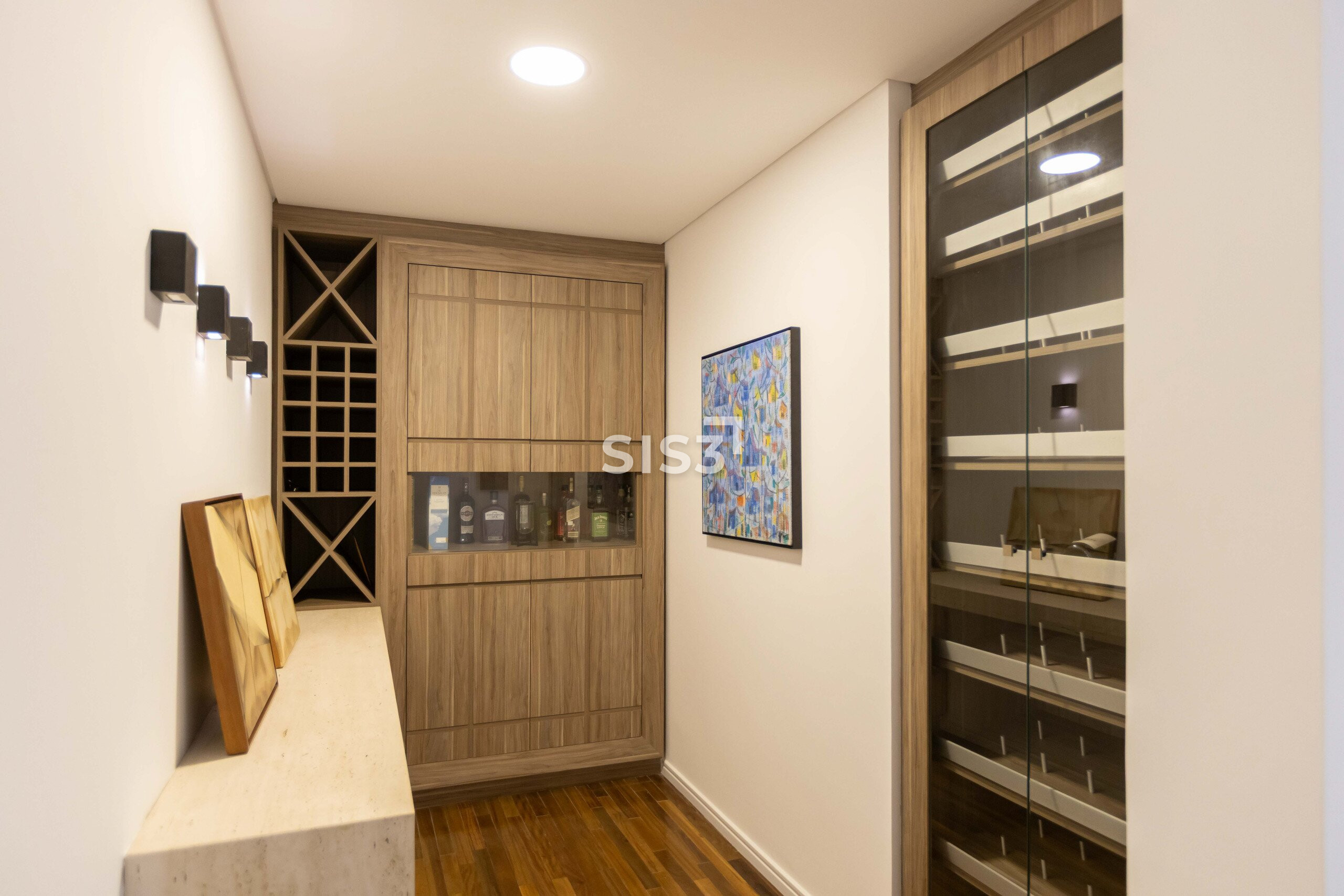 O piso em madeira natural reforça o conforto dos ambientes. Os quartos contam com vidros duplos, garantindo isolamento térmico e acústico, e o apartamento já possui infraestrutura para ar-condicionado.