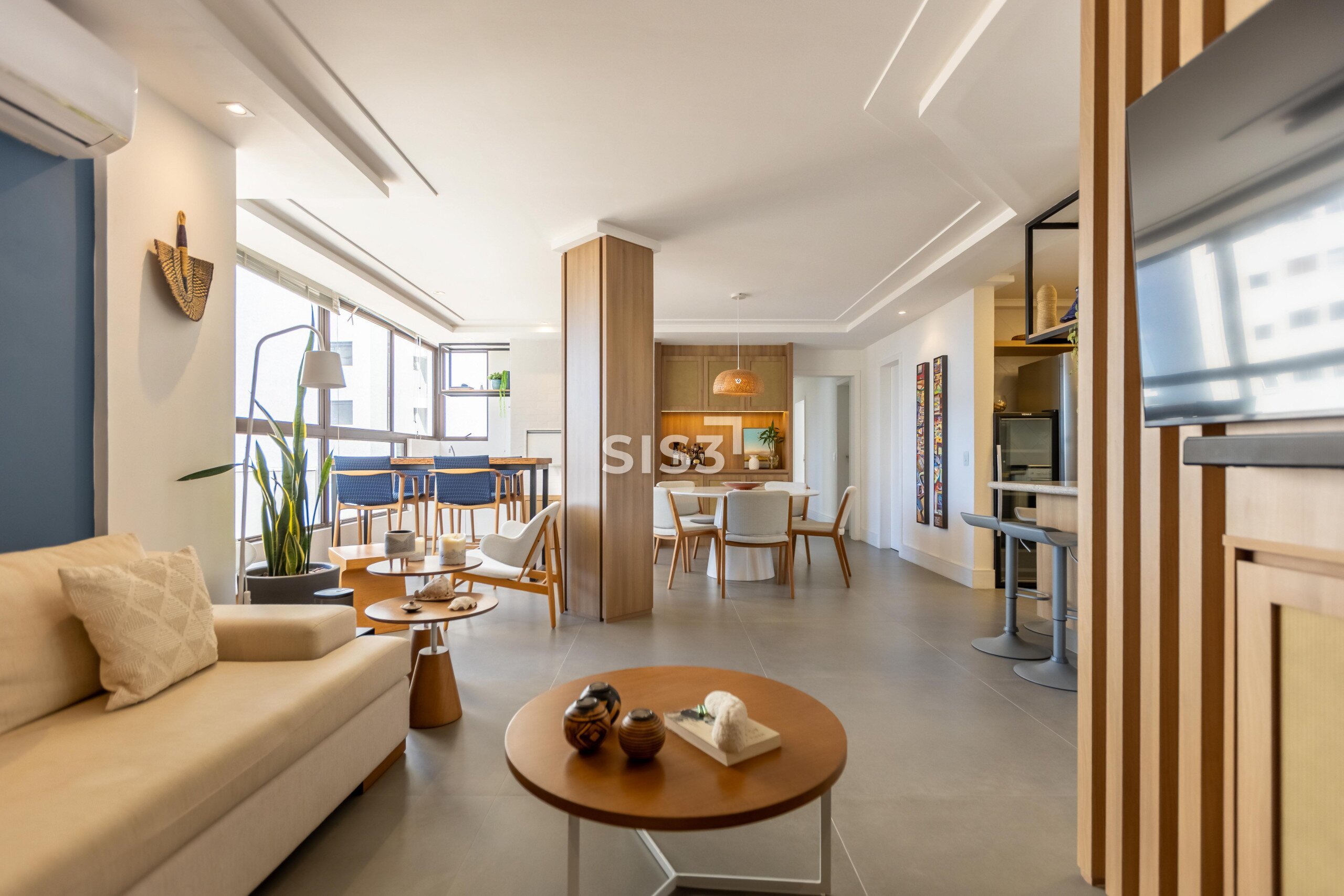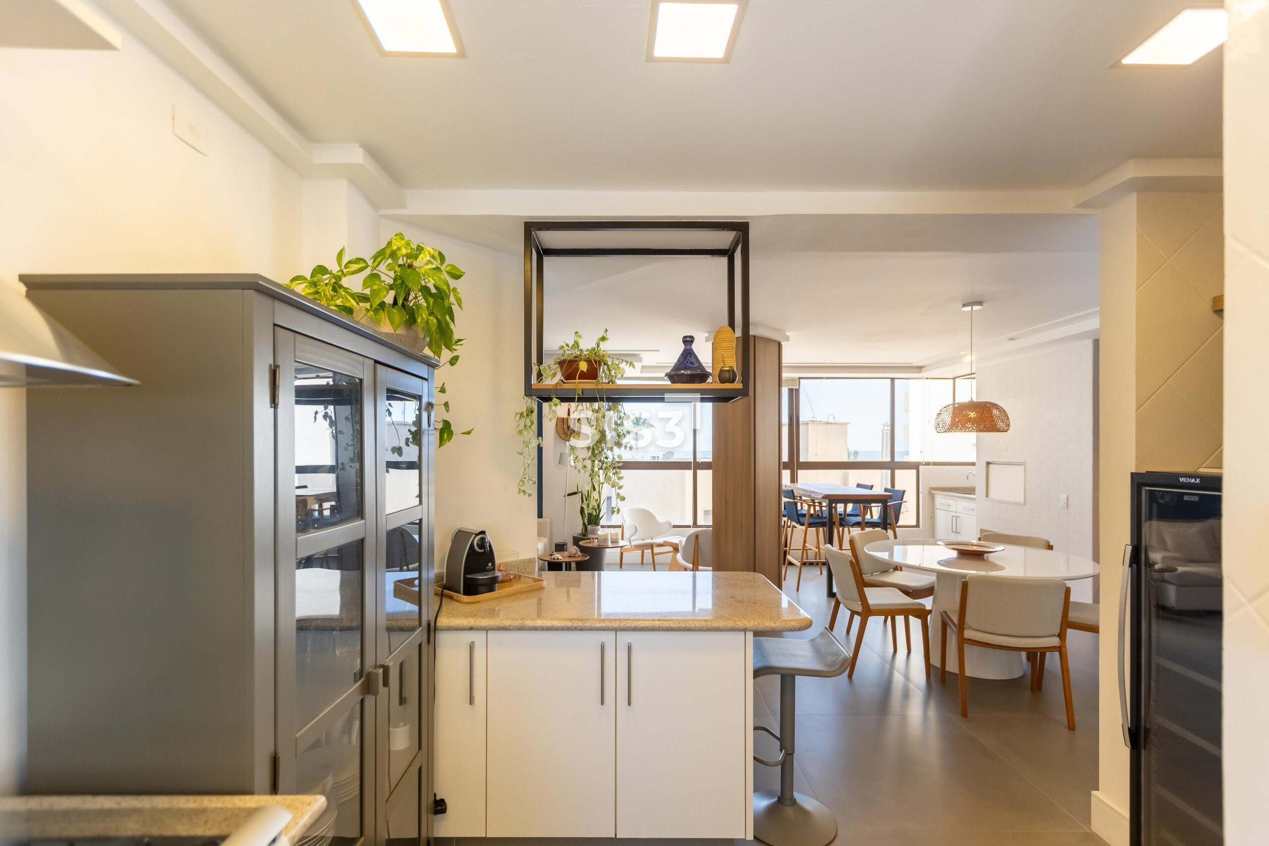 Com 118 m² de área privativa, o apartamento foi projetado para quem busca praticidade e uma rotina leve perto do mar. São 3 quartos, sendo 1 suíte com sacada, além de banheiro social e lavabo. Os ambientes integrados e a churrasqueira a carvão tornam o espaço perfeito para reunir e aproveitar o tempo com a família.