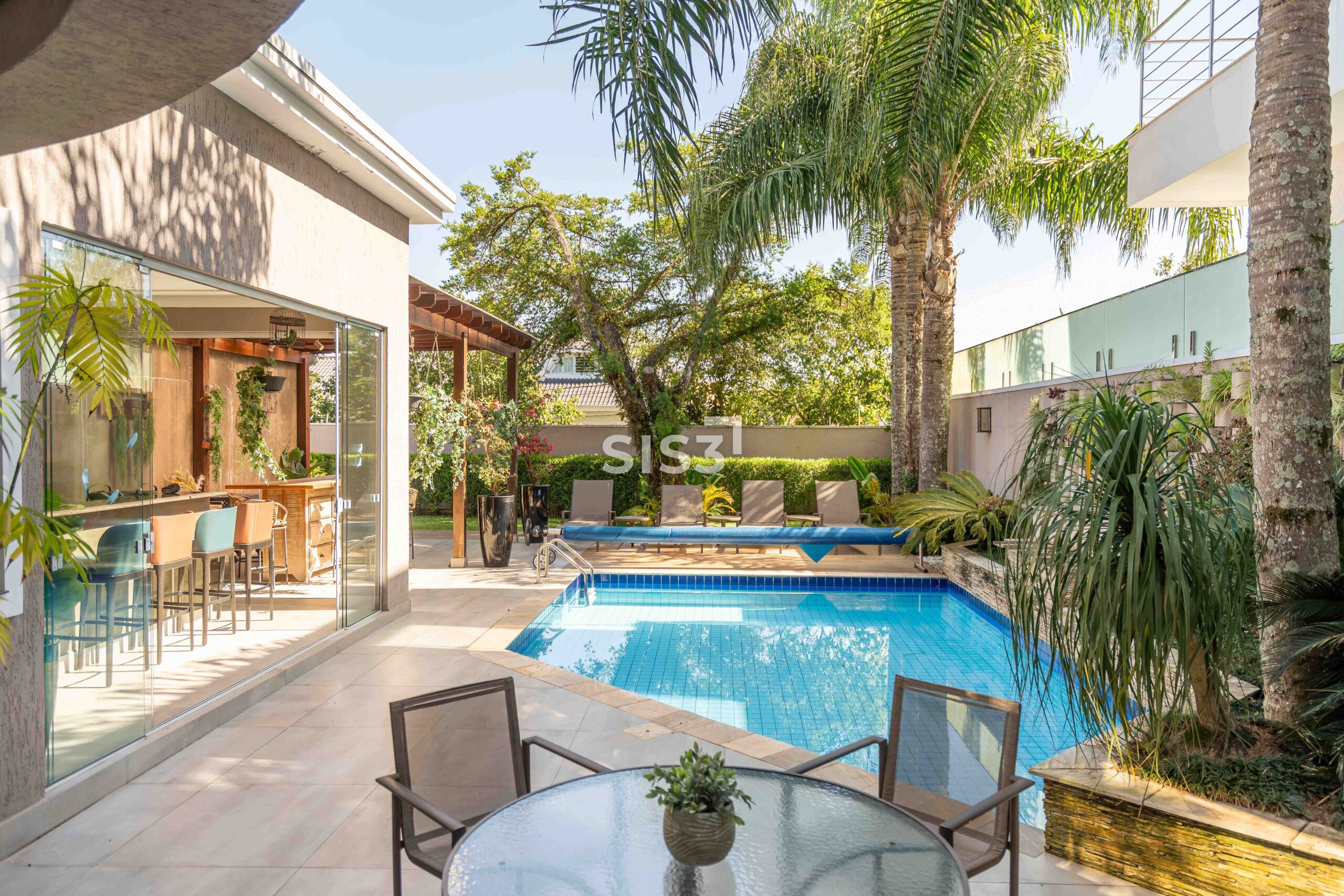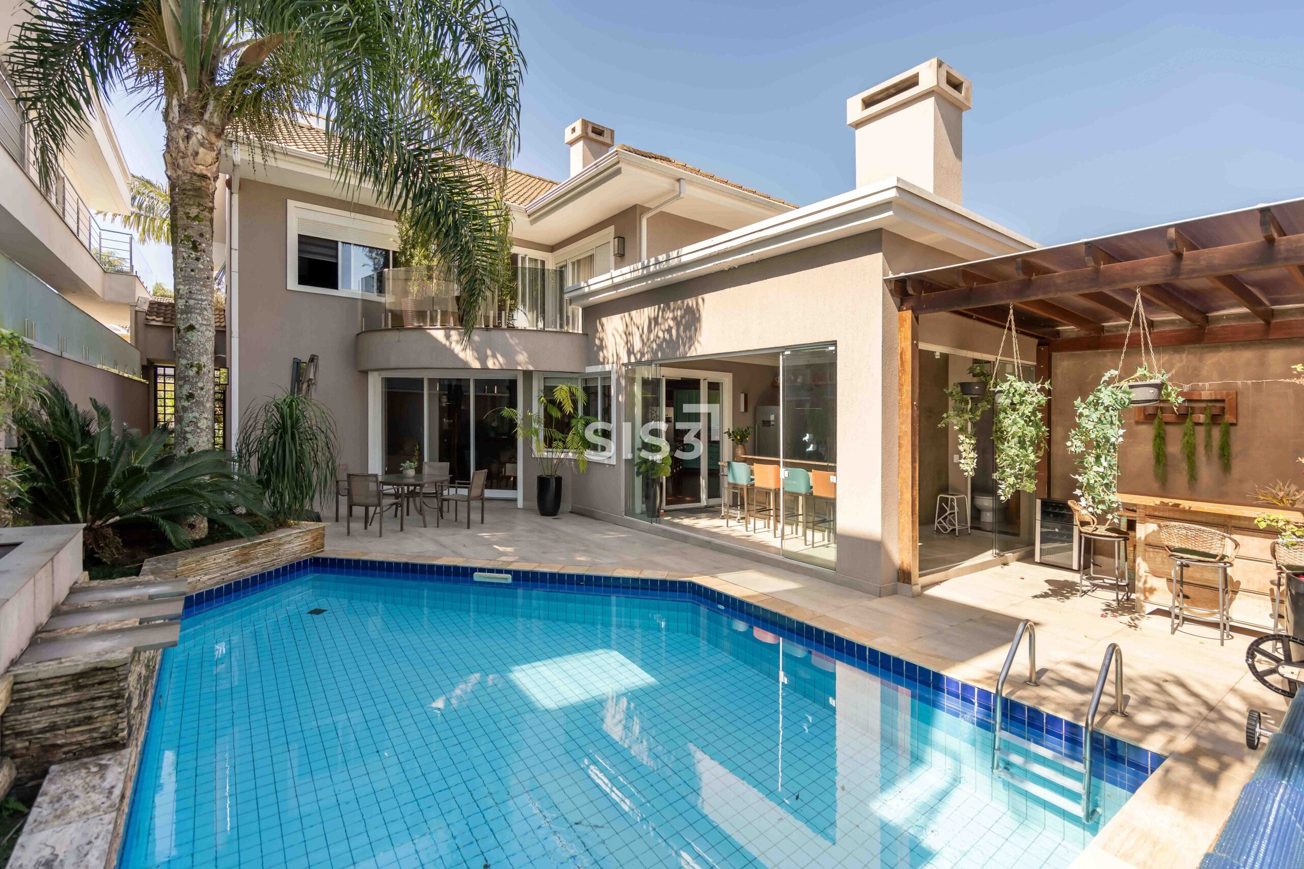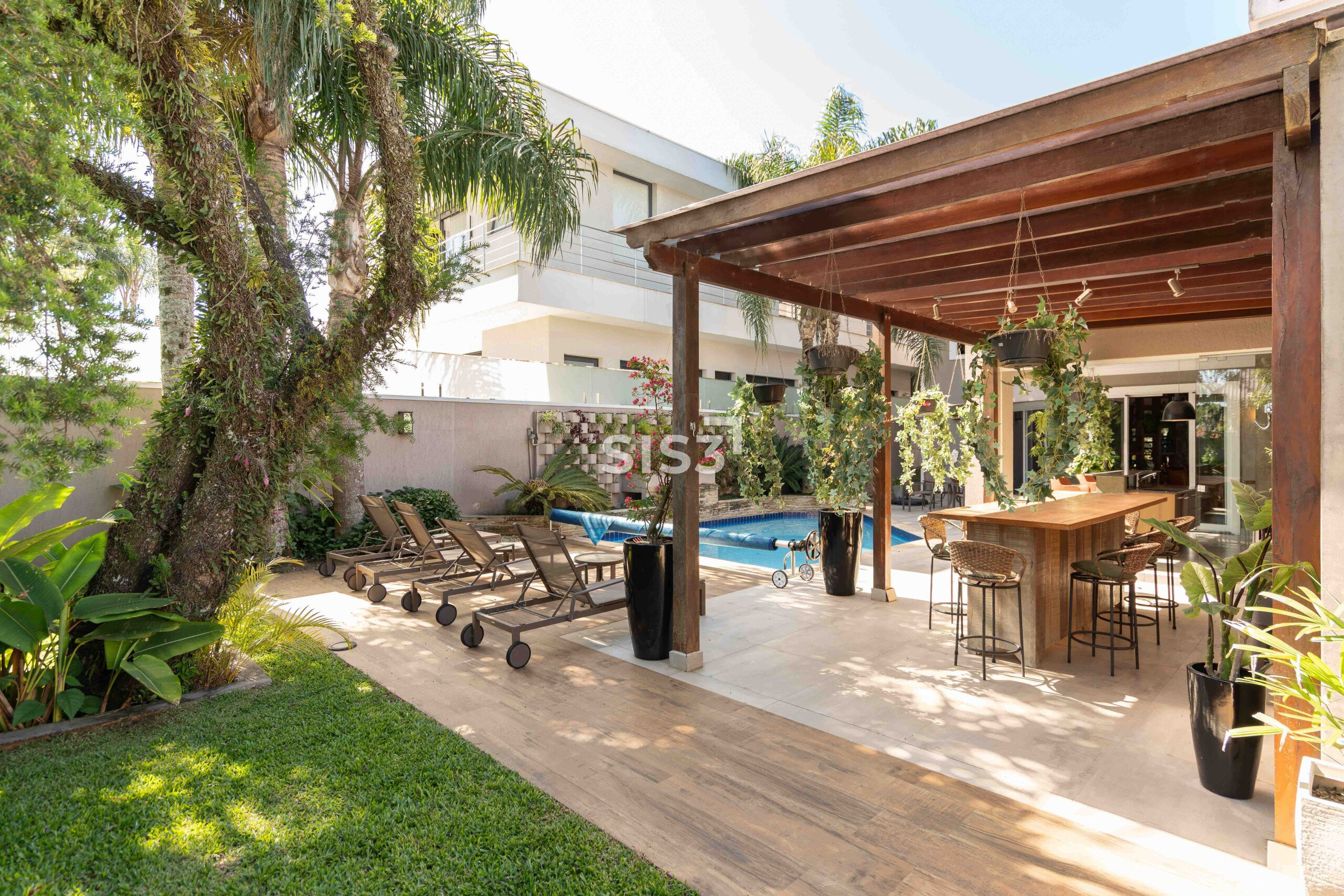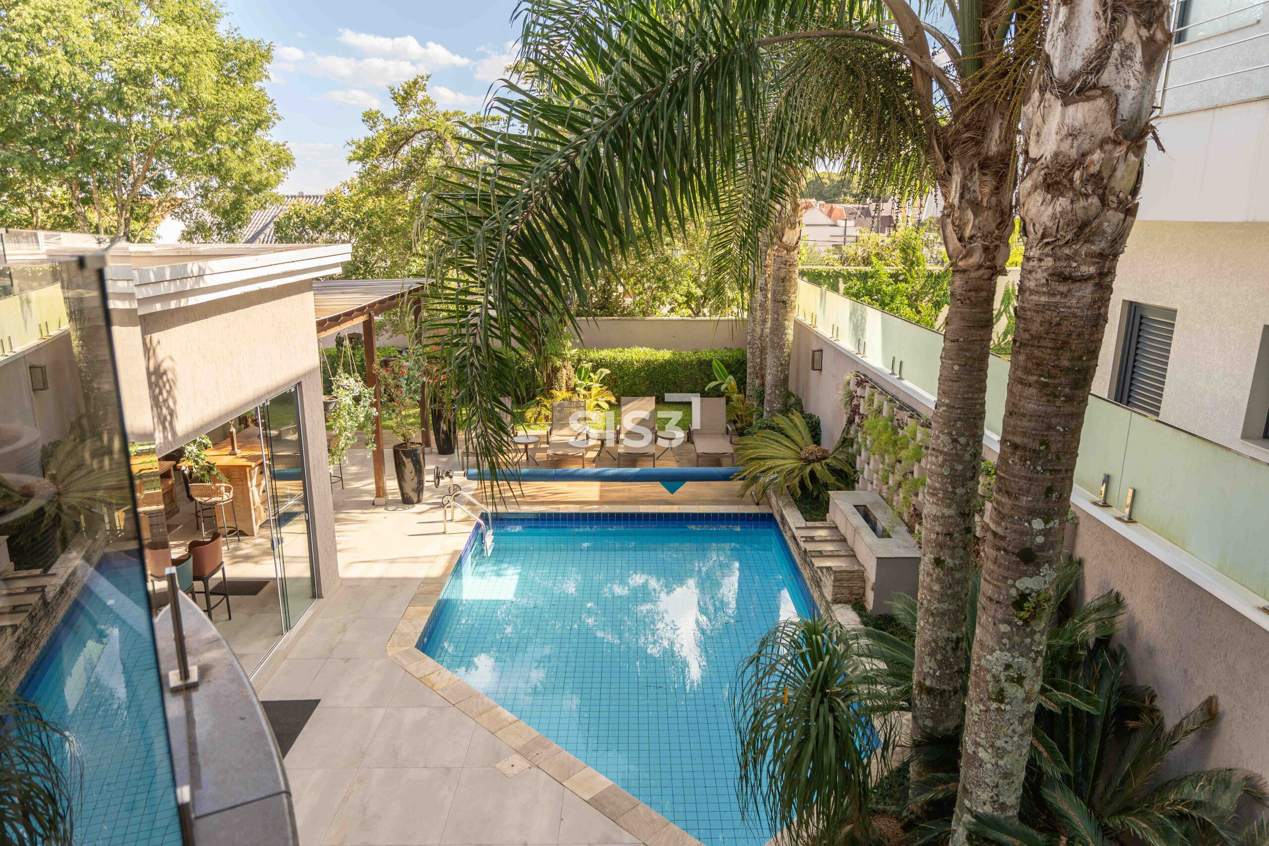 Na área externa, a piscina, o espaço gourmet e as áreas de estar formam um cenário perfeito para encontros e para aproveitar o tempo ao ar livre, sempre com privacidade e verde ao redor.