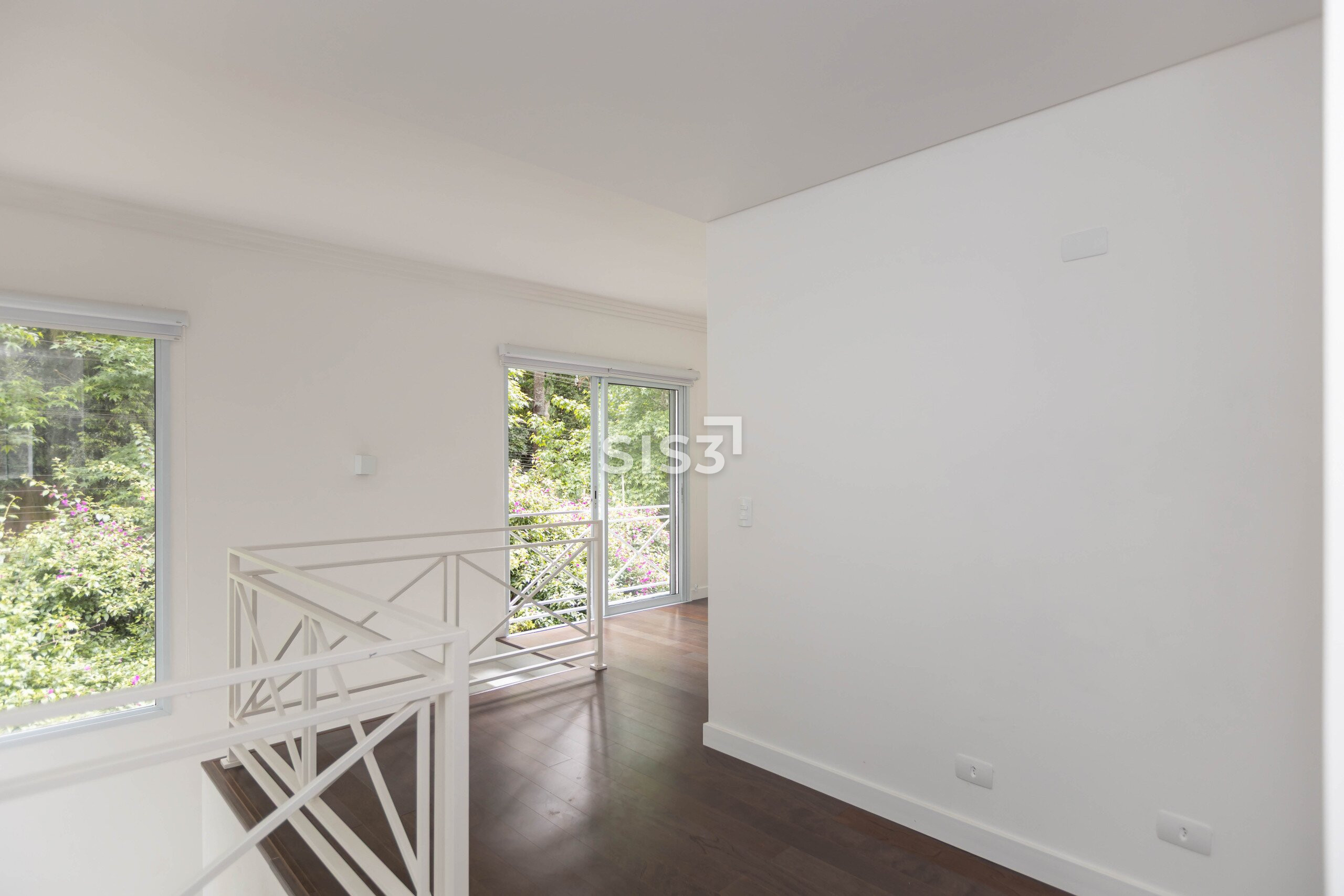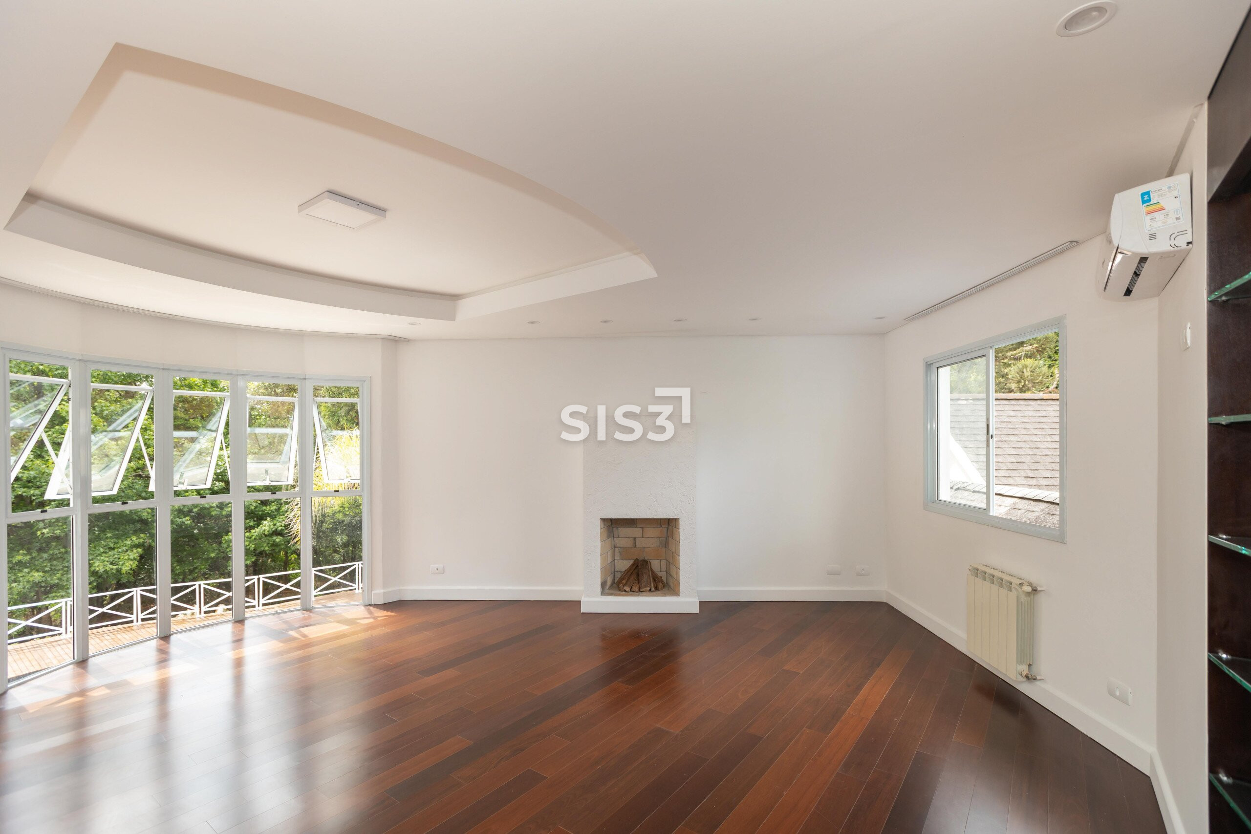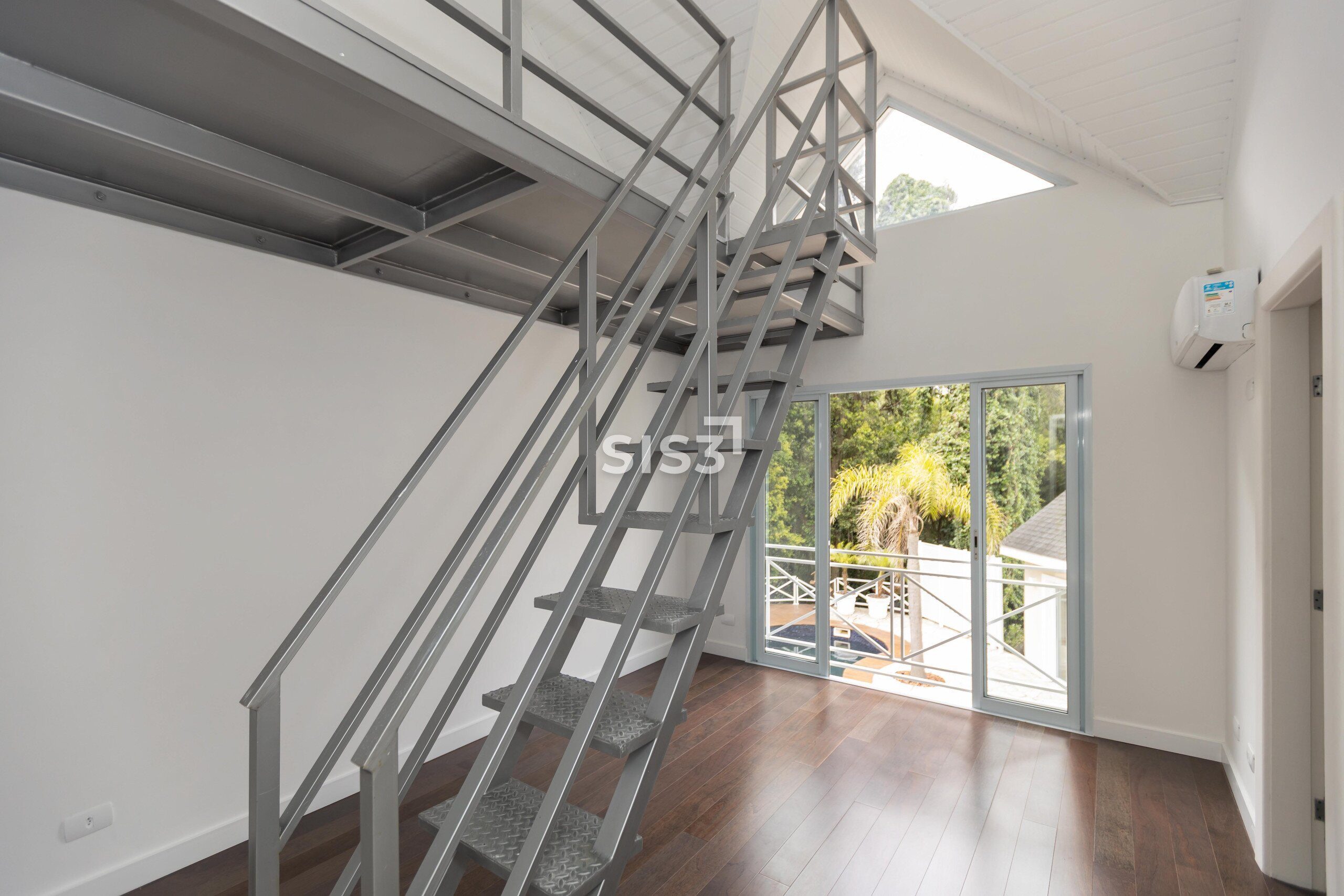 No pavimento superior, estão 2 suítes e 2 demi-suítes com mezanino. A suíte master, com lareira e closet, é quase um refúgio particular entre as árvores. Todos os ambientes possuem calefação, e os banheiros com banheira convidam a encerrar o dia no próprio ritmo.