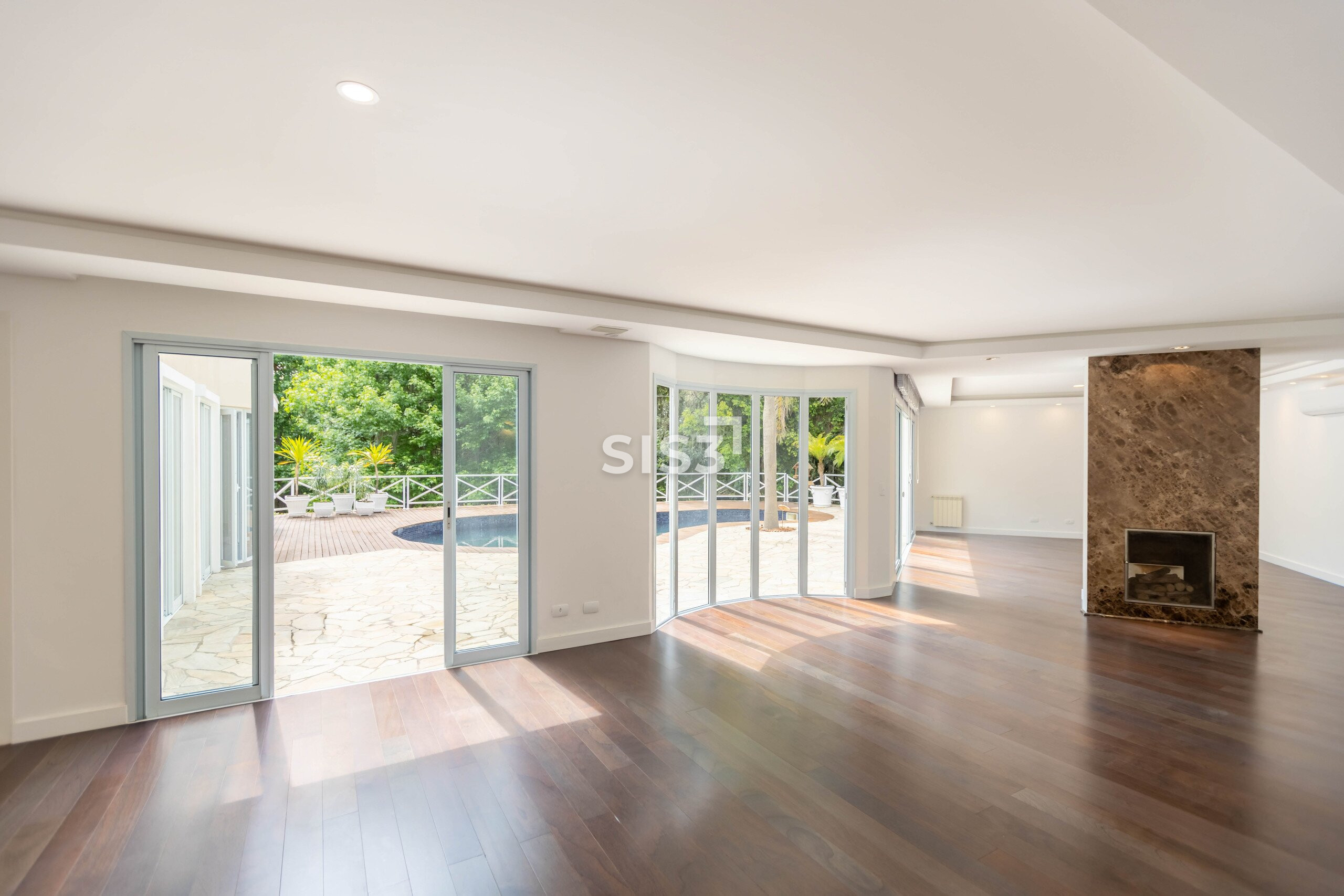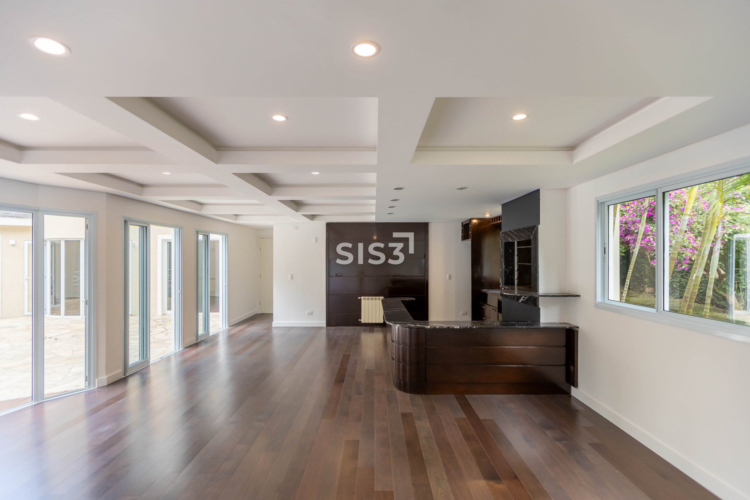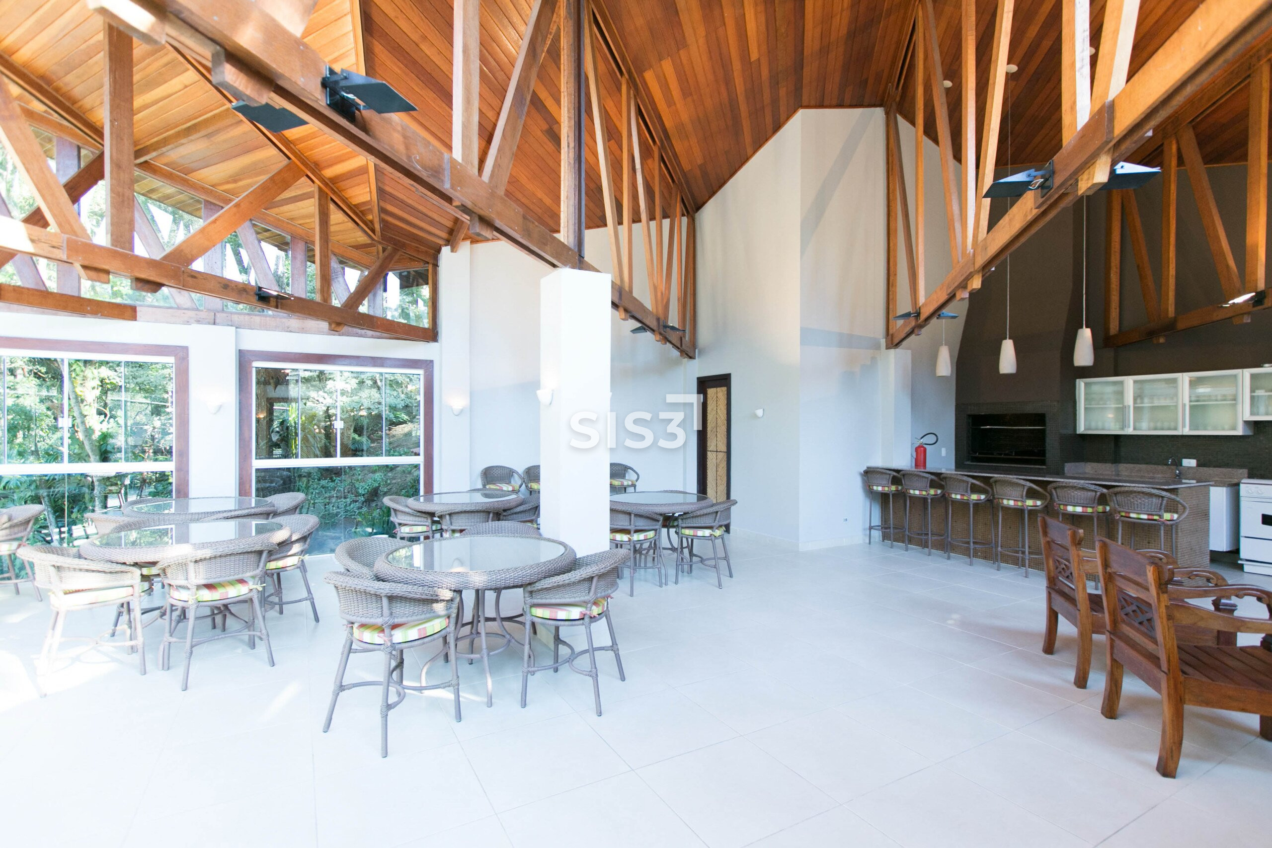 No piso térreo, a sala para dois ambientes se organiza ao redor da lareira, criando um espaço que acolhe tanto os dias de inverno quanto as conversas longas. O salão gourmet com churrasqueira amplia o convívio, enquanto a cozinha e a área de serviço seguem práticas e bem distribuídas.