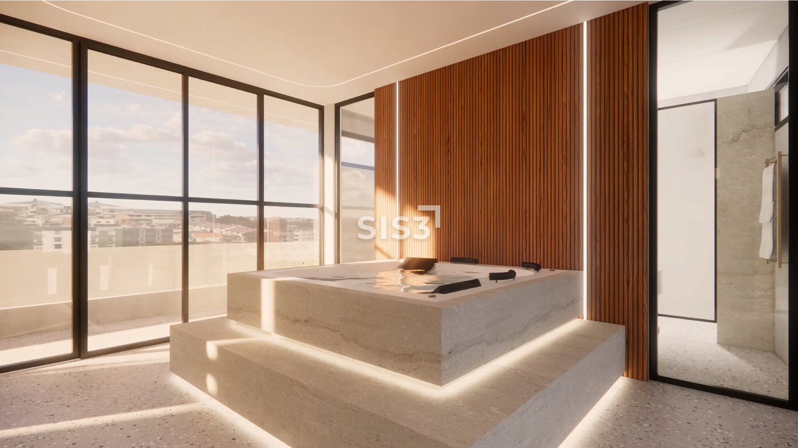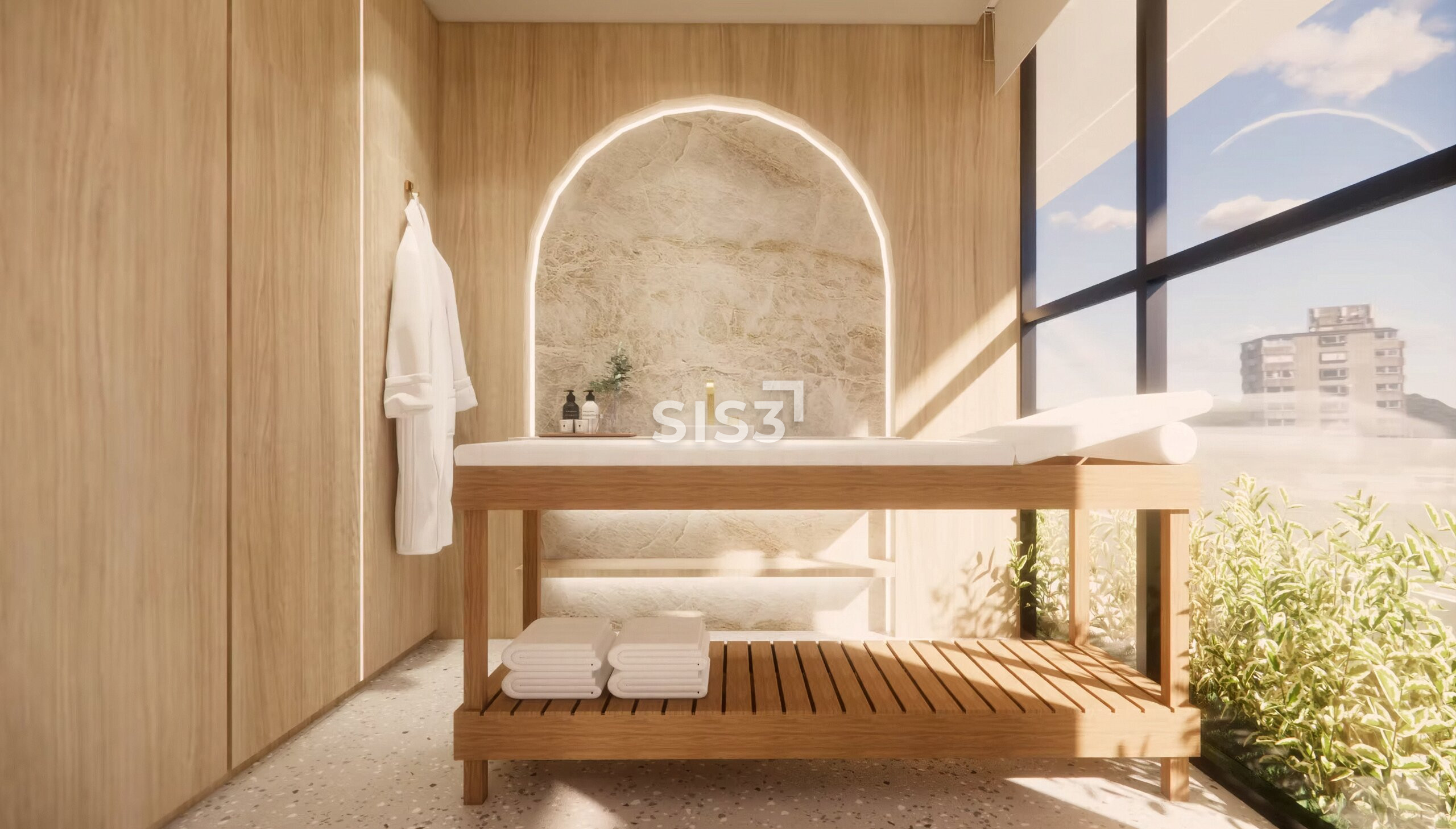 Cada detalhe foi cuidadosamente planejado: iluminação integral em LED, vagas com infraestrutura para carros elétricos, banheiros com acabamento em mármore, nichos embutidos e gesso em todo o teto. As esquadrias de alta performance, os vidros duplos e o aquecimento a gás em todas as torneiras e chuveiros elevam o padrão de conforto térmico e acústico. Há ainda infraestrutura para ar-condicionado, ponto para desembaçador de espelhos e toalheiro elétrico — pequenos gestos de tecnologia que se traduzem em conforto cotidiano.