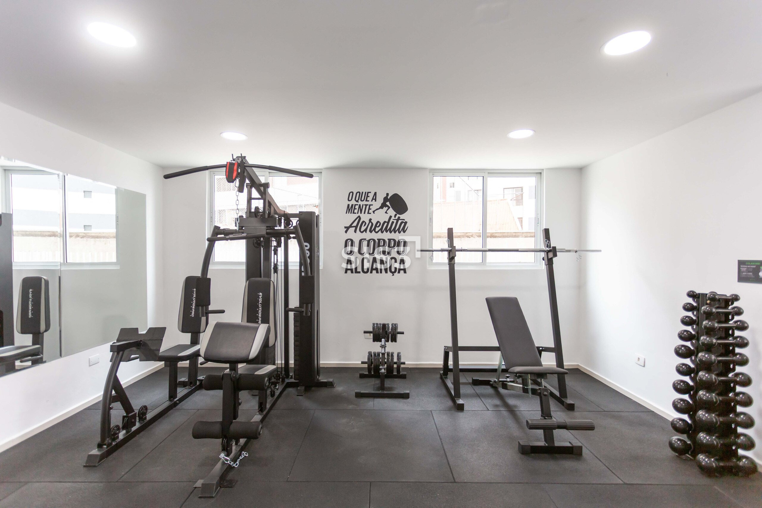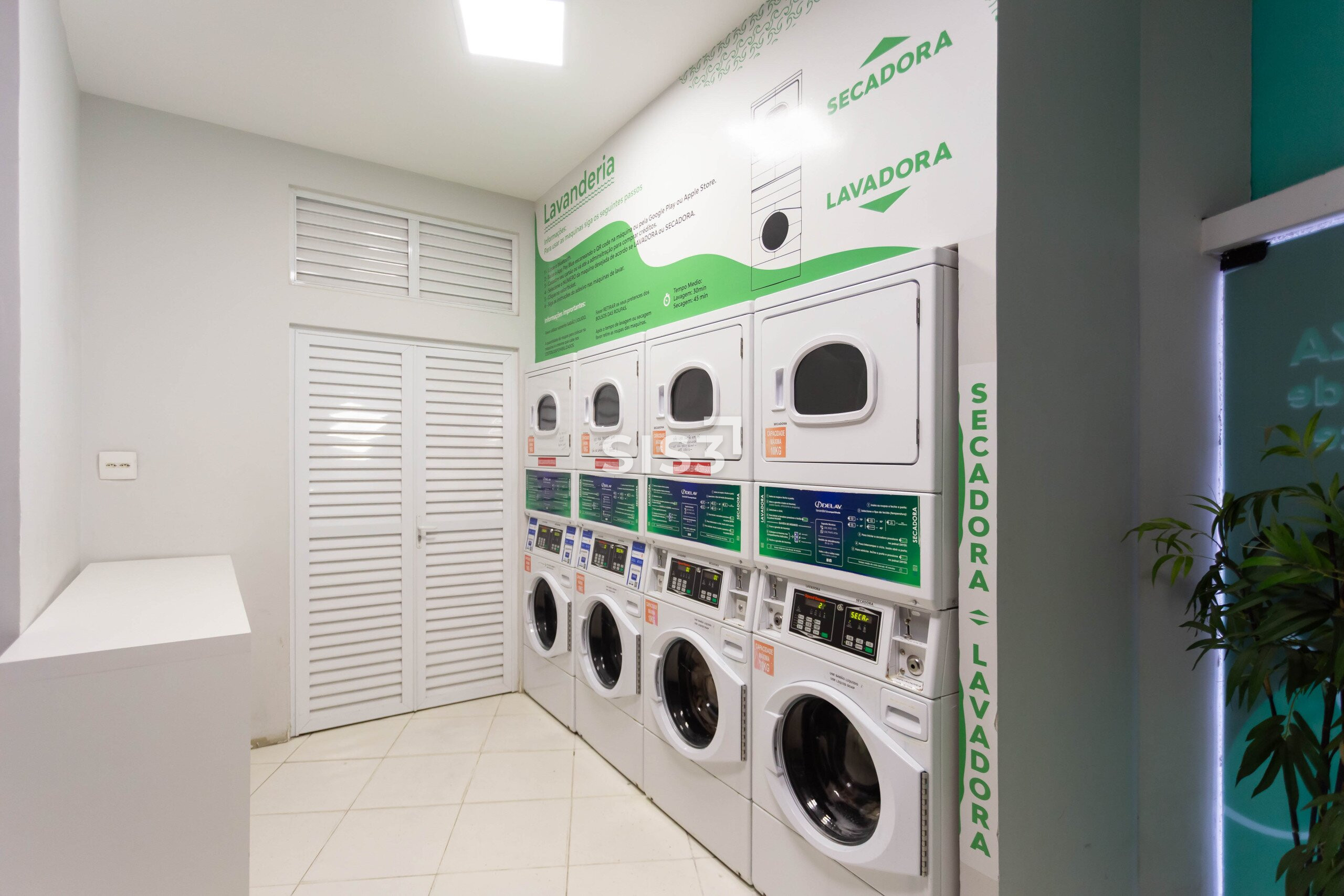 O condomínio oferece uma estrutura completa: portaria 24h, academia, piscina, mercado 24h e lavanderia coletiva.