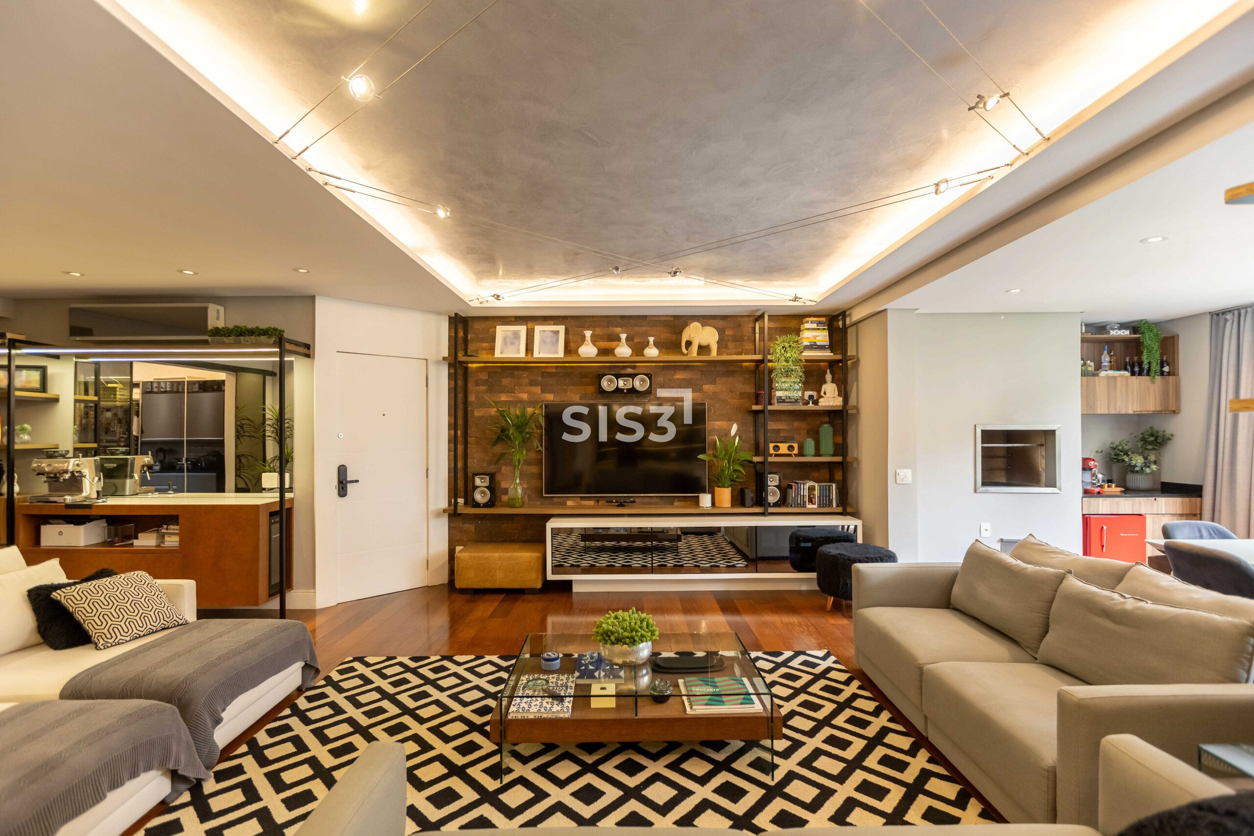Os acabamentos revelam um olhar atento: piso em madeira natural de ipê, projeto de iluminação bem resolvido, gesso e manta acústica em todo o forro, trazendo conforto térmico e acústico no dia a dia.