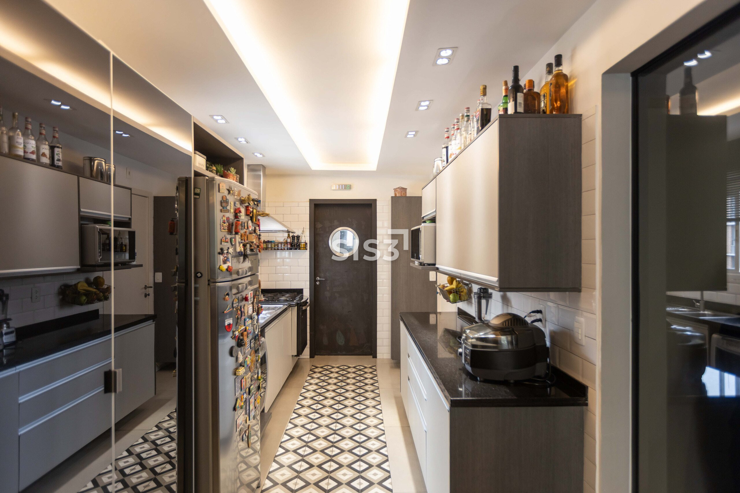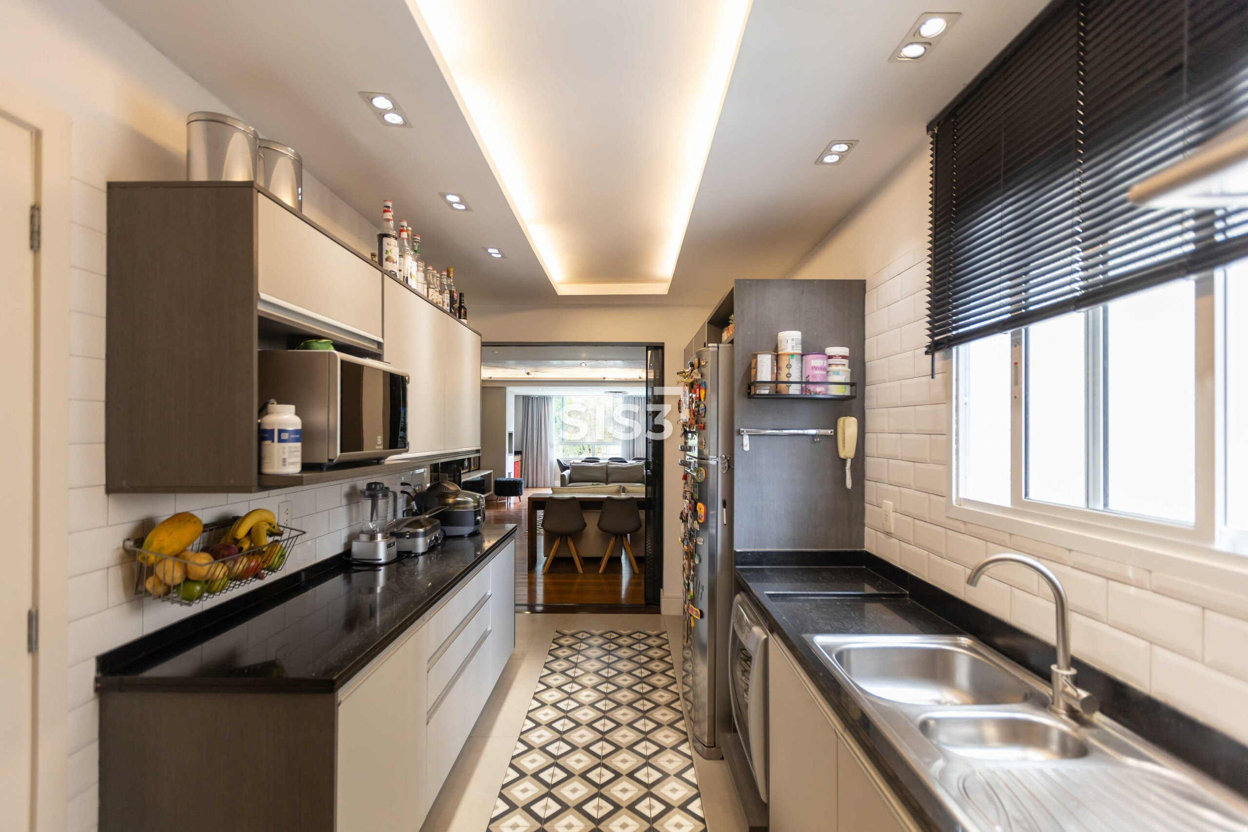 A cozinha e a lavanderia foram completamente renovadas, com mobiliário Florense e marcenaria sob medida, combinando funcionalidade e desenho.