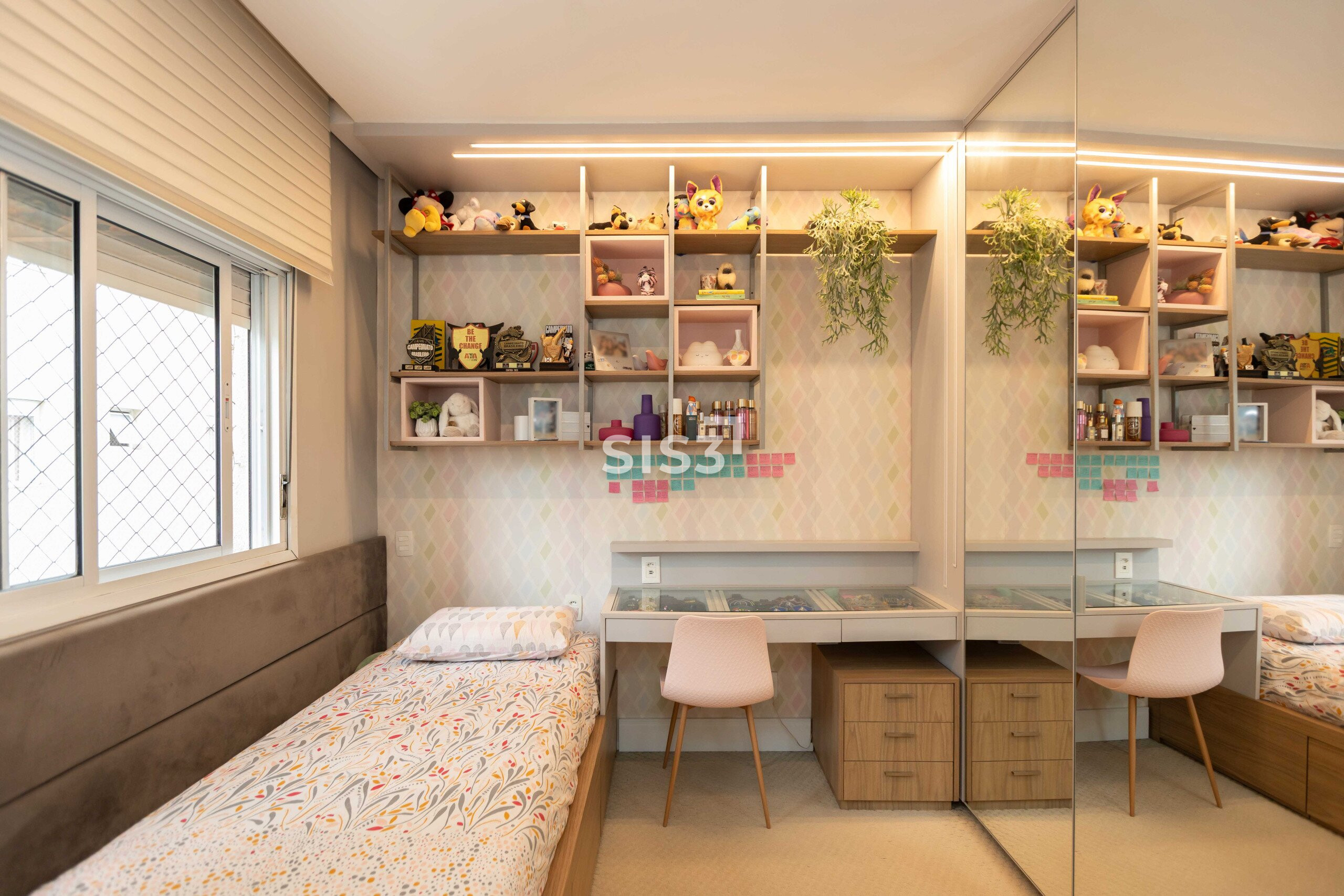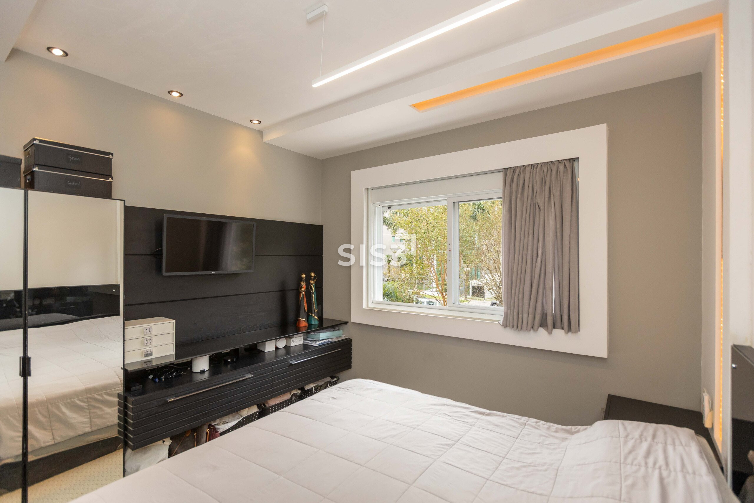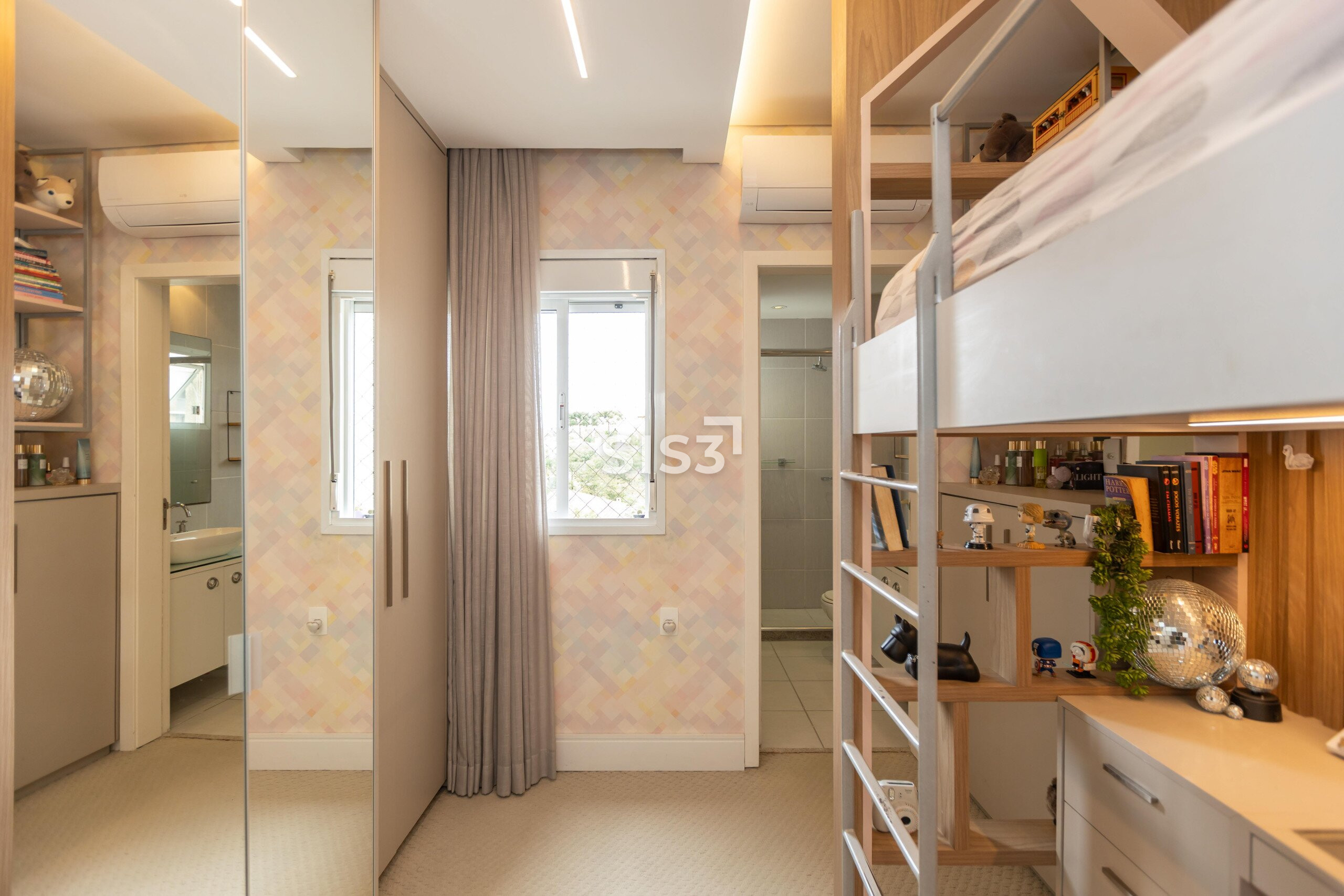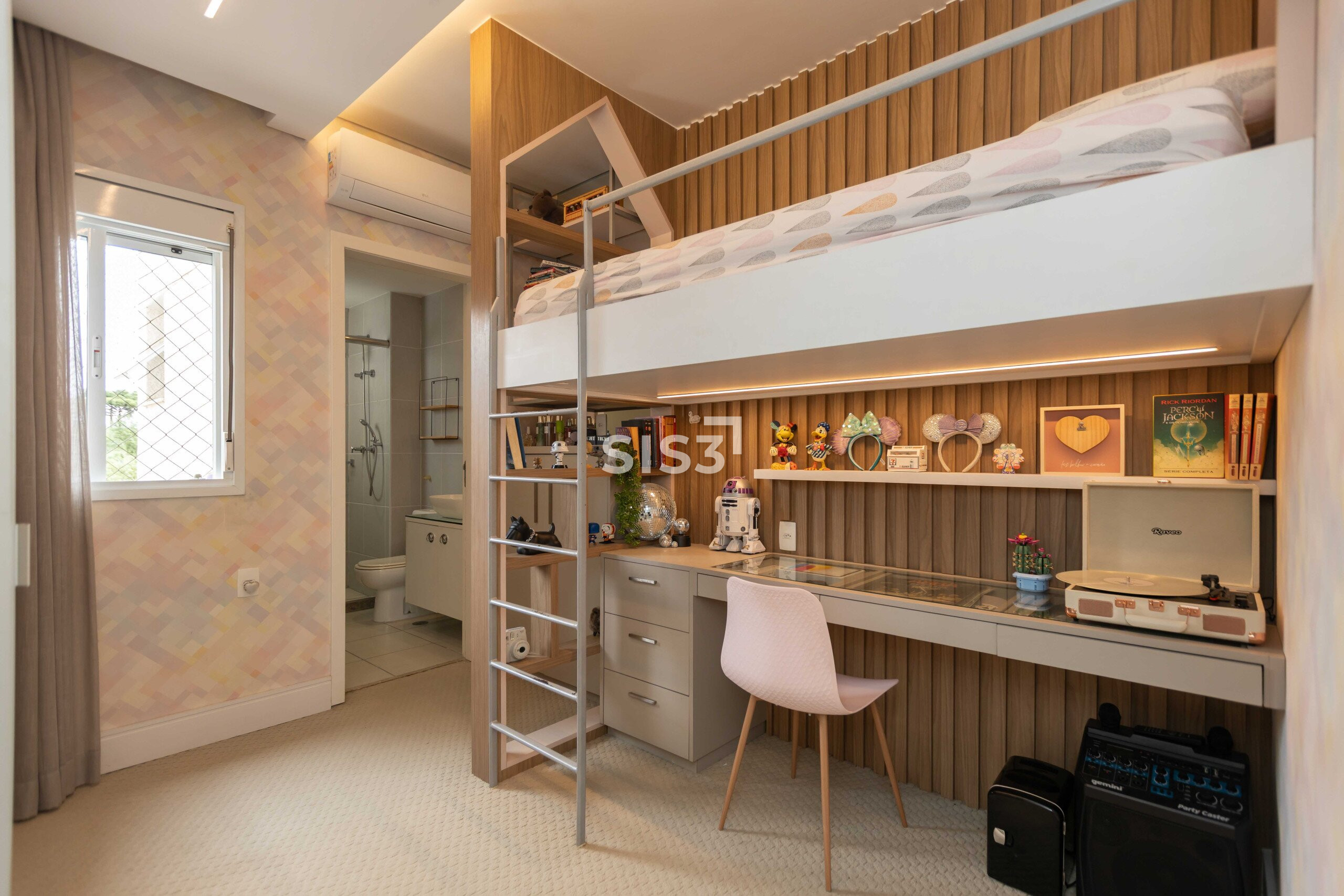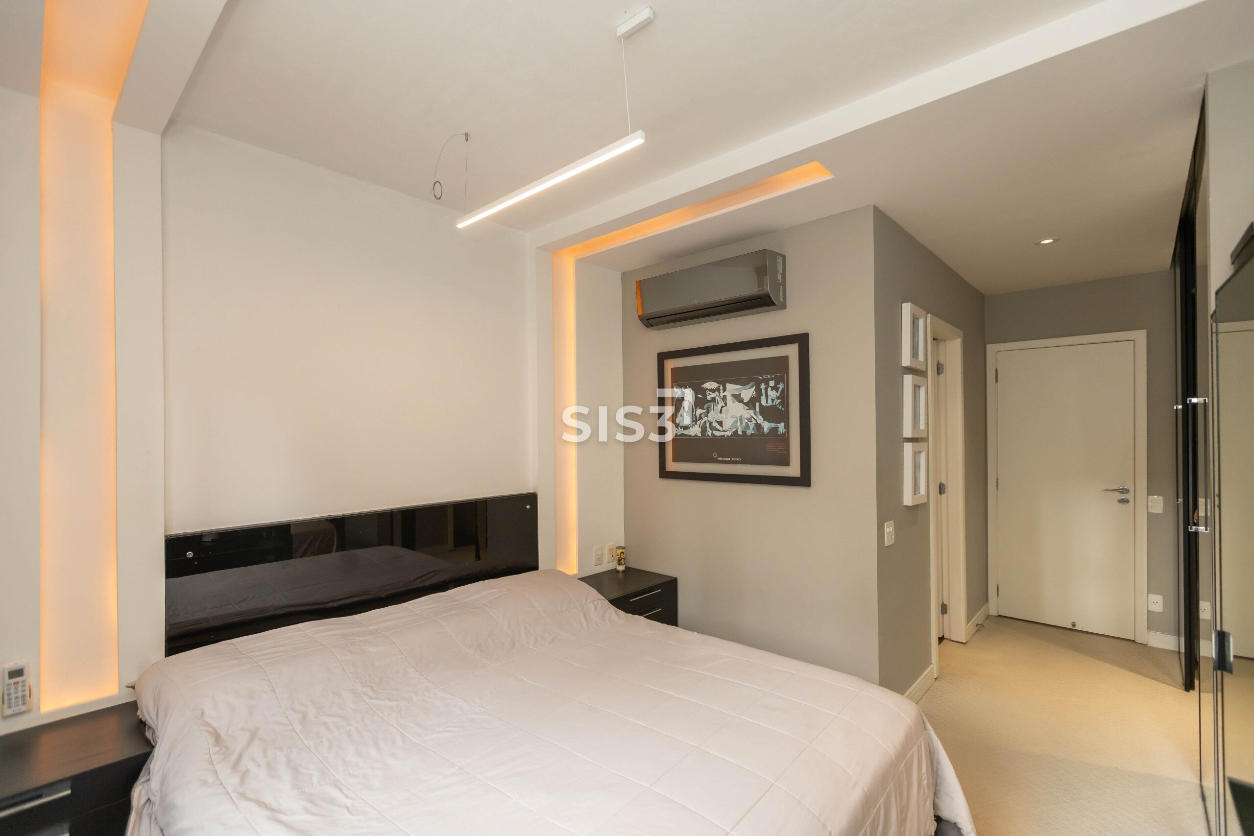 Na área íntima, 3 suítes com ar-condicionado, iluminação planejada e um padrão consistente em todos os ambientes.