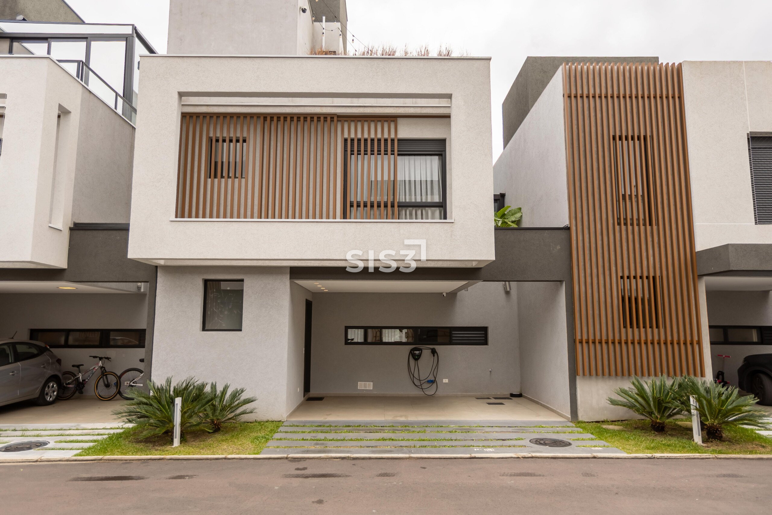 Duas vagas de garagem completam o conjunto.