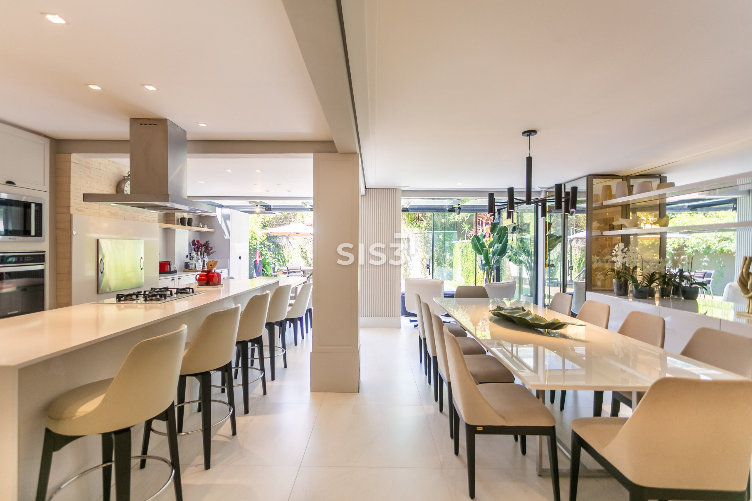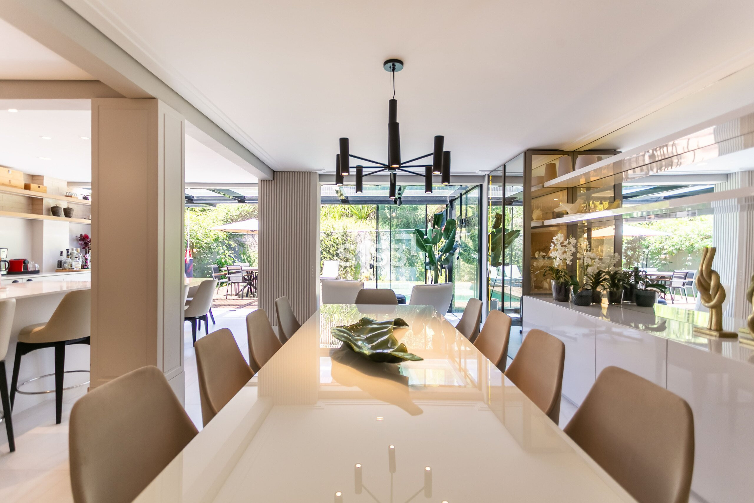 Com 304 m² de área privativa construída em um terreno de 381 m², esta residência no Grand Garden encanta pela integração entre os ambientes e o contato com o exterior.