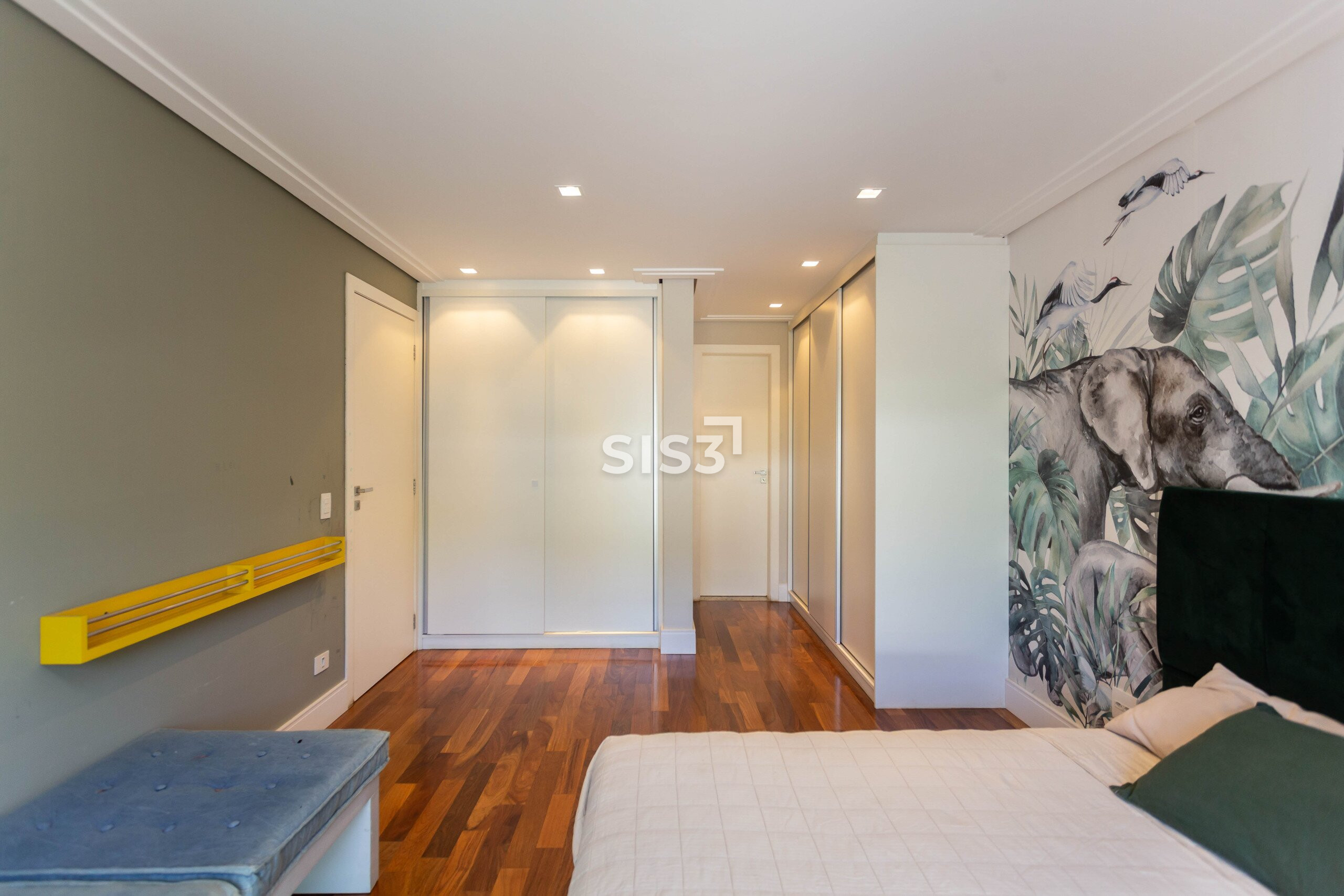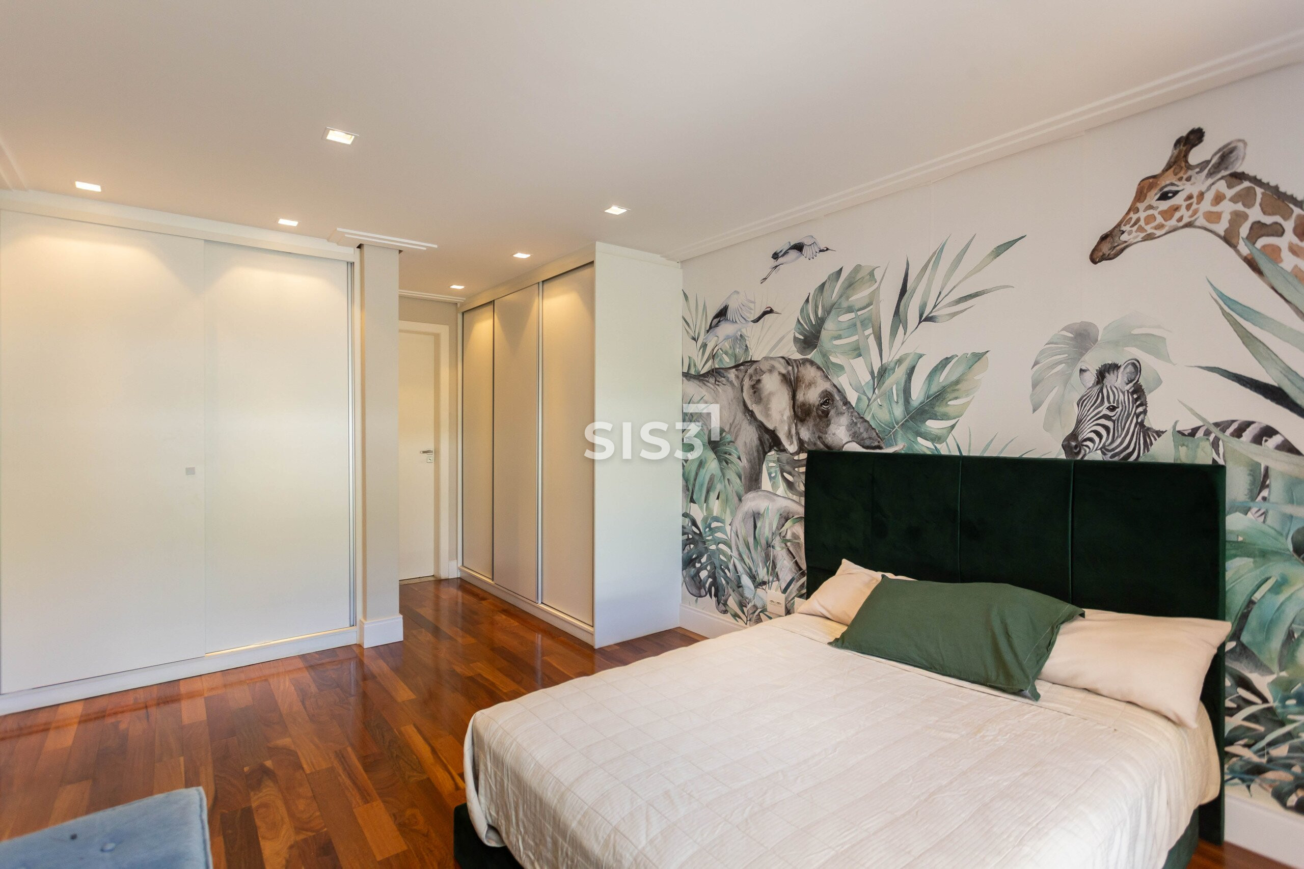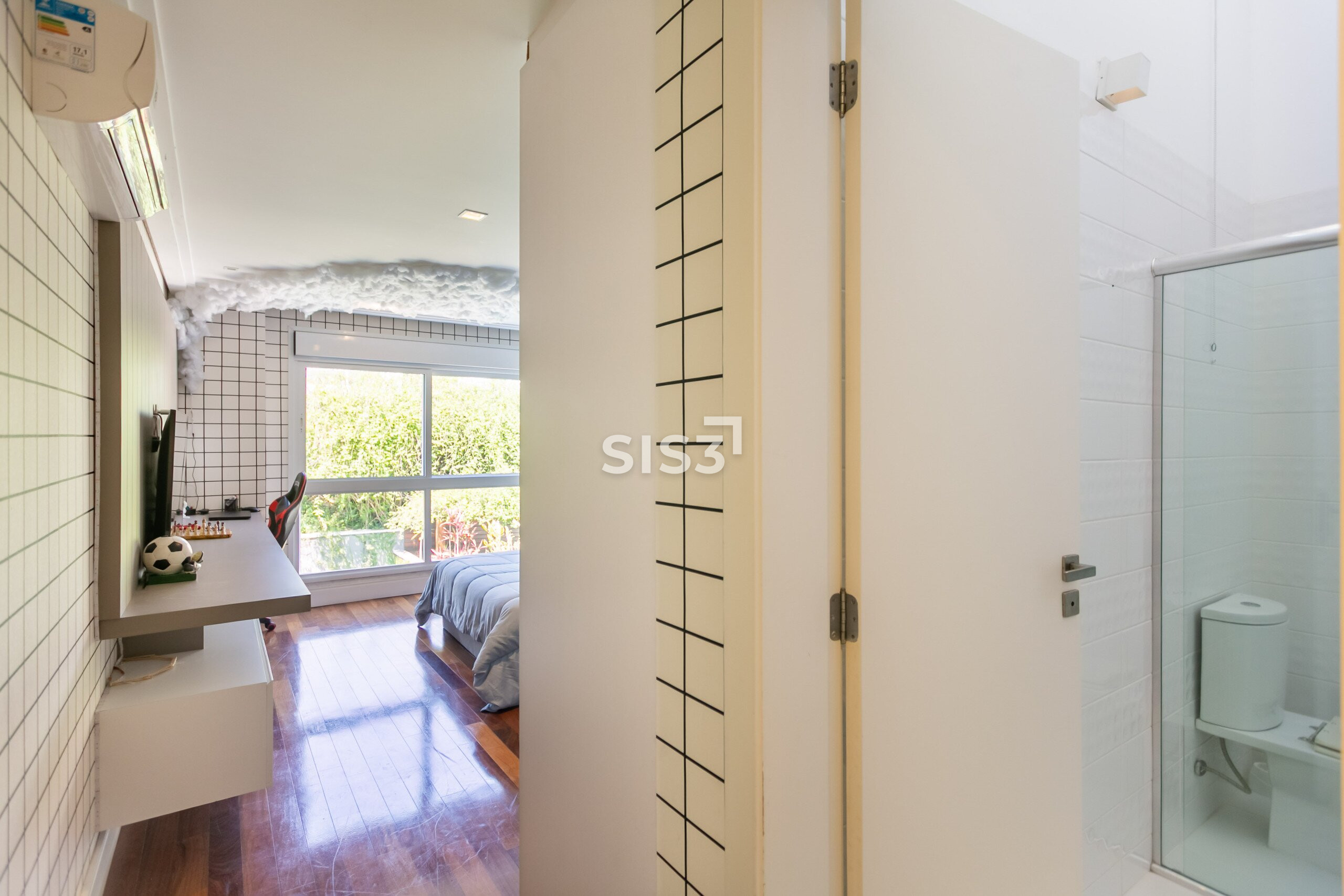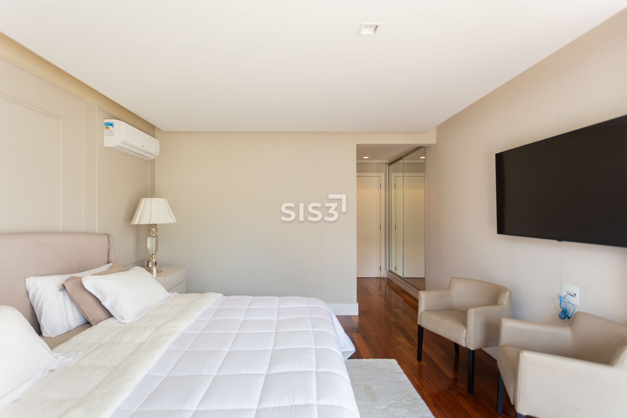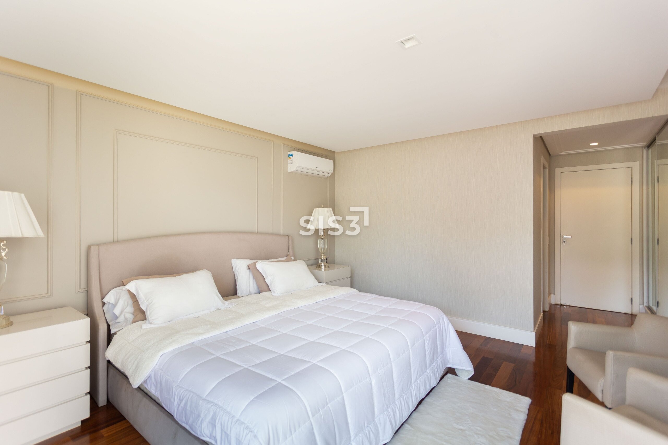 São três suítes, sendo uma master com closet, distribuídas de forma a garantir conforto e privacidade. A lavanderia e os acabamentos revelam o cuidado em cada detalhe do projeto.