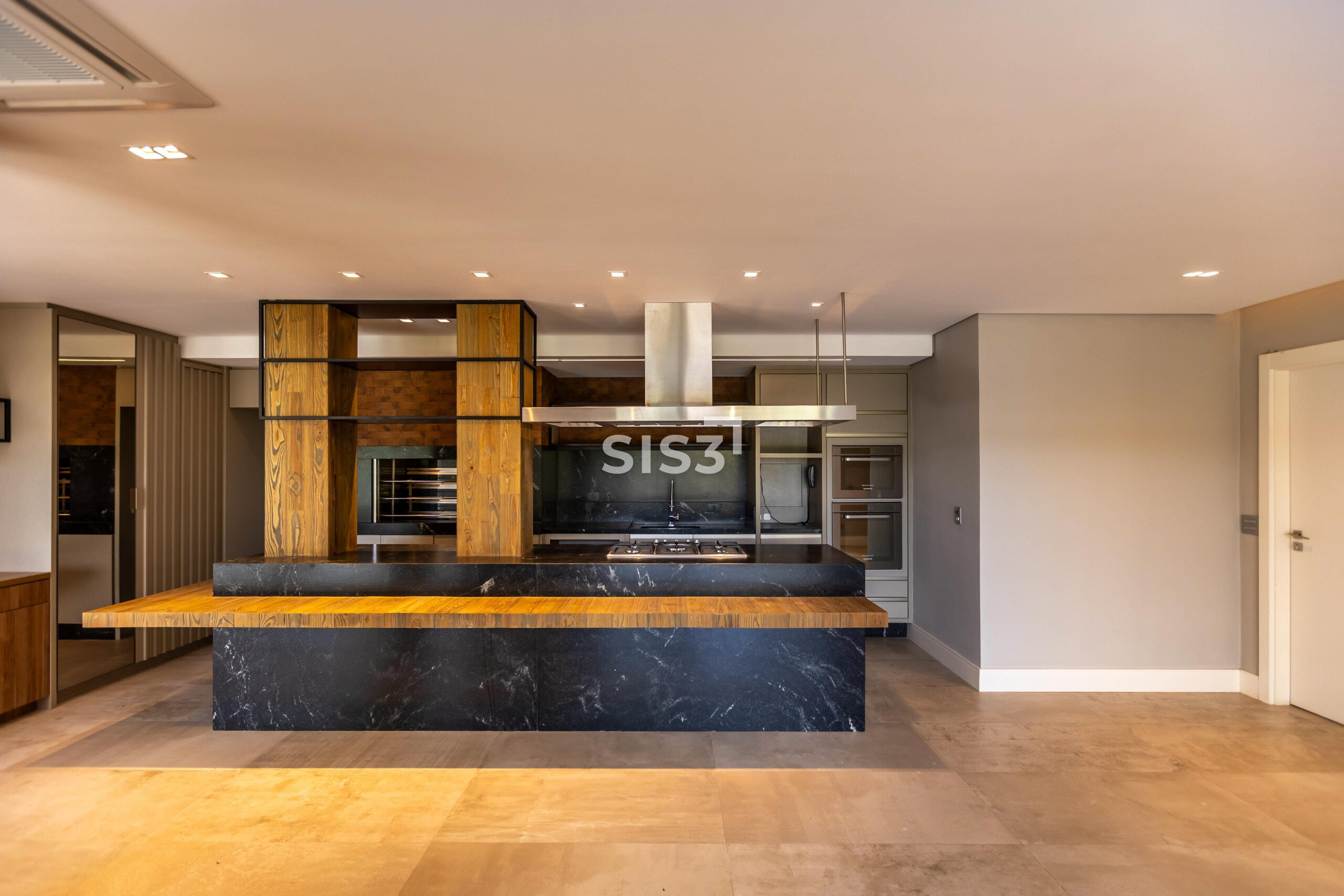 Com 558 m² privativos, a casa se distribui em três pavimentos e se abre para um amplo jardim, criando uma atmosfera acolhedora e integrada aos espaços externos.