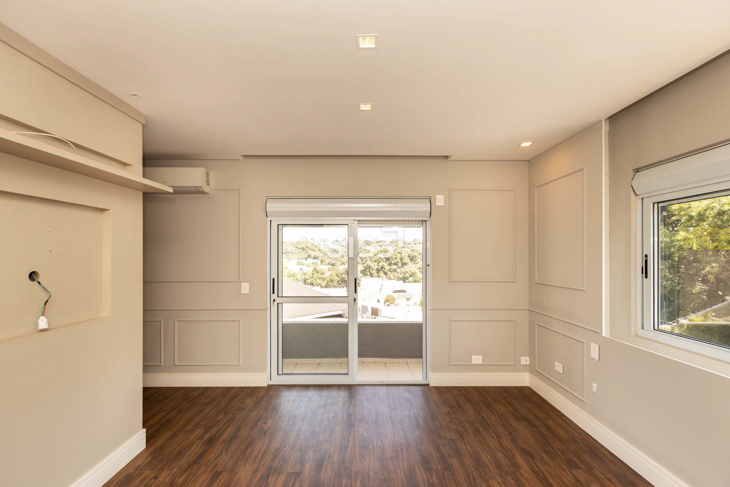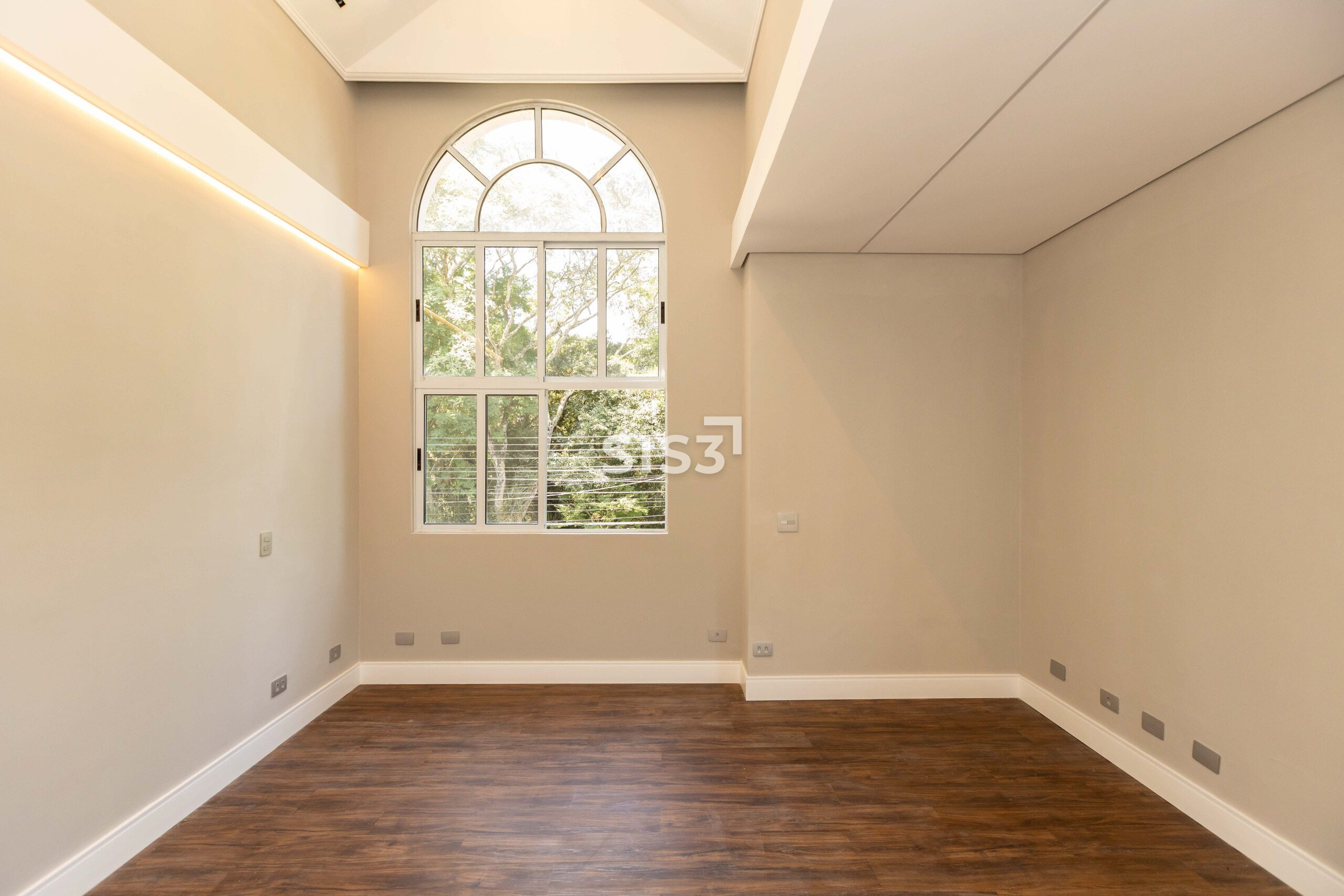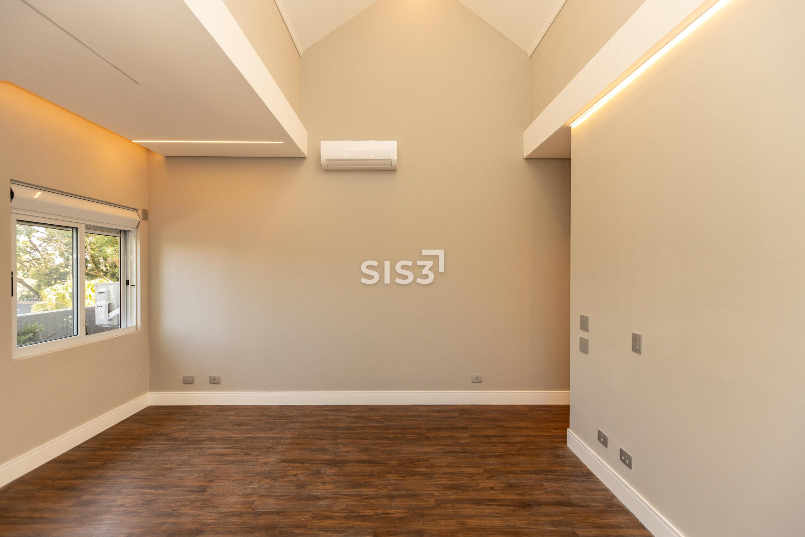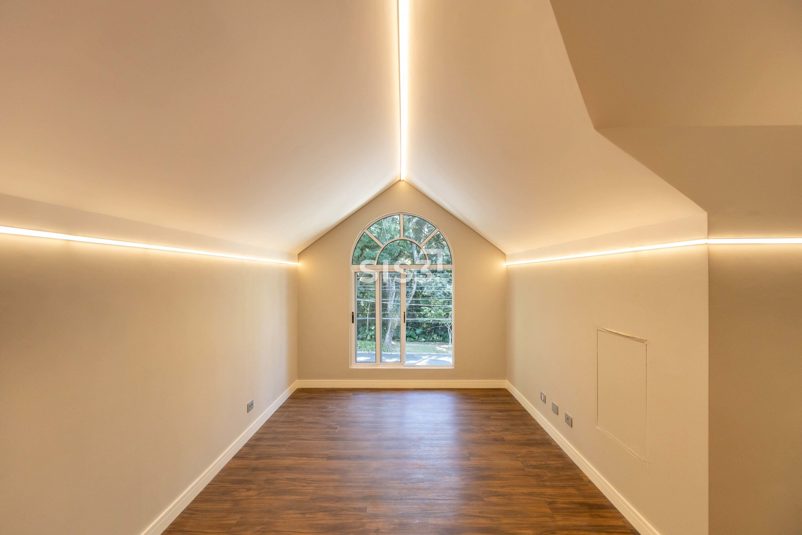 O terceiro pavimento abriga um amplo ático com sala de TV climatizada e banheiro, ideal como espaço de convivência, home cinema ou área de descanso.