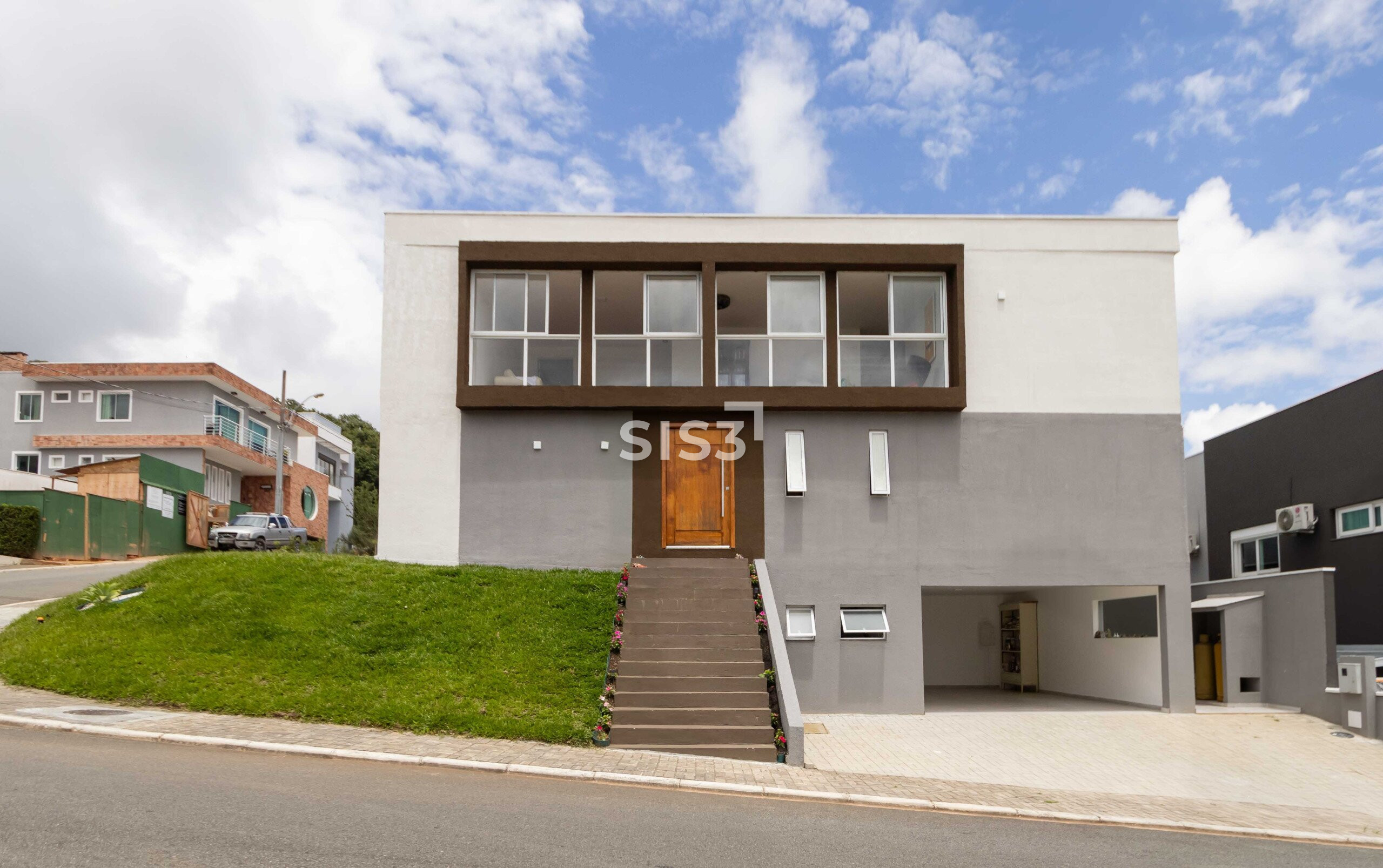 No segundo pavimento, a sala intima, uma suíte master e uma demi suíte.