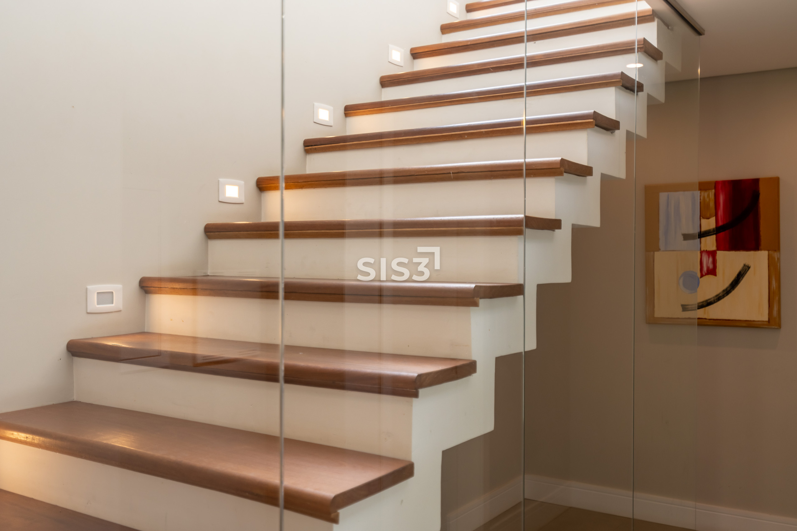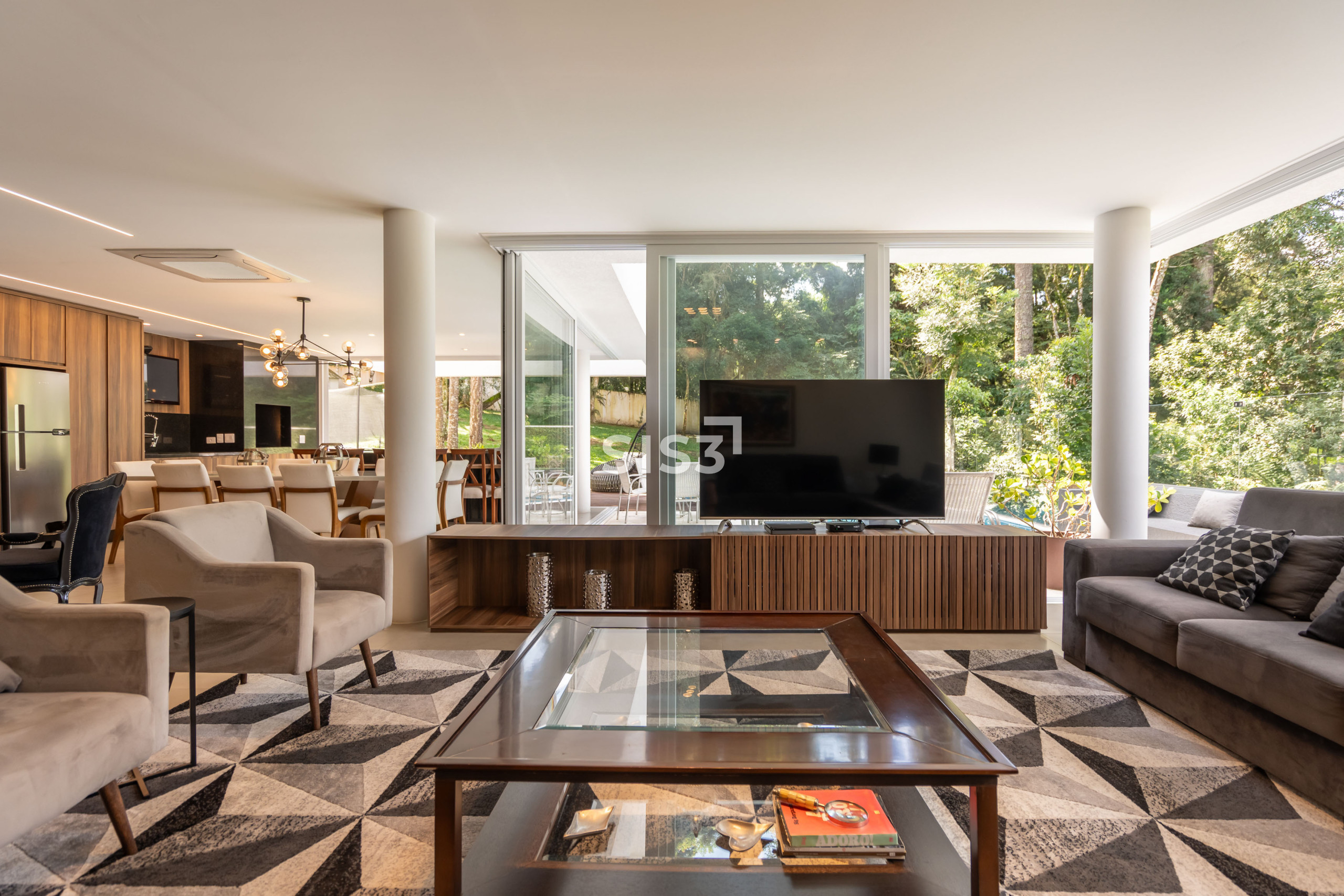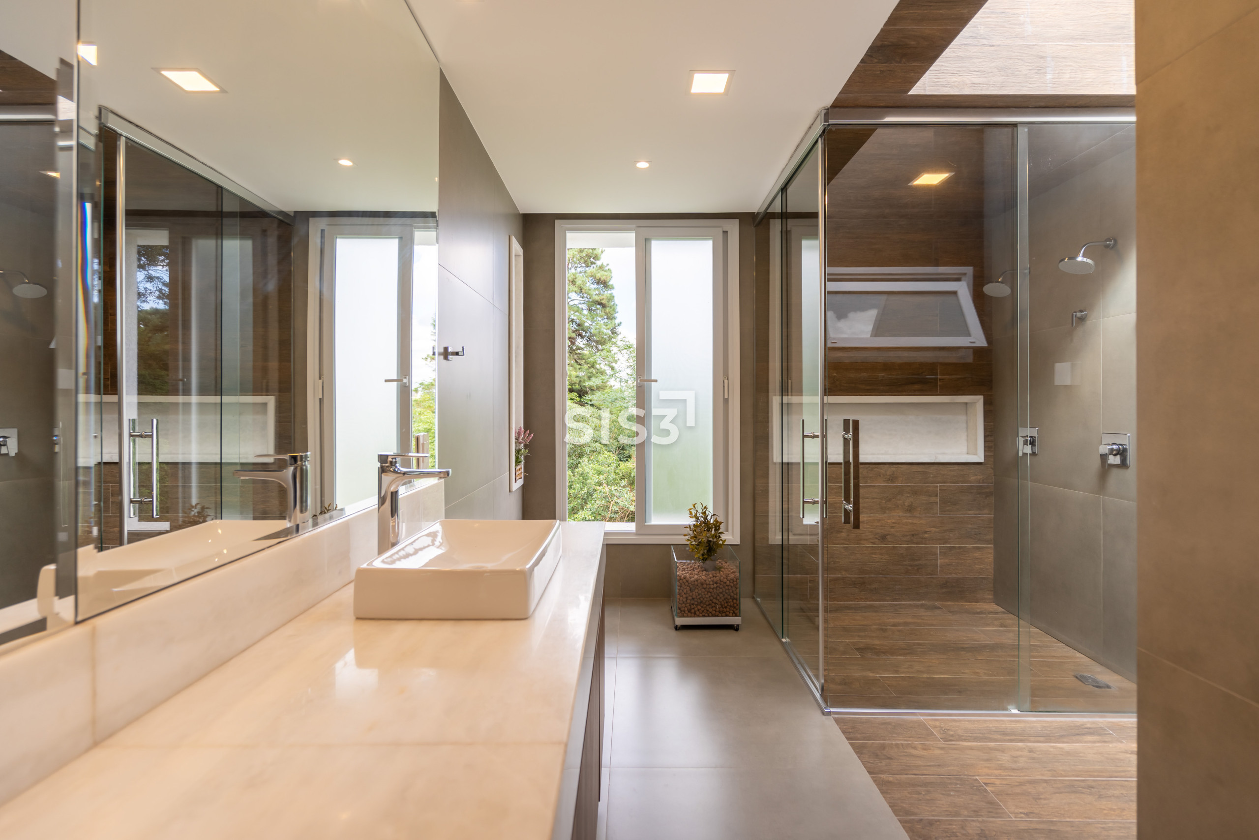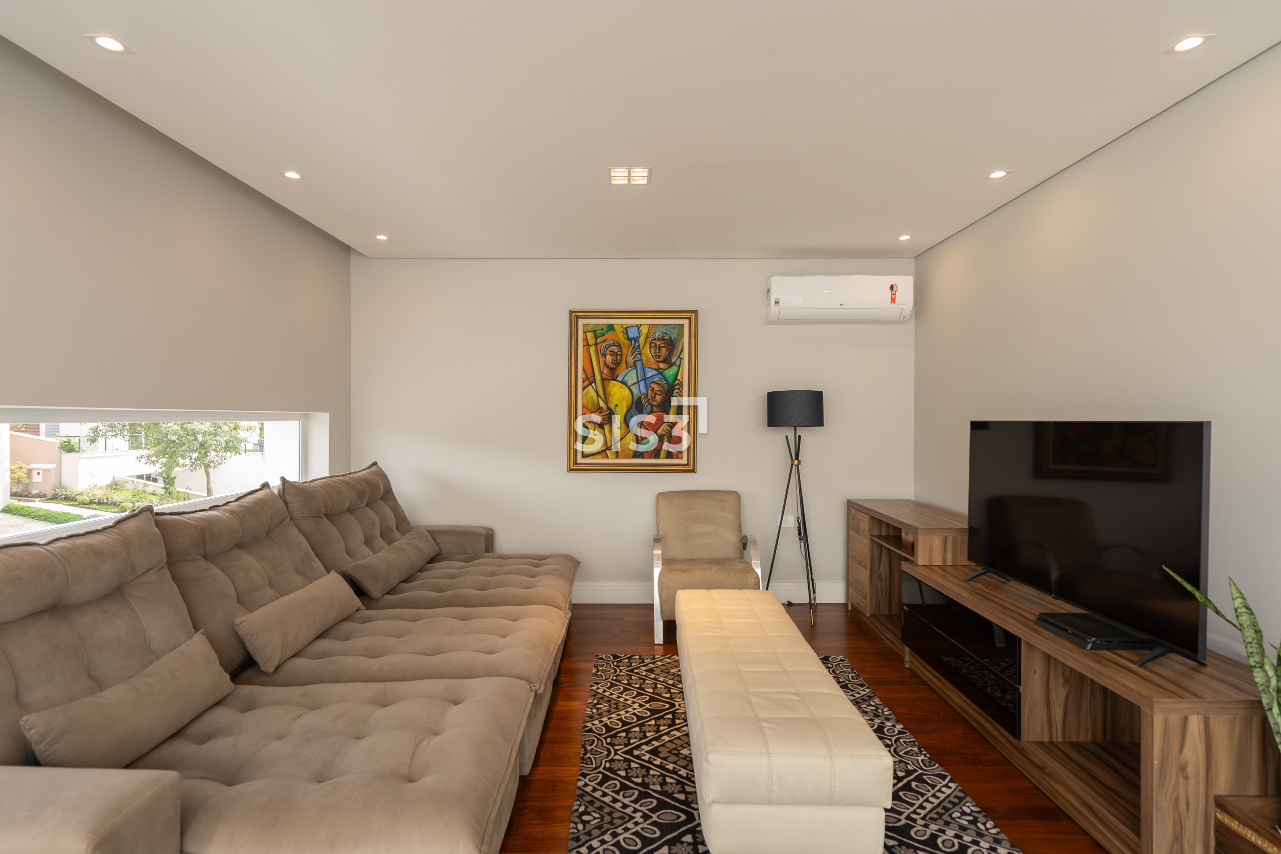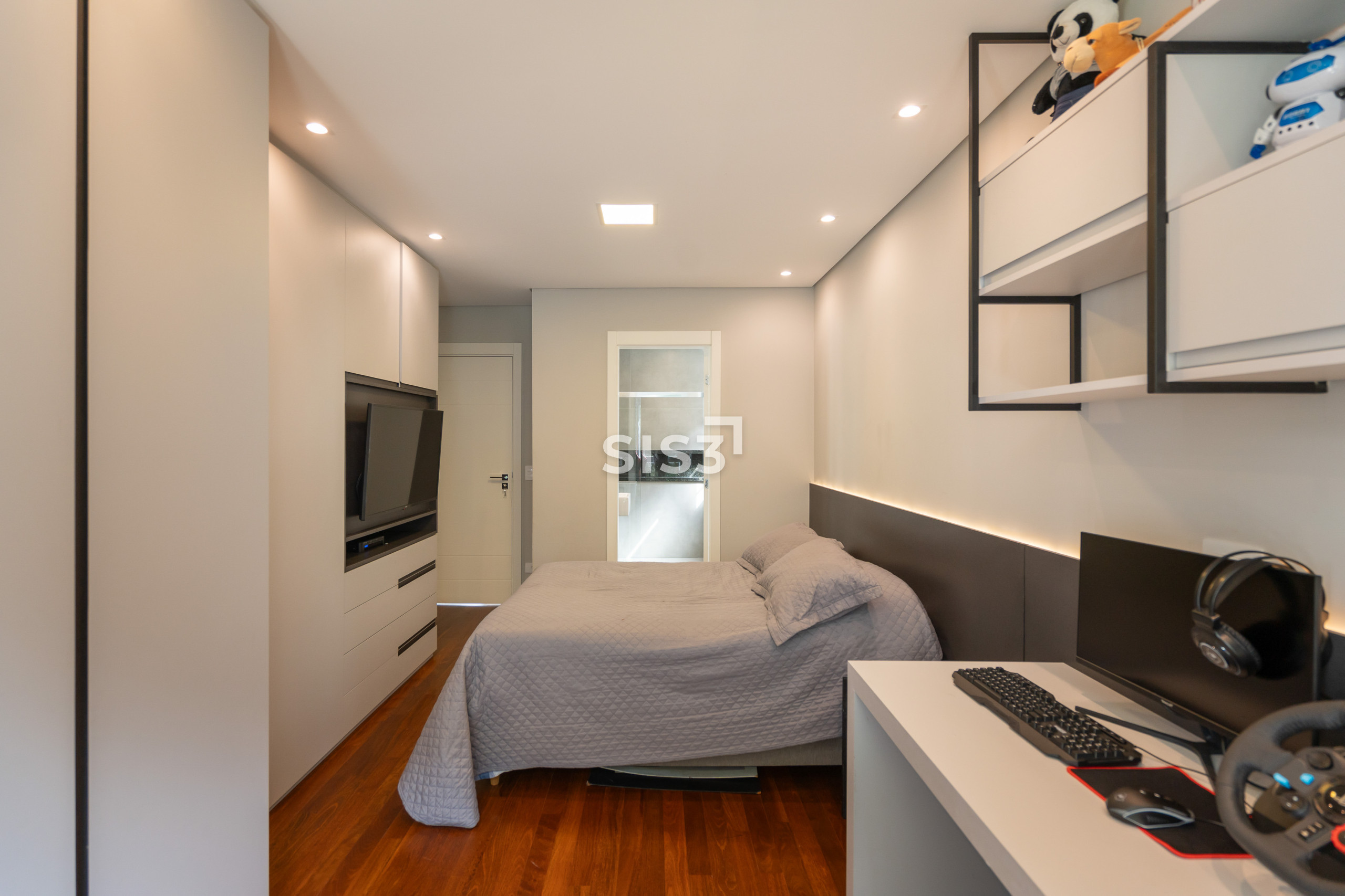 No segundo pavimento são 4 suítes, com persianas automatizadas, armários em marcenaria, uma sala íntima super acolhedora e ar condicionado presente em todos ambientes. Aqui o destaque é a vista de todos os cômodos para muito verde.