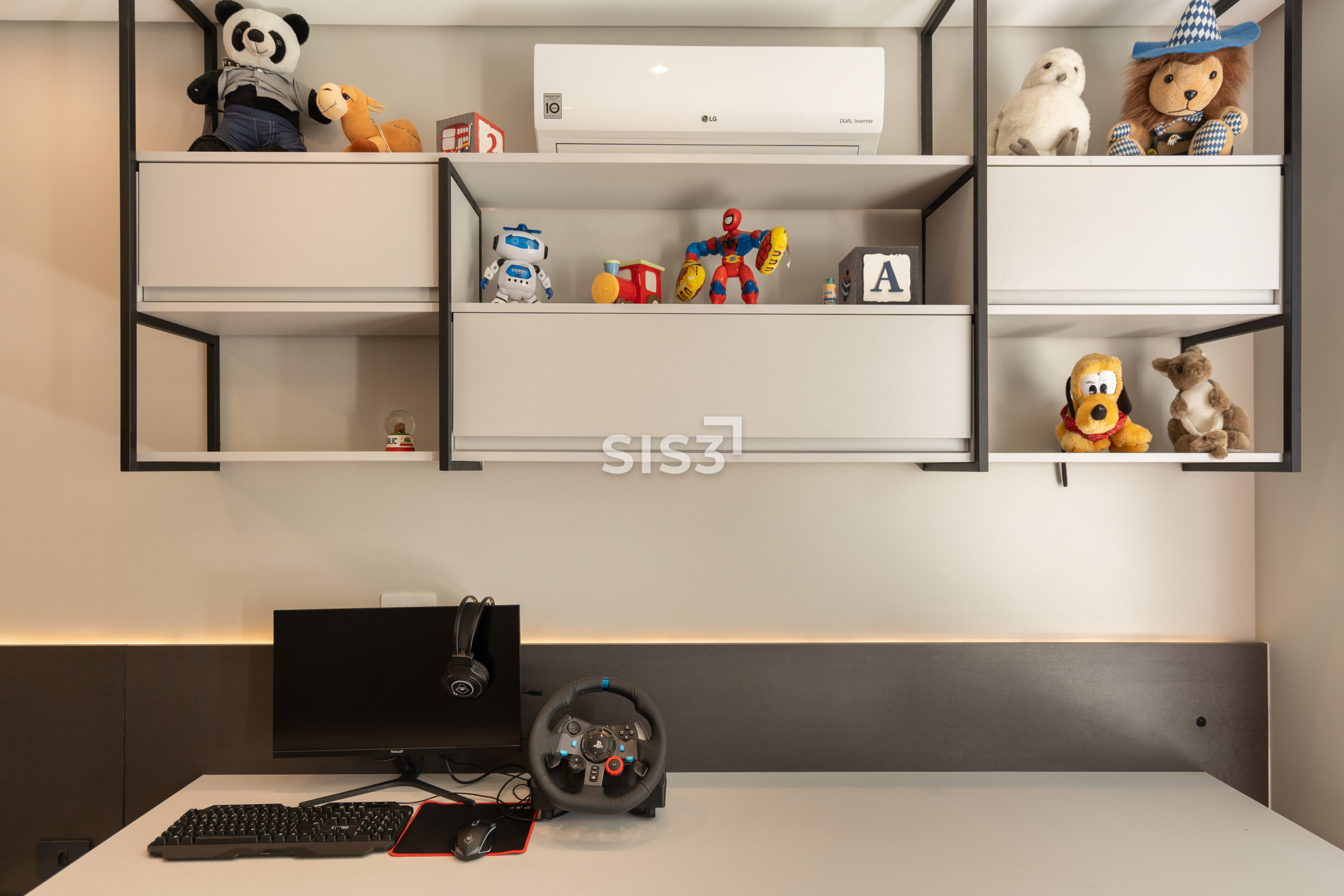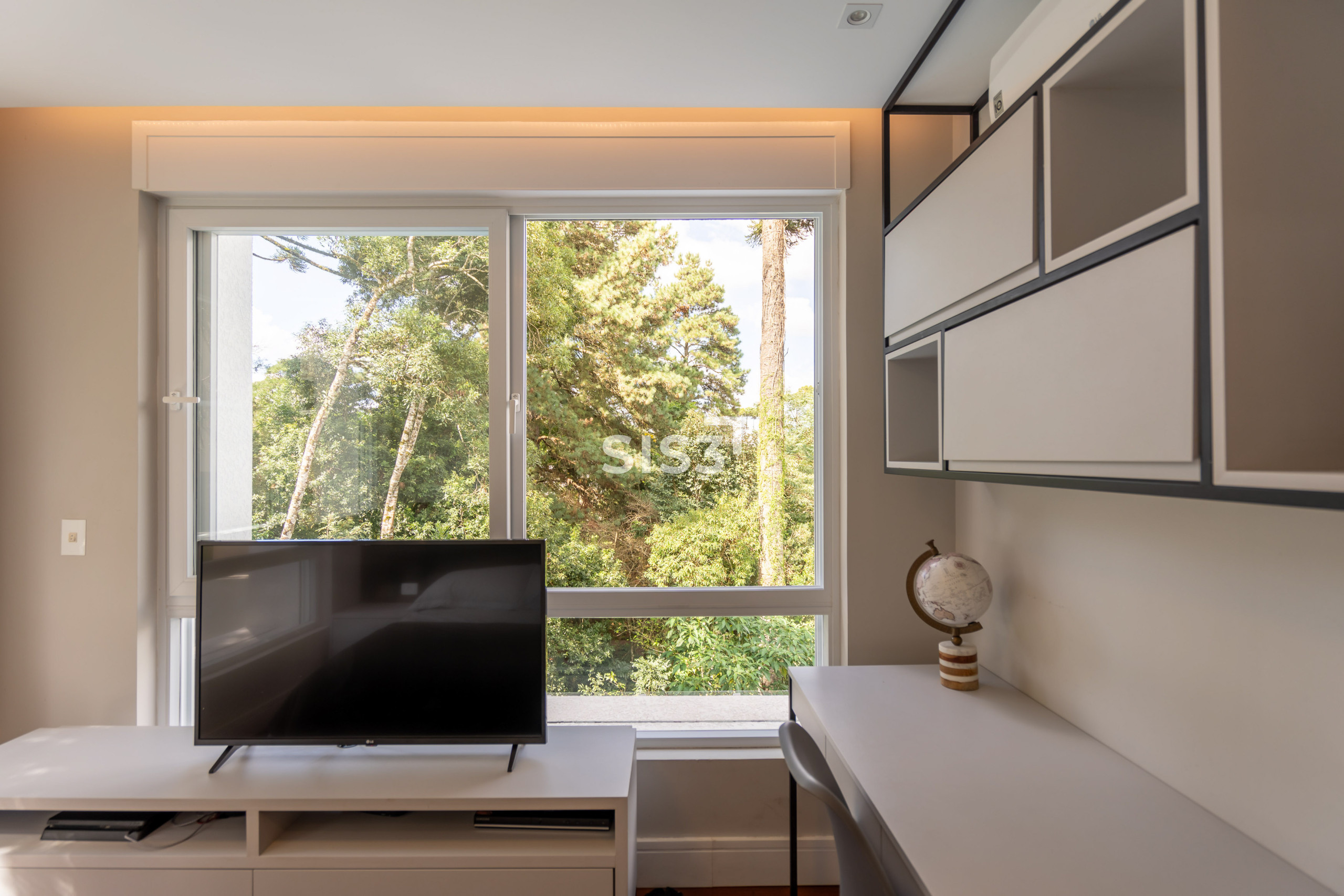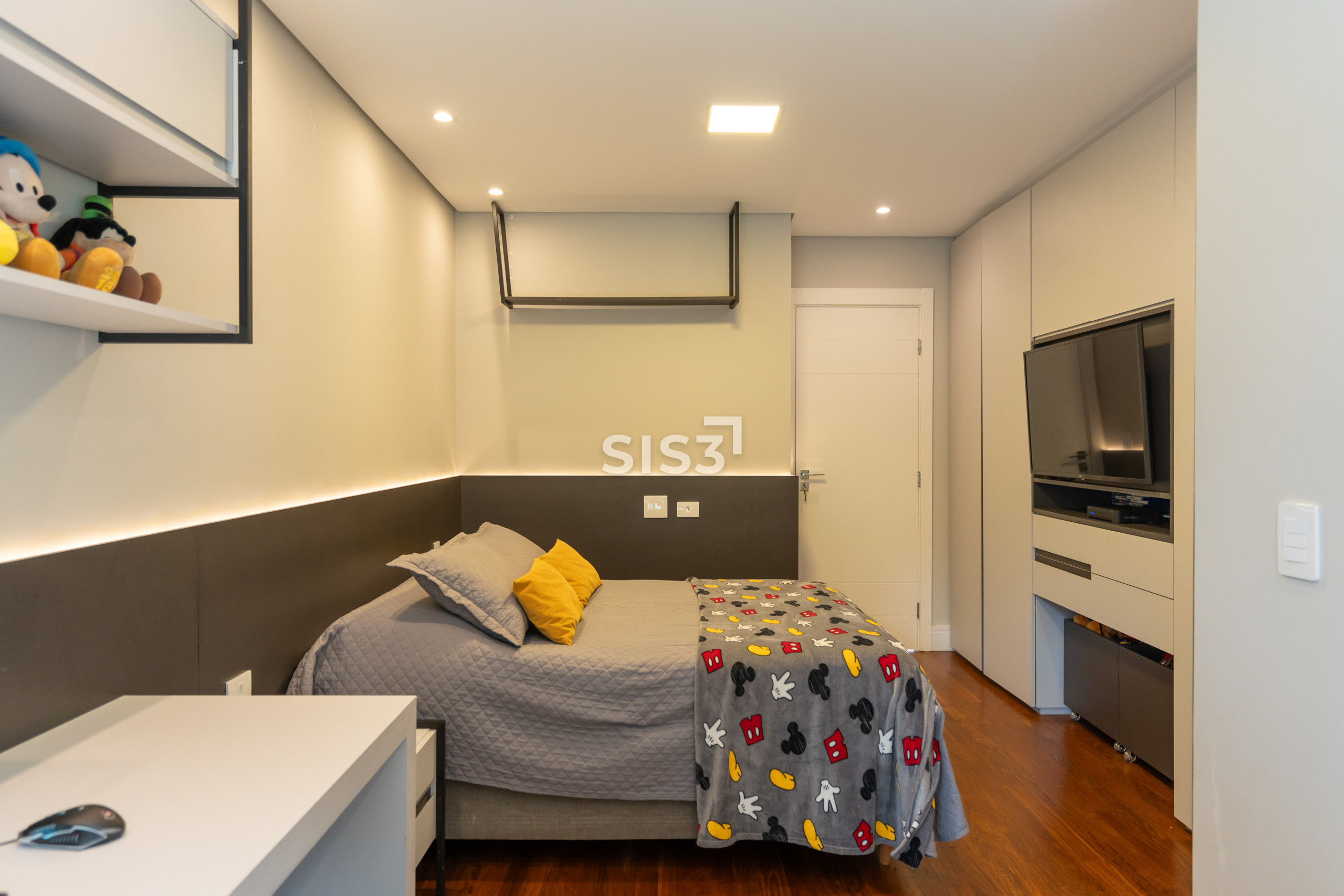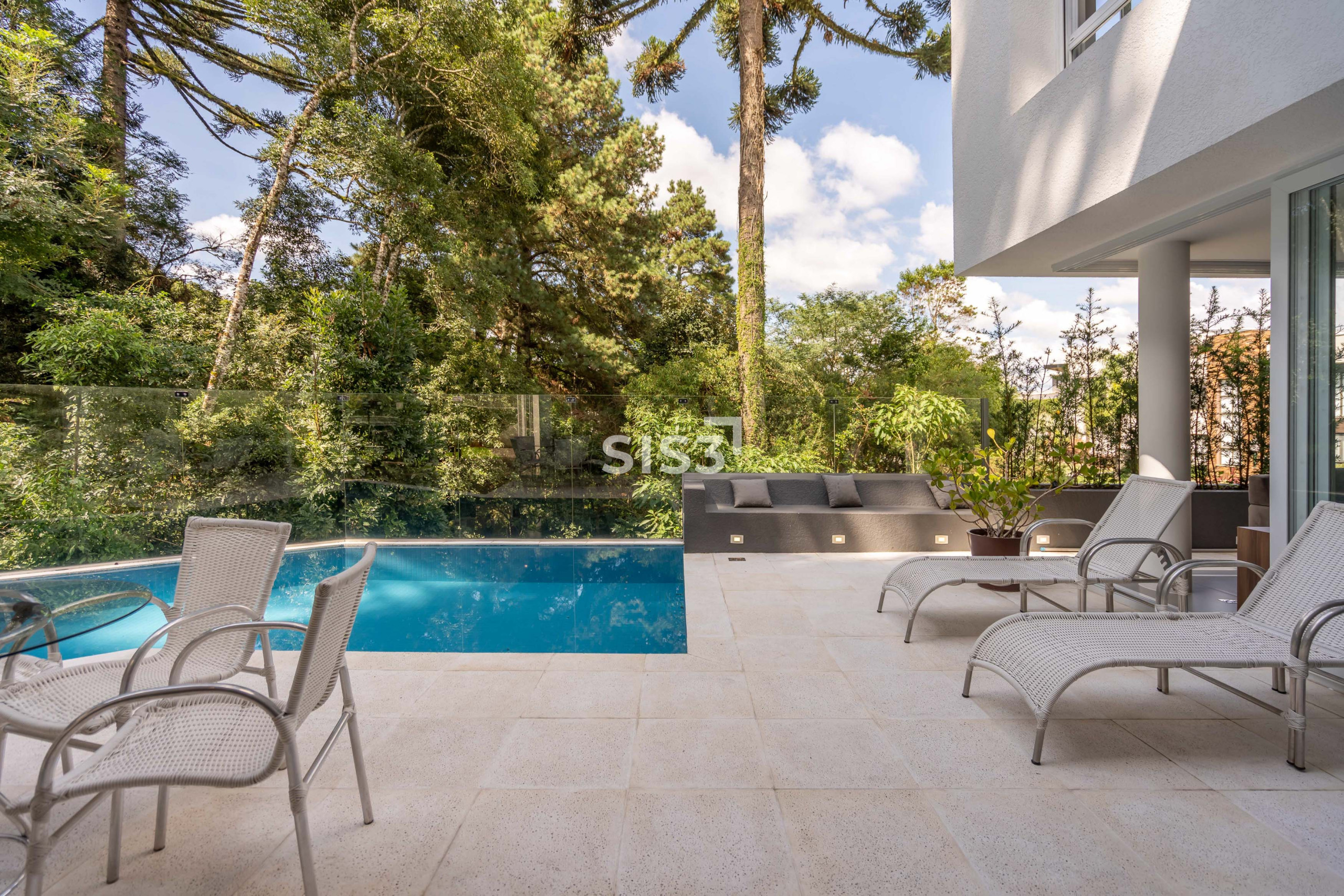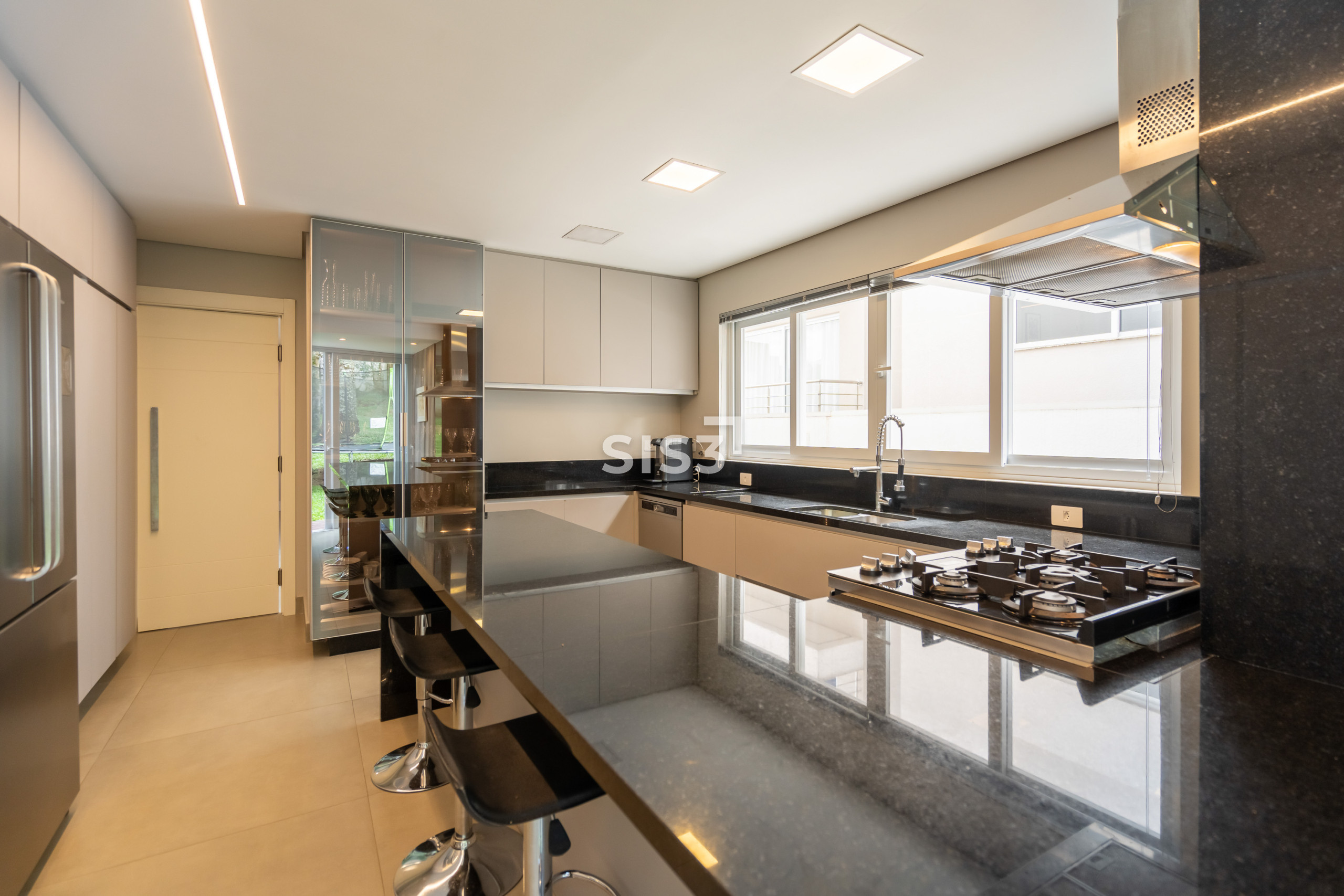 No segundo pavimento são 4 suítes, com persianas automatizadas, armários em marcenaria, uma sala íntima super acolhedora e ar condicionado presente em todos ambientes. Aqui o destaque é a vista de todos os cômodos para muito verde.