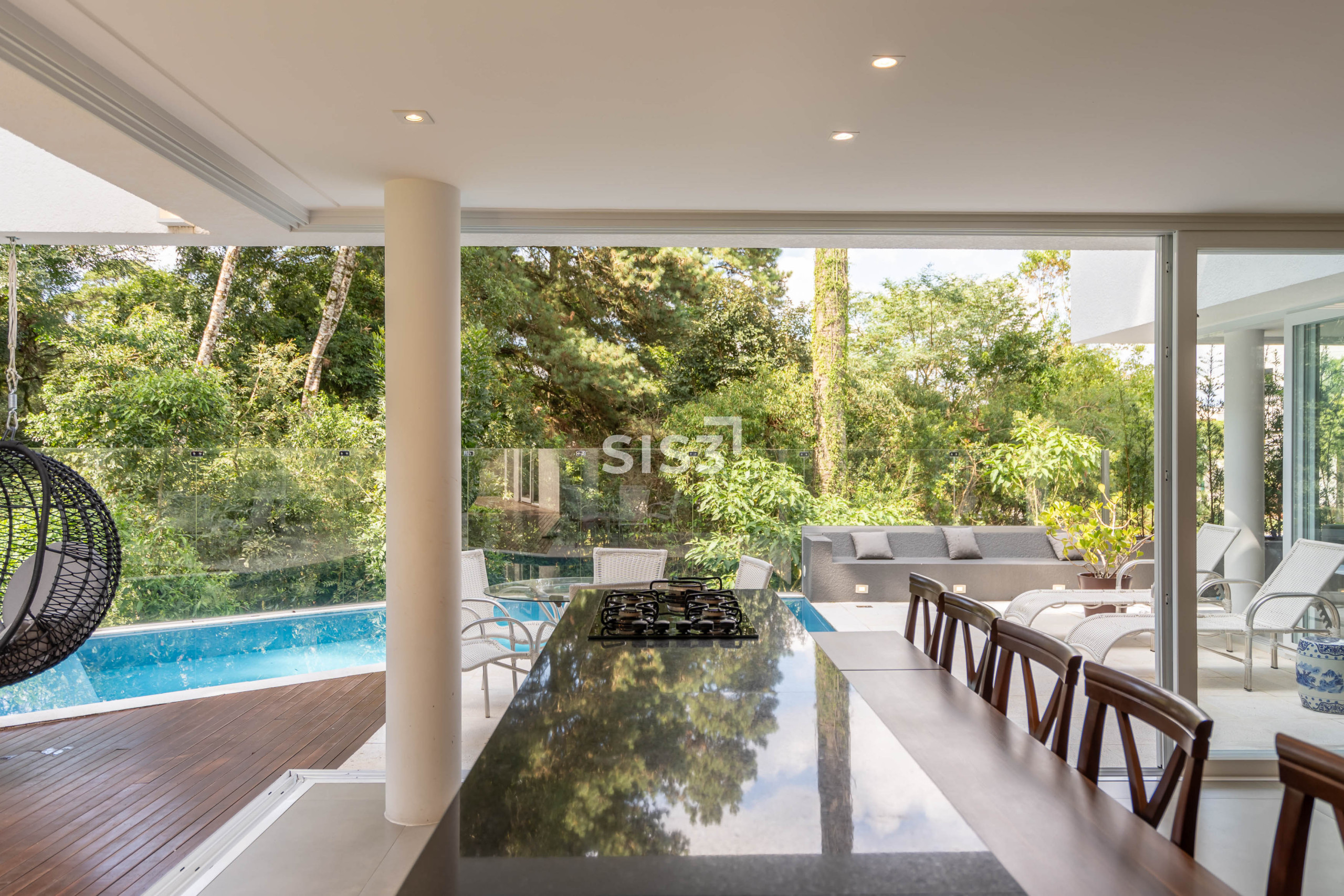 Uma casa deliciosa arquitetada pelo Studio MG2 onde sala de estar, jantar, espaço gourmet com churrasqueira se integram a área externa com muita natureza e uma piscina com aquecimemto solar. Aqui cria-se uma atmosfera com muito requinte e sofisticação para receber familiares e amigos.