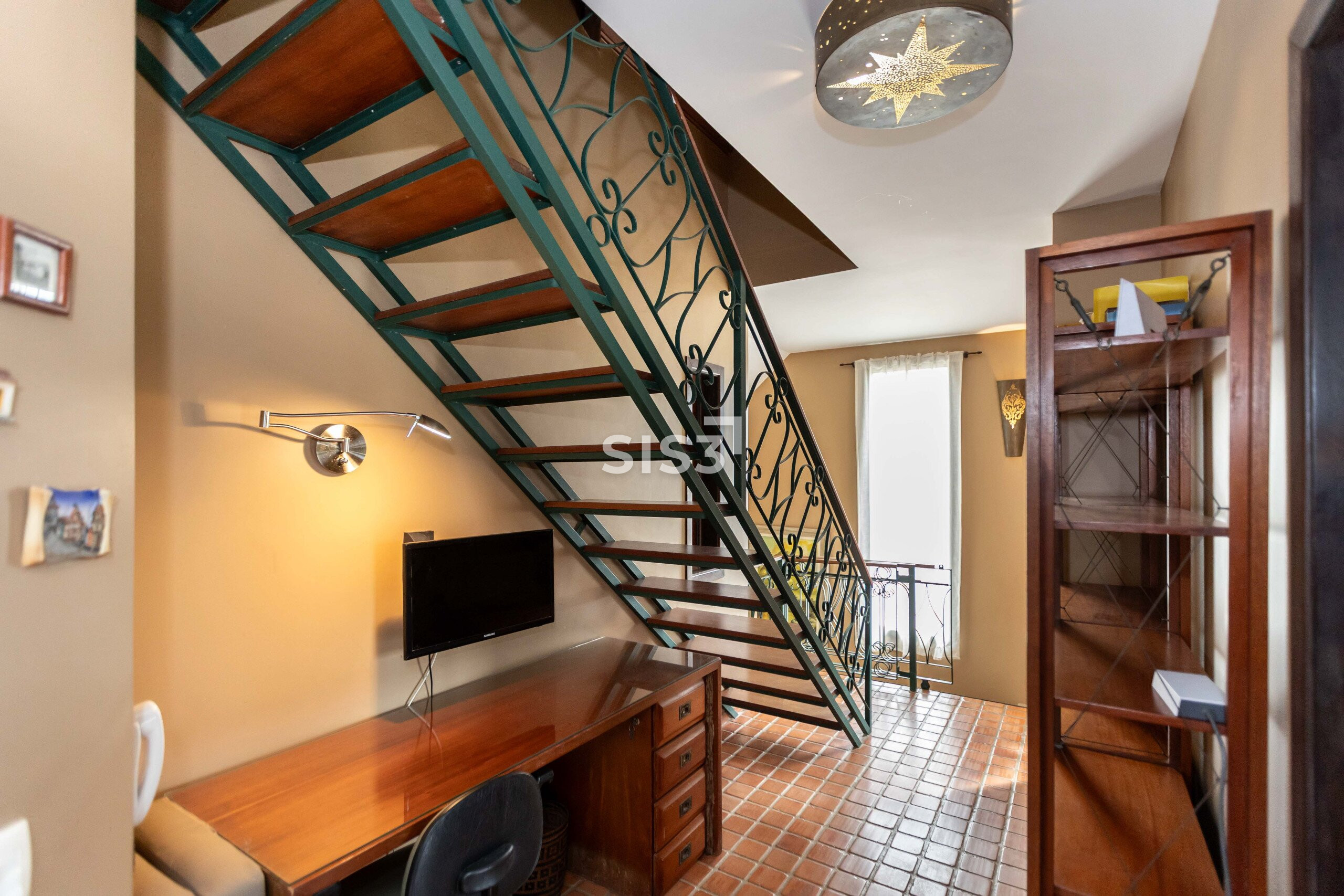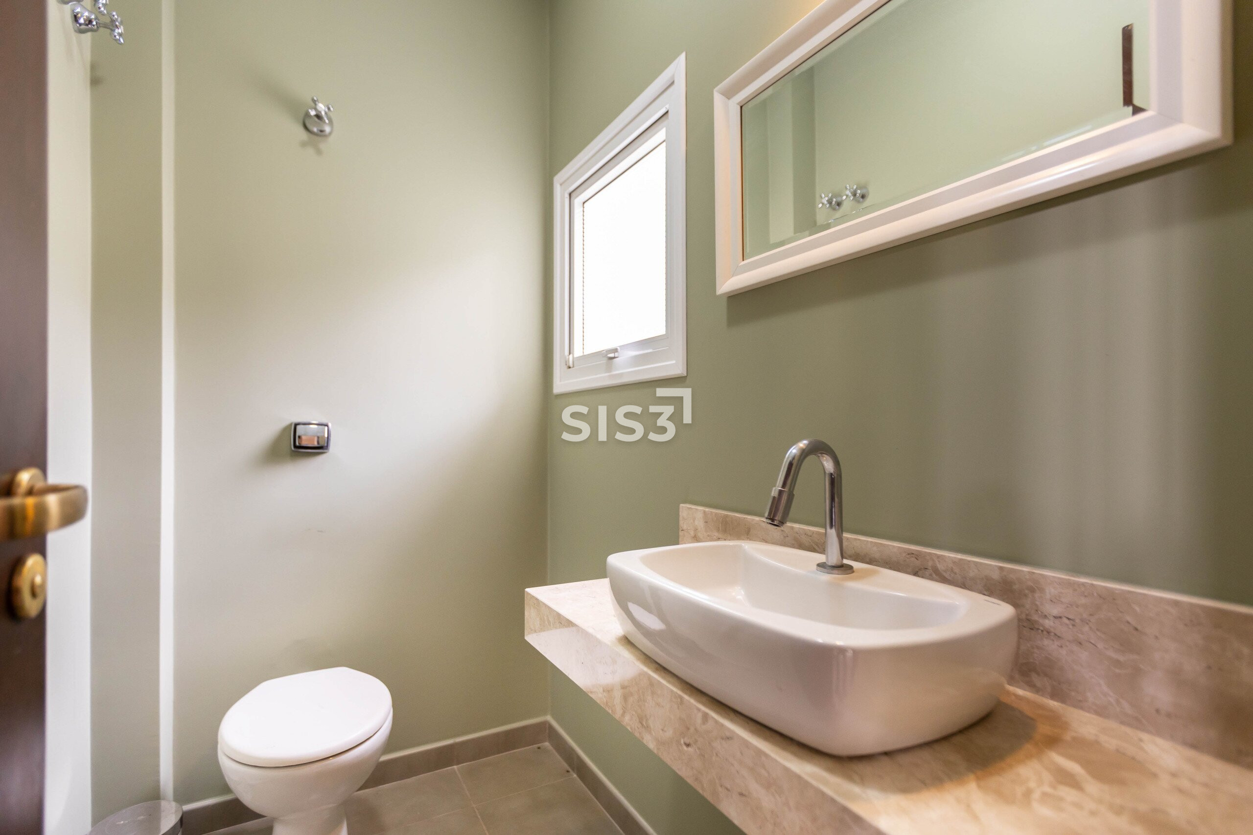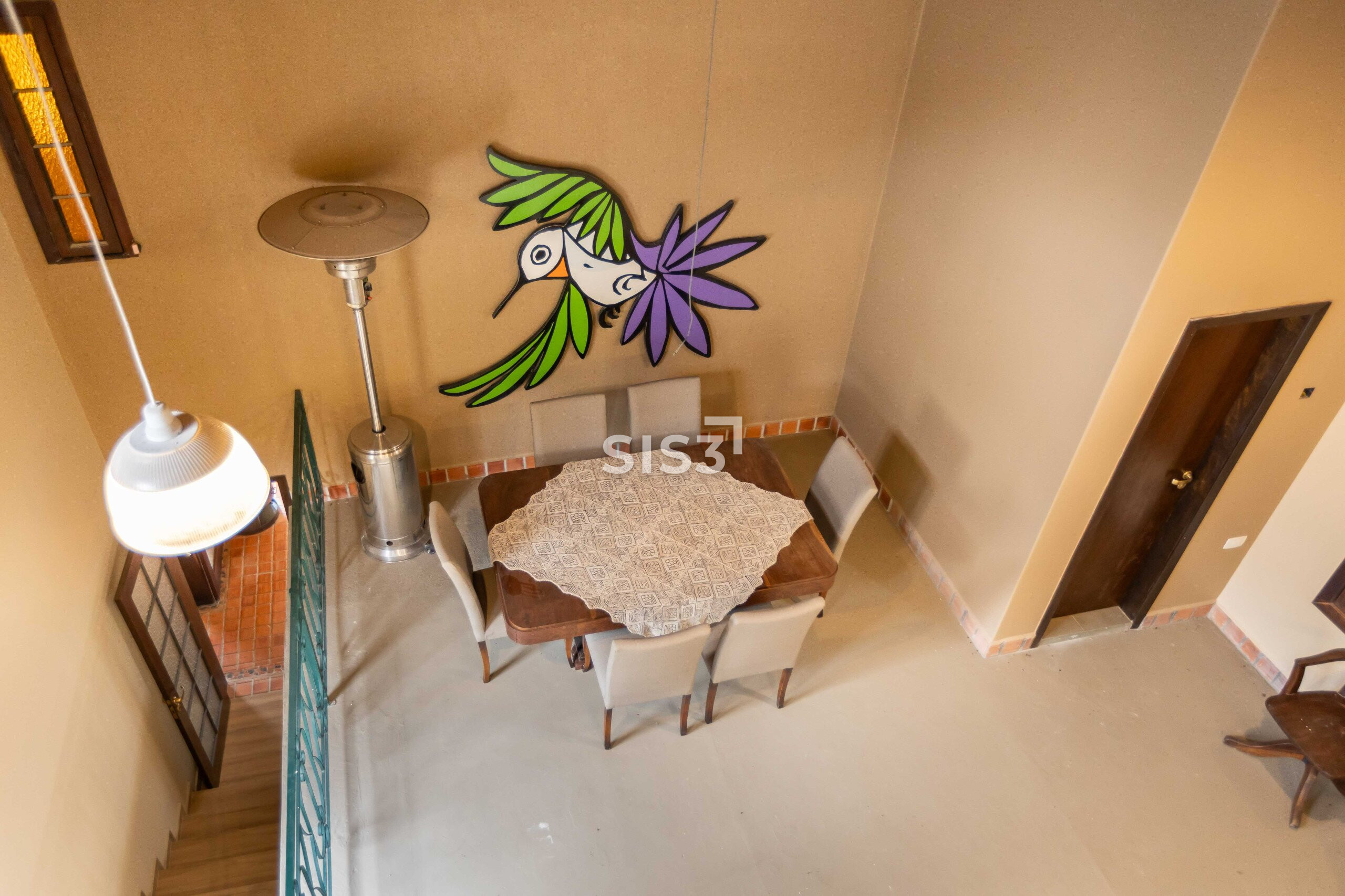 A construção possui cerca de 255 m², distribuídos em três níveis. São 3 quartos, sendo 1 suíte no último andar, com closet espaçoso e banheiro com hidromassagem. No pavimento térreo, cozinha e copa se conectam à varanda, criando um espaço ideal para reuniões em família. O mezanino abriga uma ampla sala de estar, além de dois dormitórios e um ambiente para trabalho.
