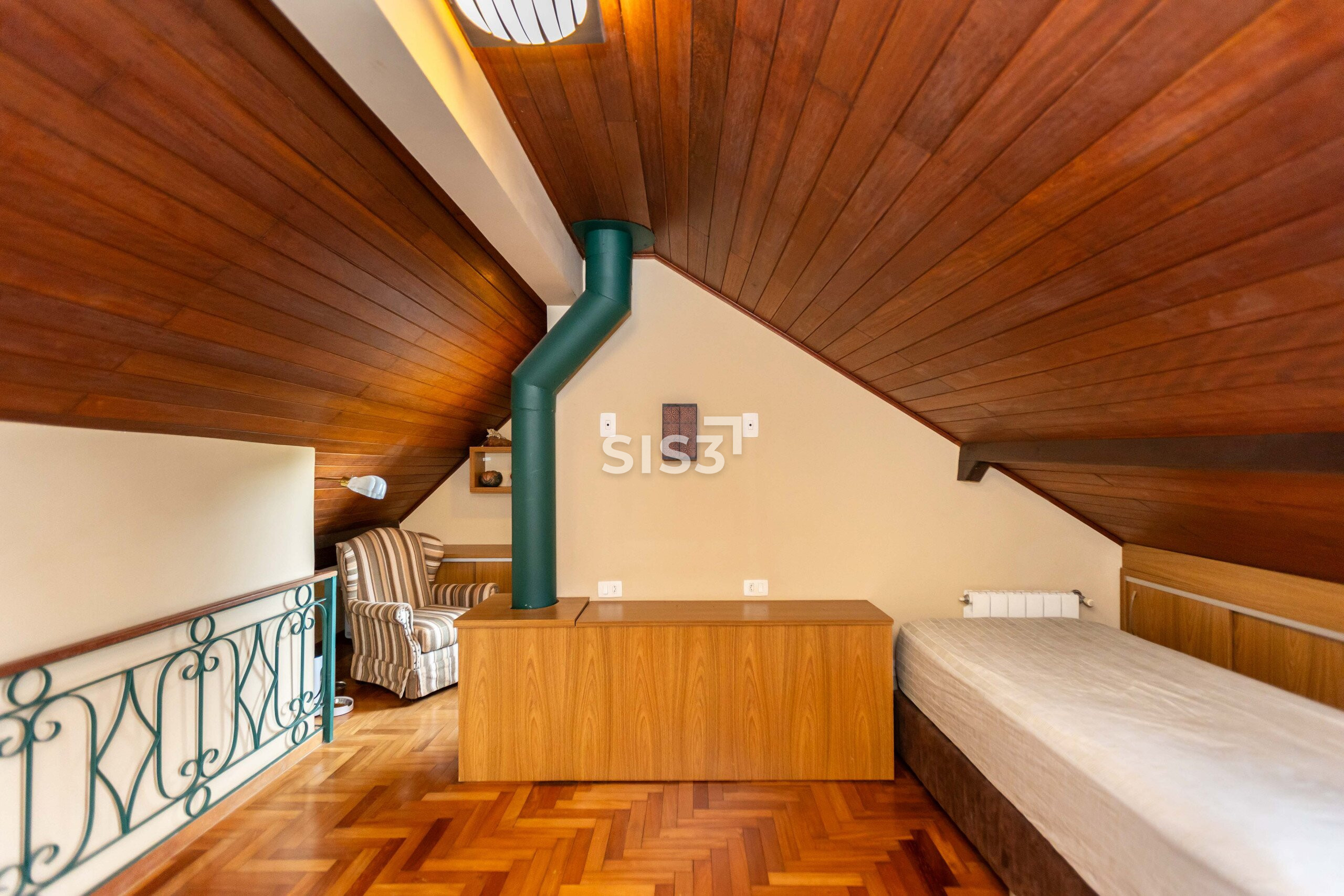 A casa possui esquadrias em PVC com vidro duplo, aquecimento solar e a gás, calefação por radiadores e revestimentos artesanais que unem rusticidade e estilo contemporâneo.